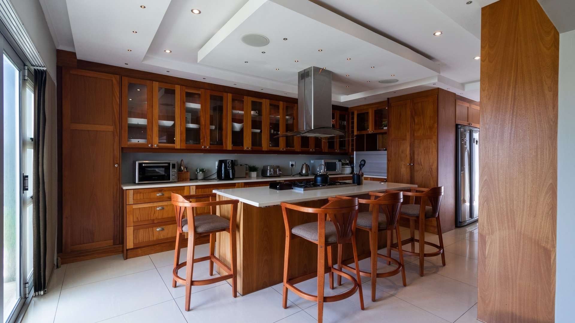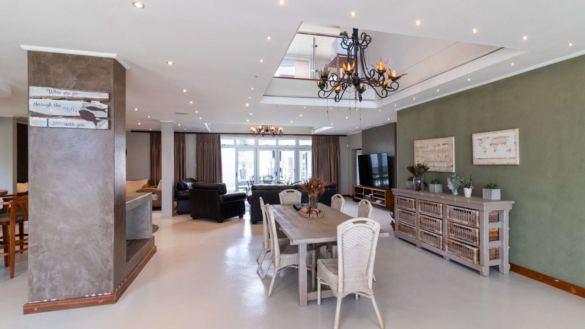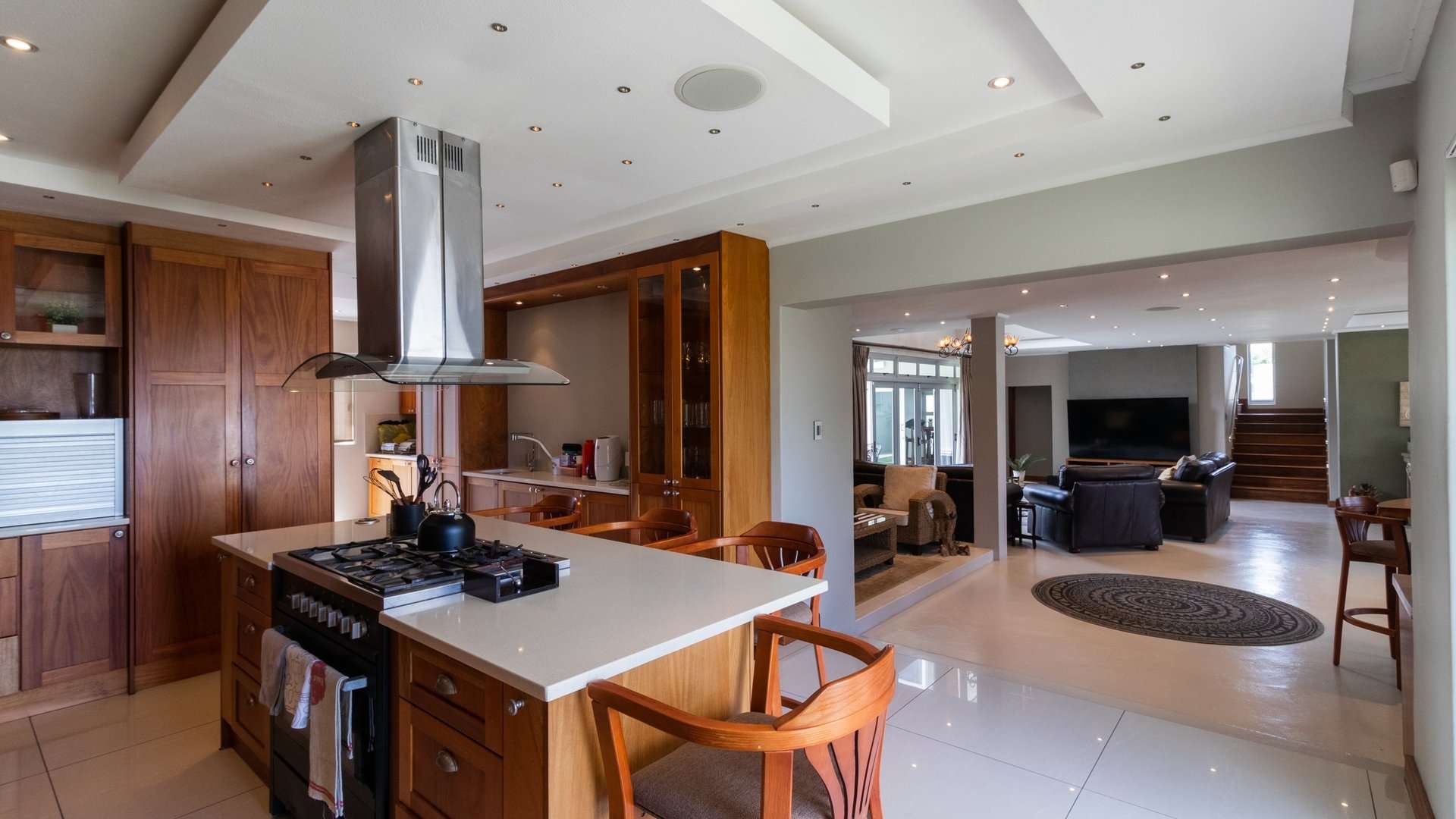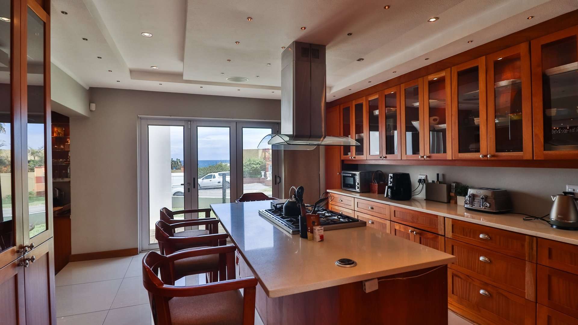 The house offers a sea view from most of the living areas and from four of the bedrooms in the house, this creates the impression that you are living literally on the beach. The private swimming pool area with build in braai and private bar area is ideal for enjoying some private entertaining times with family and friends.
