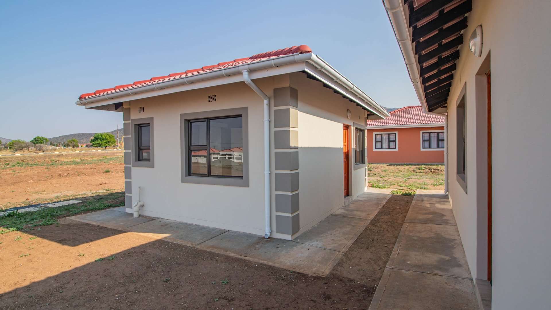 Discover this newly built modern home, perfectly situated in a secure, enclosed neighborhood. The main house features three sun-filled bedrooms with sleek tiled floors, a stylish bathroom, and an inviting open-plan living area. The kitchen offers elegant countertops, a tiled backsplash, and abundant natural light, with the opportunity to add your own cupboards or upgrades.