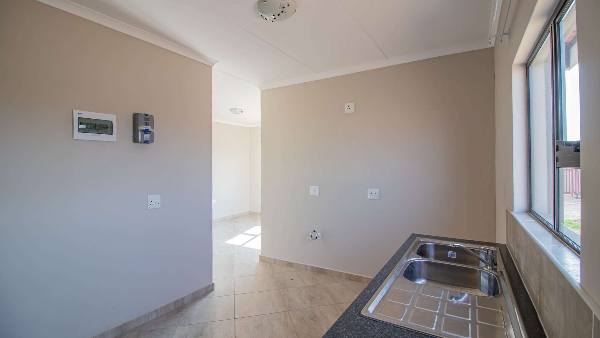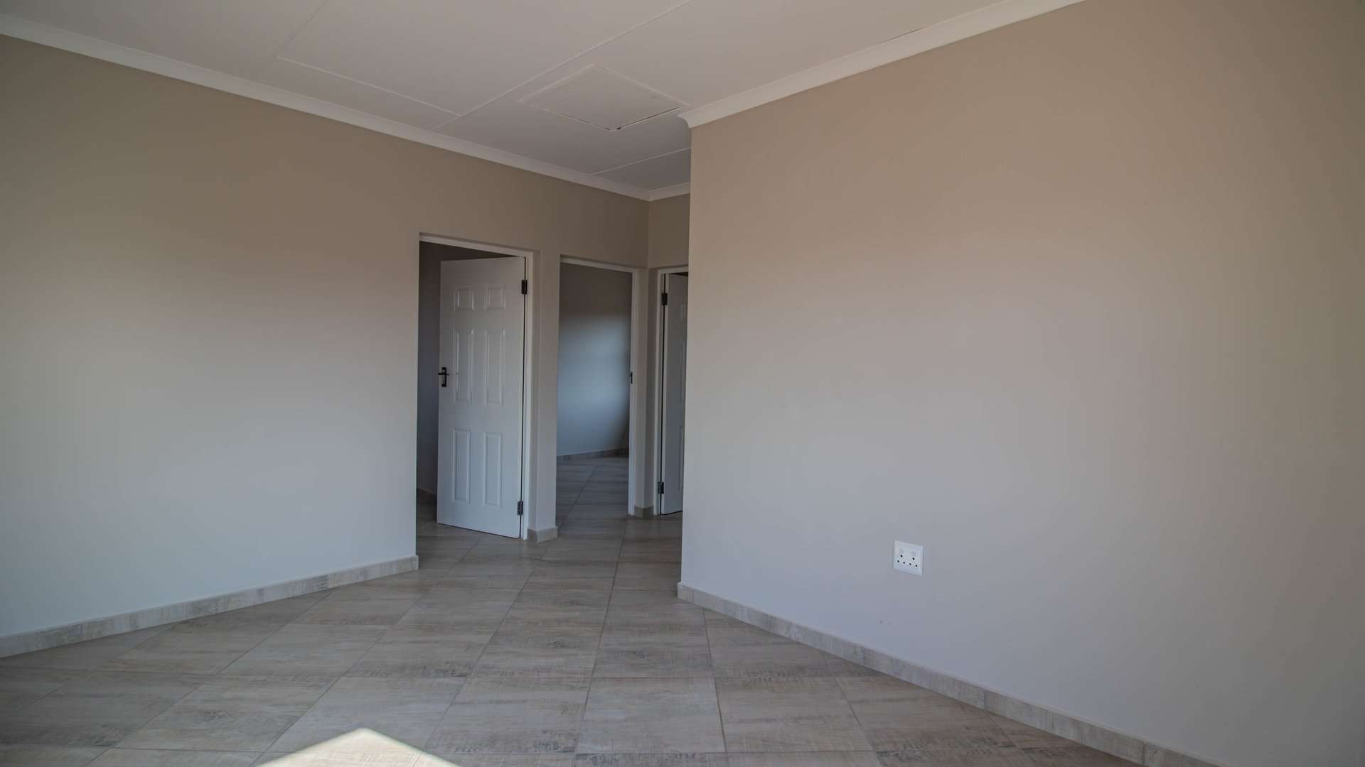 Discover this newly built modern home set in a secure and peaceful neighborhood. The property features three well-lit bedrooms with tiled floors, a contemporary bathroom, and an open-plan living area perfect for family living.