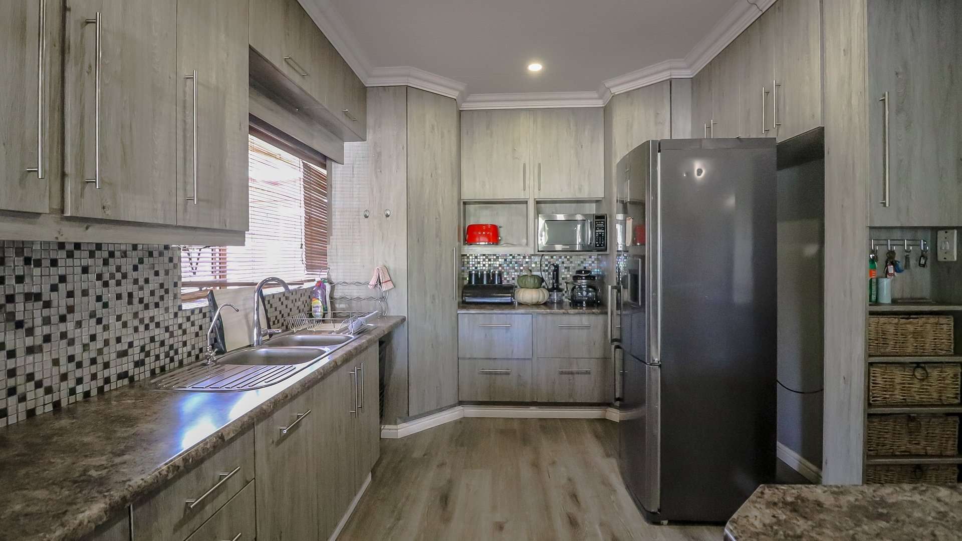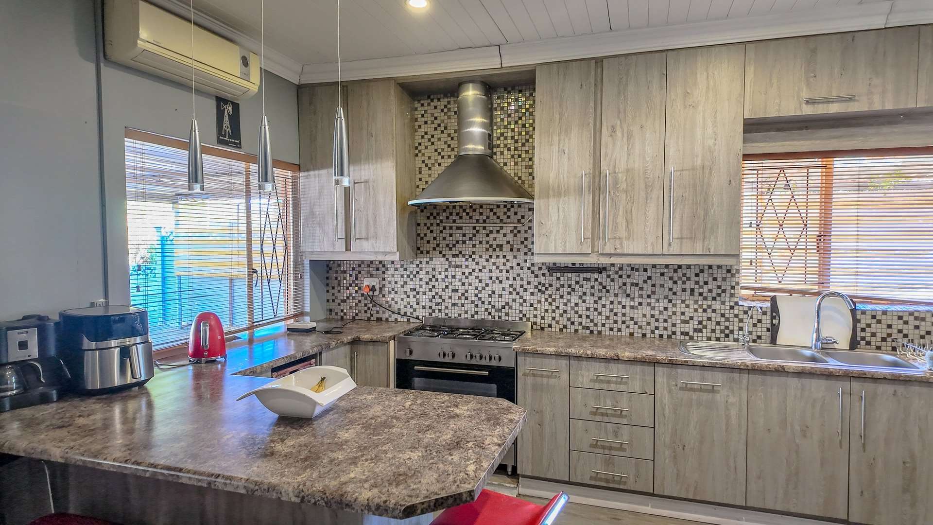 This attractive modern four-bedroom home in General De Wet is ideal for family living. The interior offers a spacious living area and a contemporary kitchen, creating a warm and welcoming atmosphere.