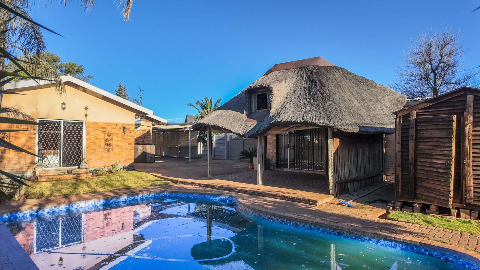 Outside, the home features a neatly maintained front yard and a generous back yard complete with a swimming pool, wendy house, and lapa, making it perfect for relaxation and entertaining.