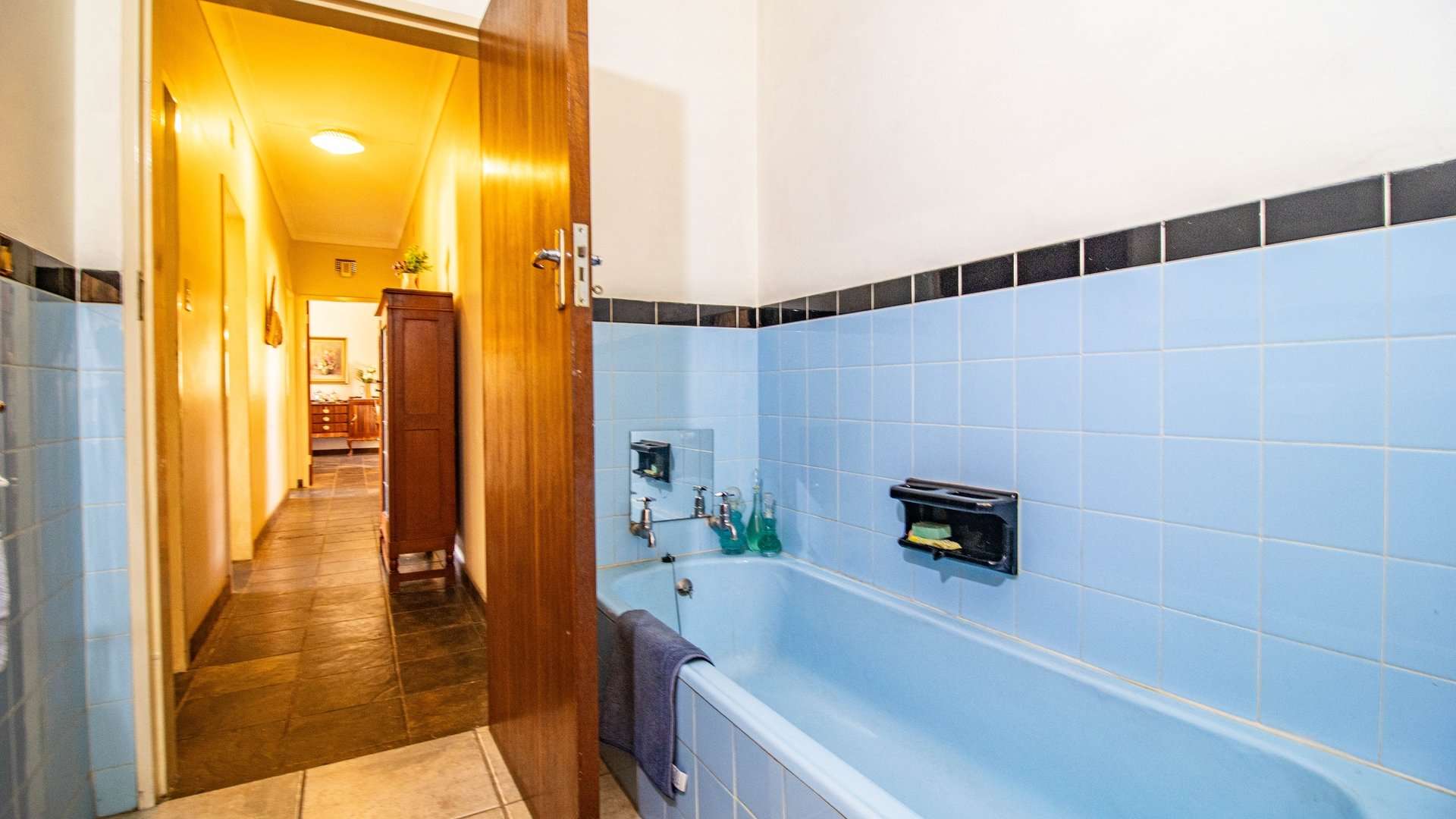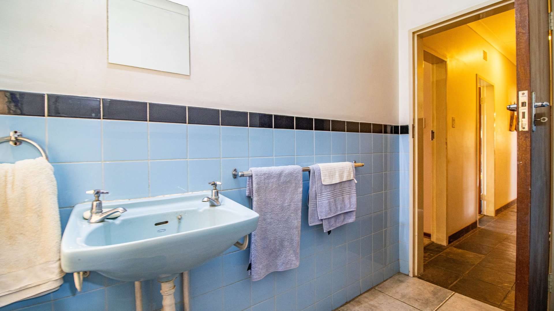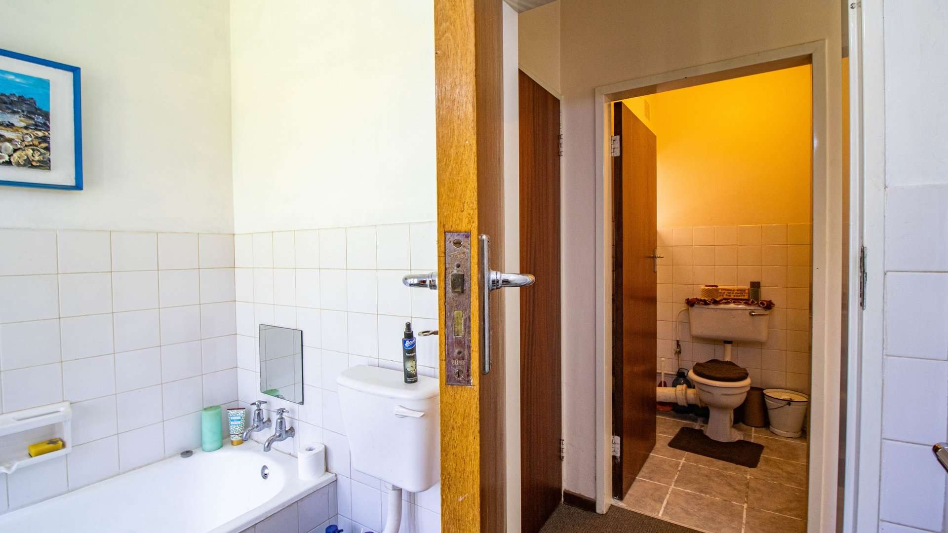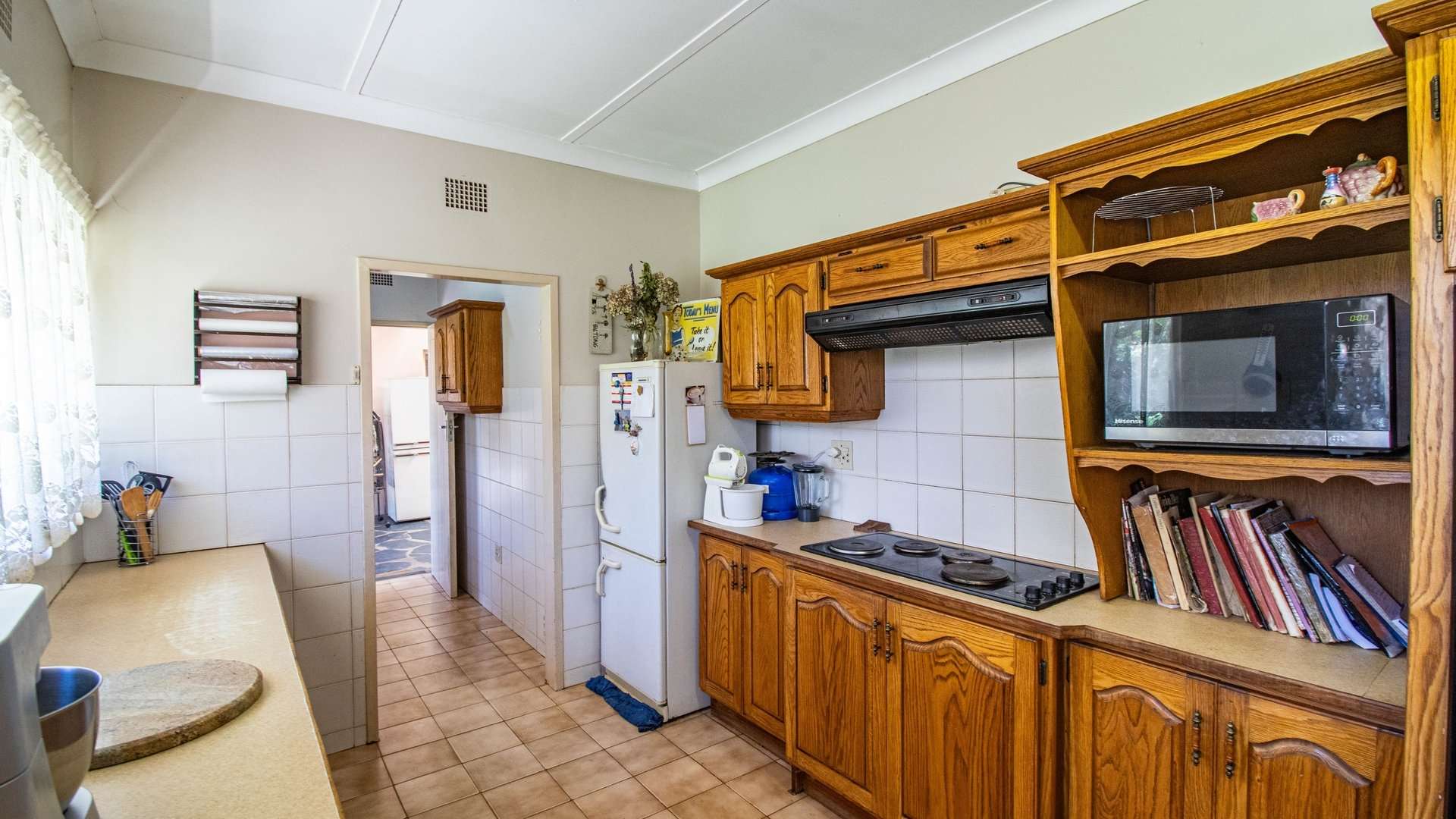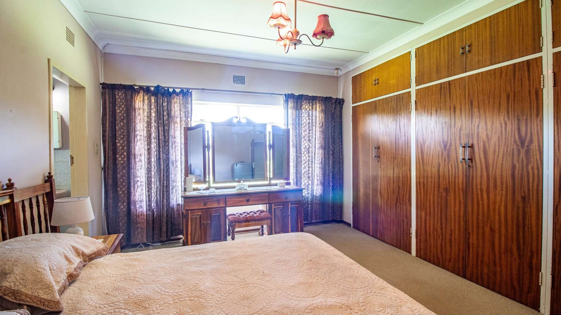The dining room, two lounge areas, TV room, entrance hall, kitchen, and passage are finished with durable Lydite tiles, while the bedrooms are comfortably carpeted.