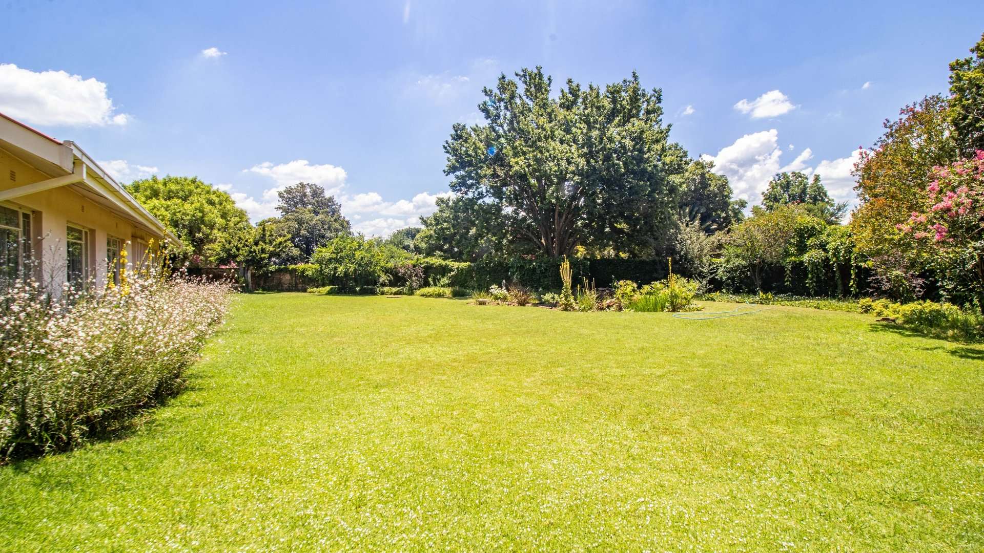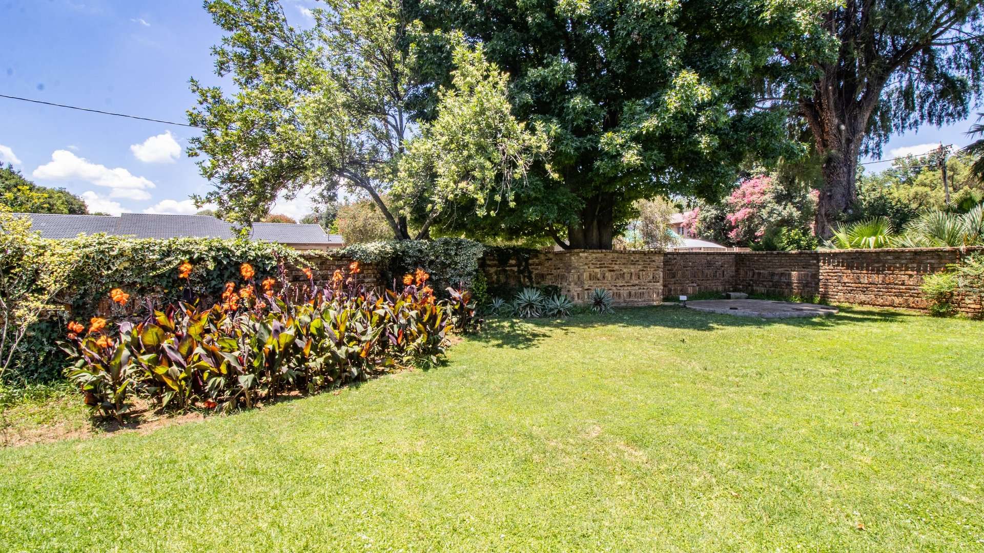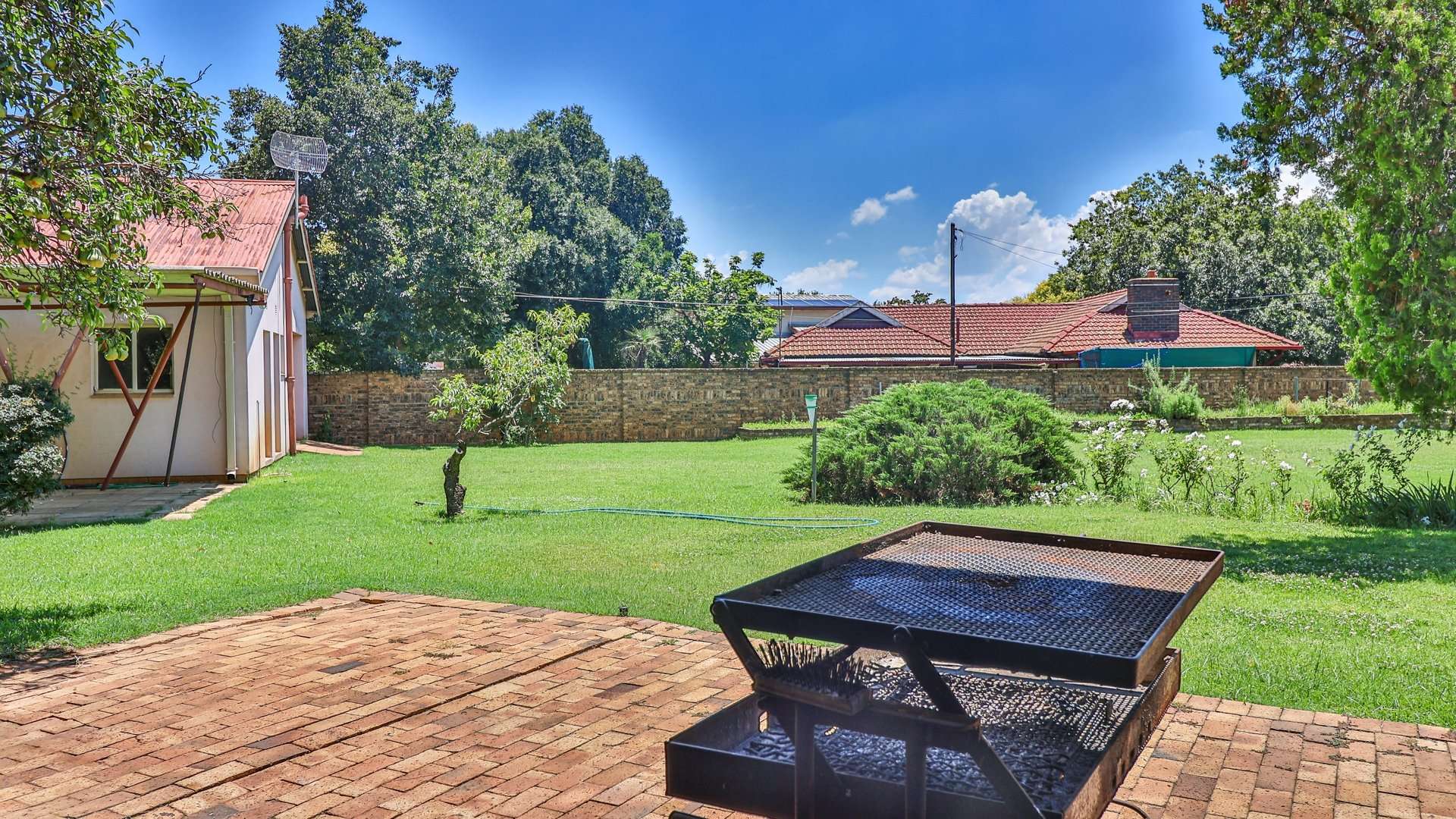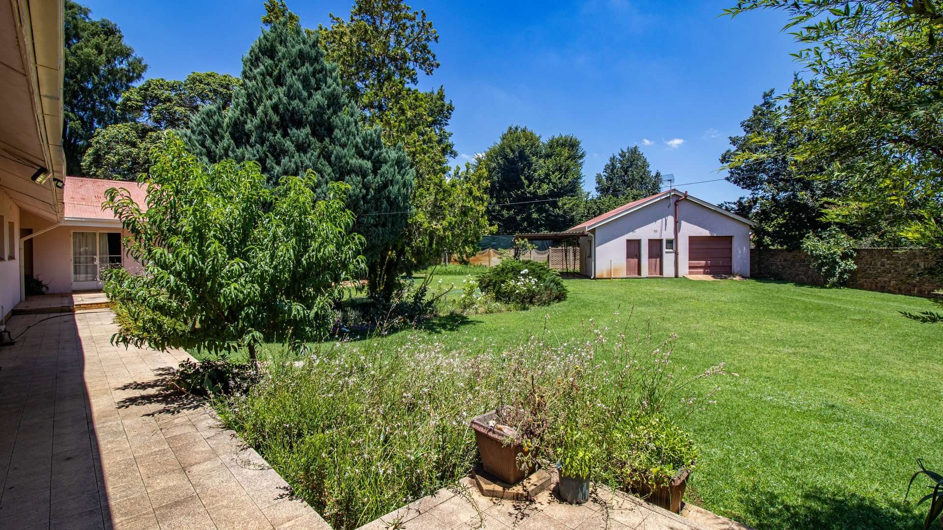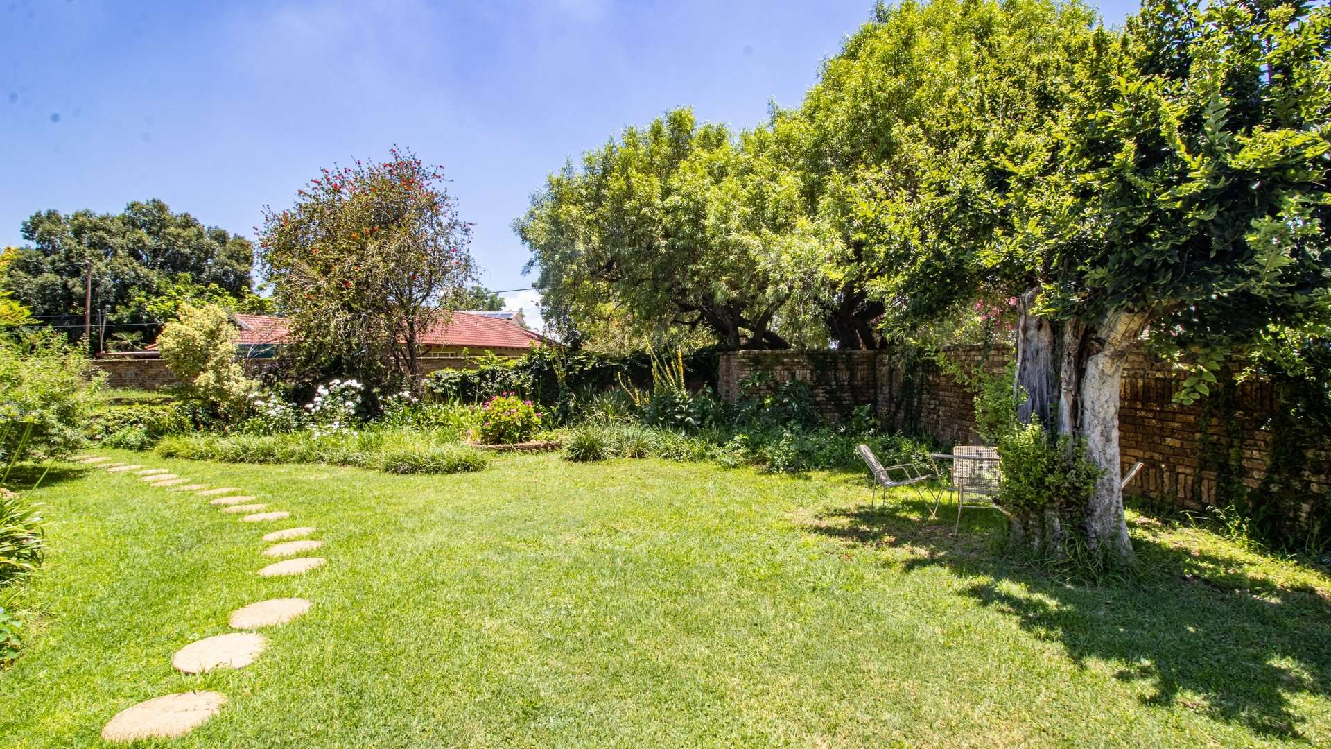 A previously existing swimming pool was filled in two years ago for ease of maintenance, leaving behind a spacious and manageable garden.
