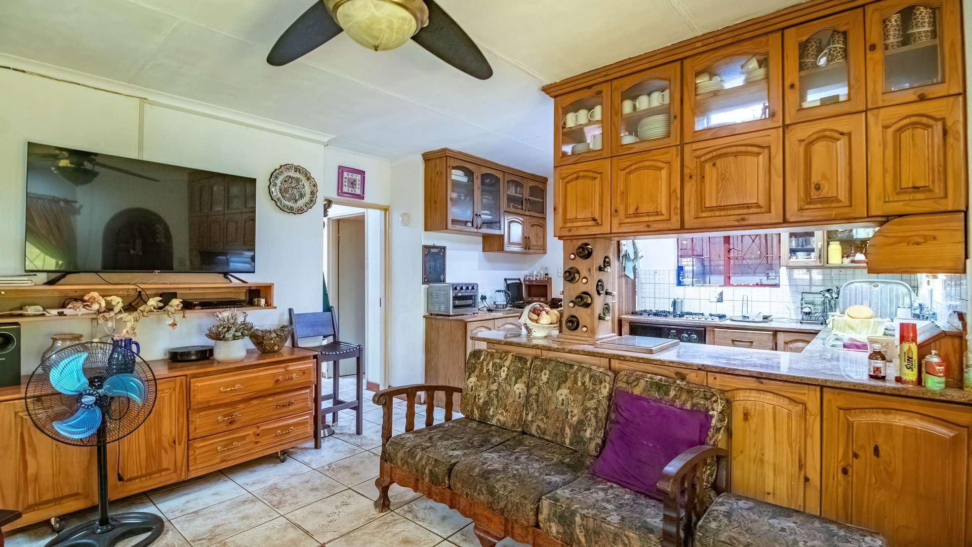 The home boasts a well-designed kitchen with built-in cupboards, a spacious lounge, and a dining area ideal for entertaining or family gatherings.