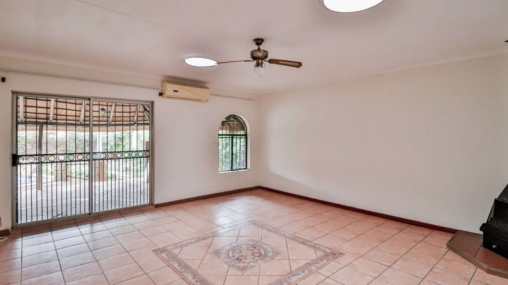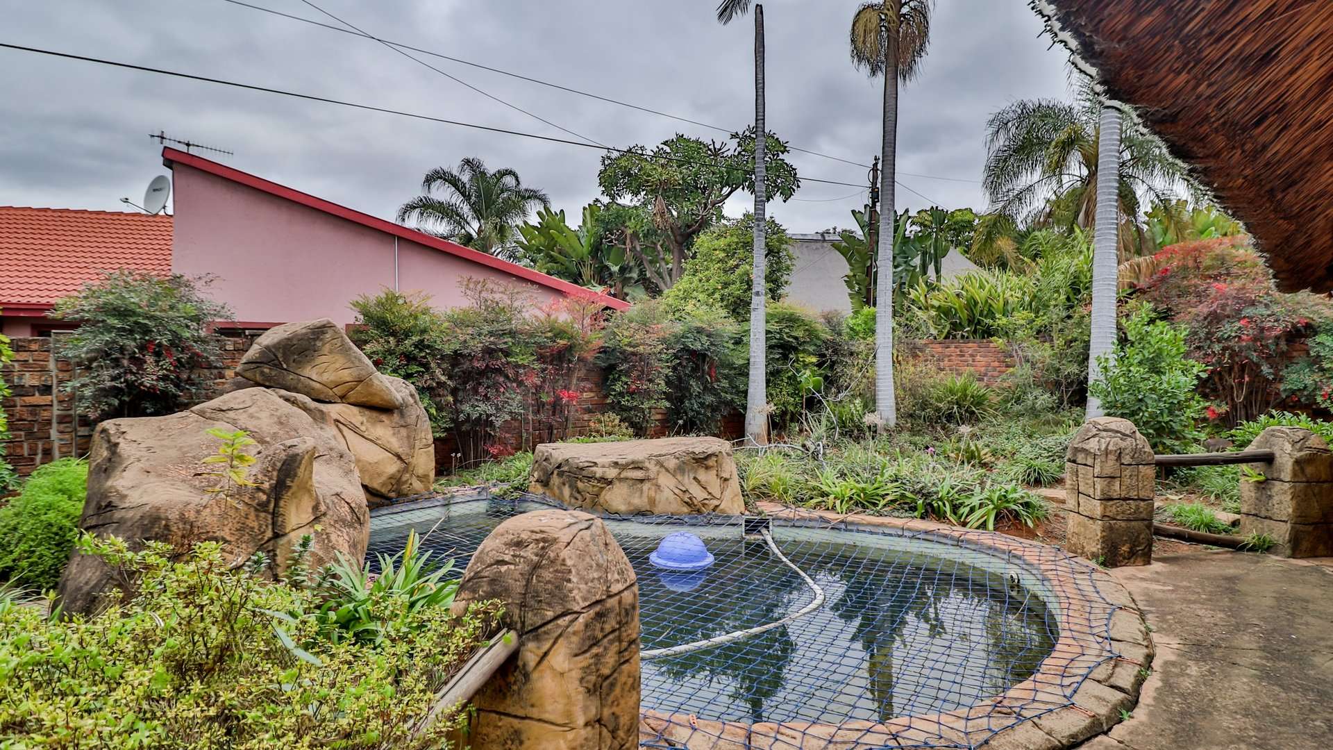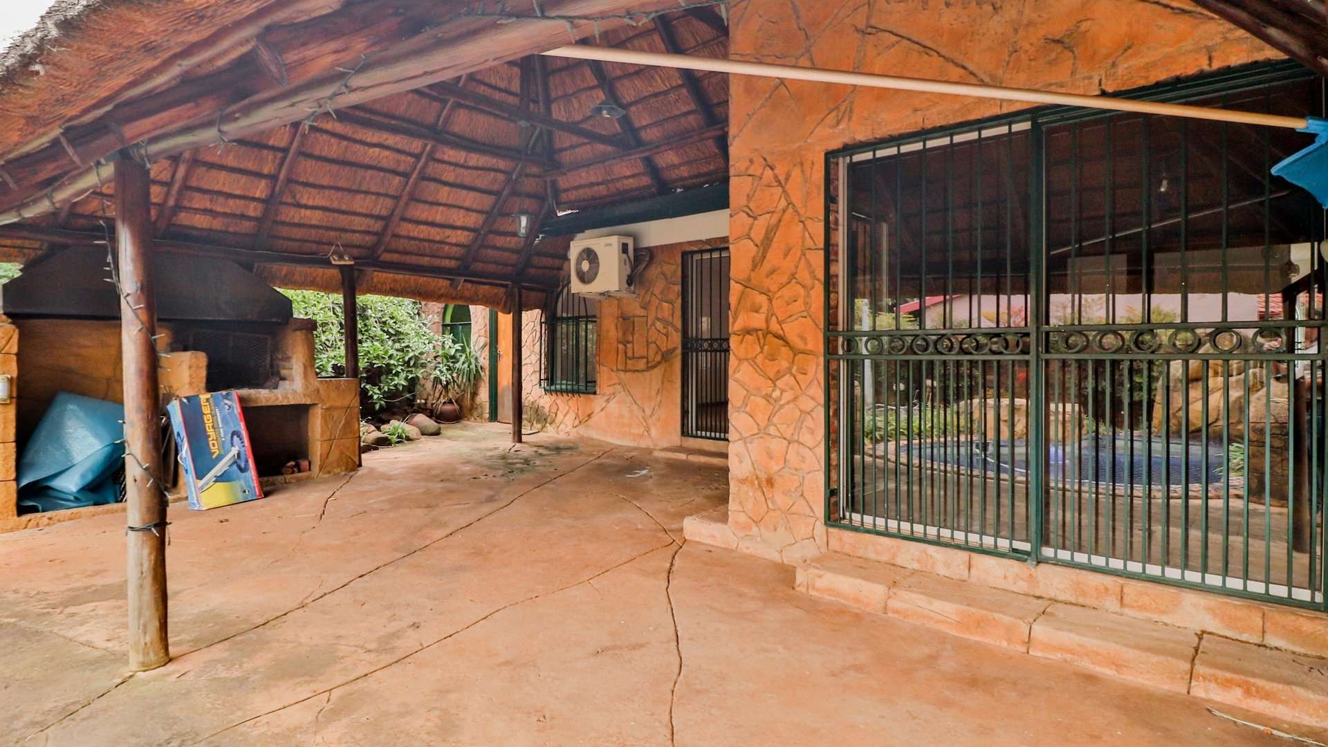 - Outdoor amenities include a pool, lapa with built-in braai, lounge area, and storage room