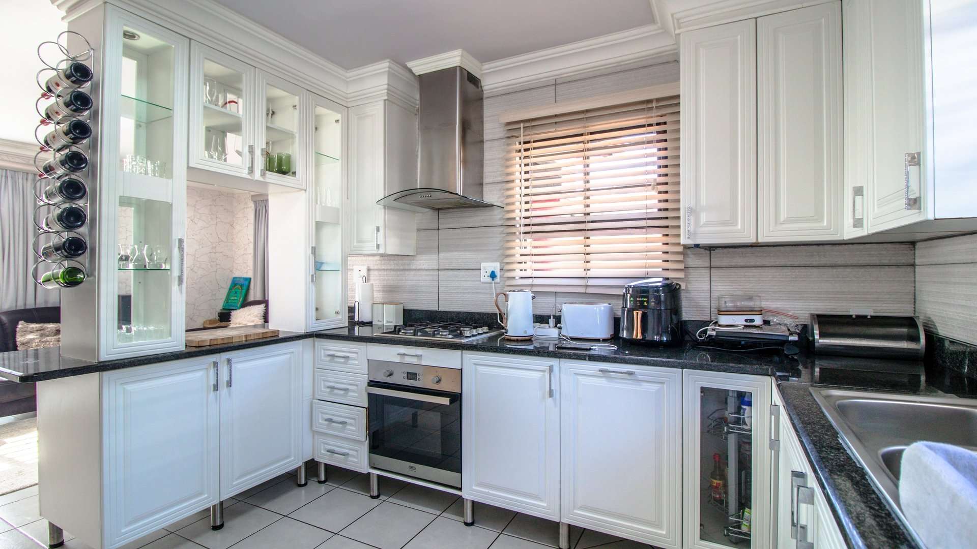 The spacious kitchen includes modern appliances, ample counter space, and a cozy dining area—perfect for family meals or hosting guests.
