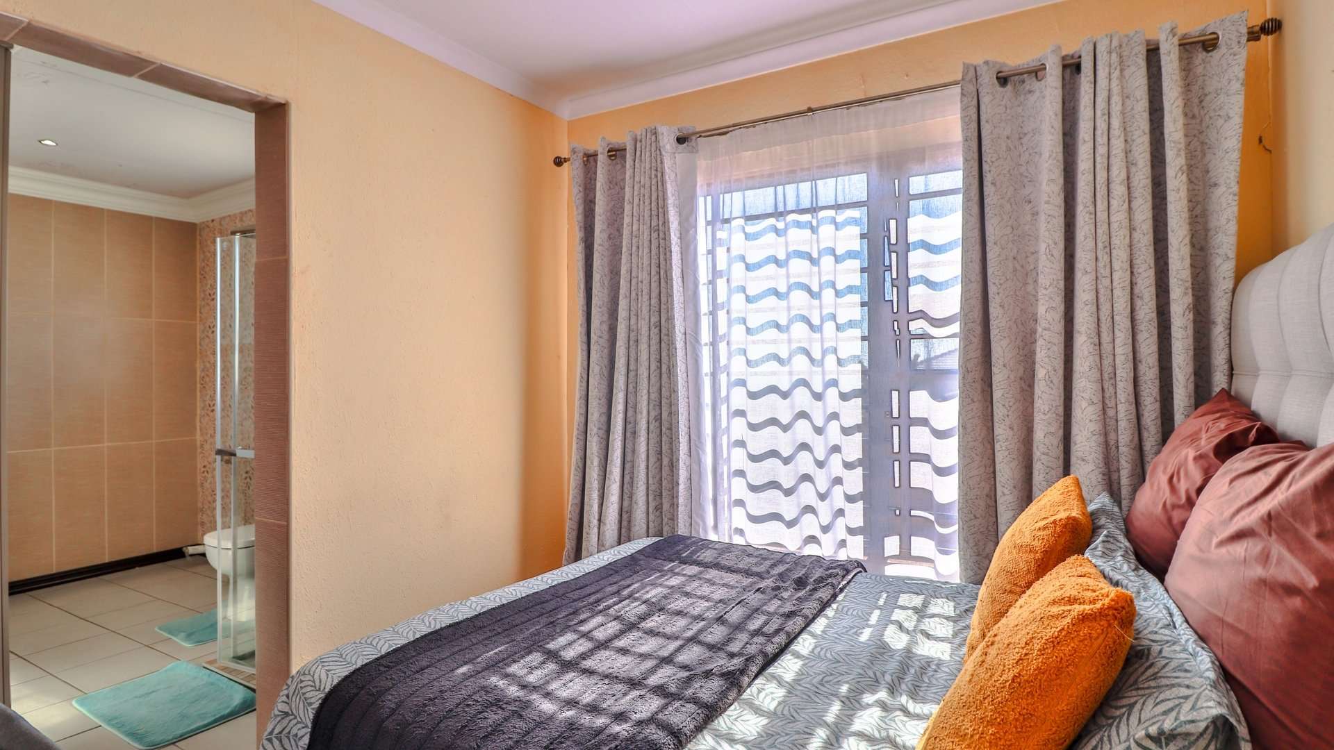 The master bedroom includes a private en-suite bathroom and overlooks the scenic outdoors, offering a true retreat experience.