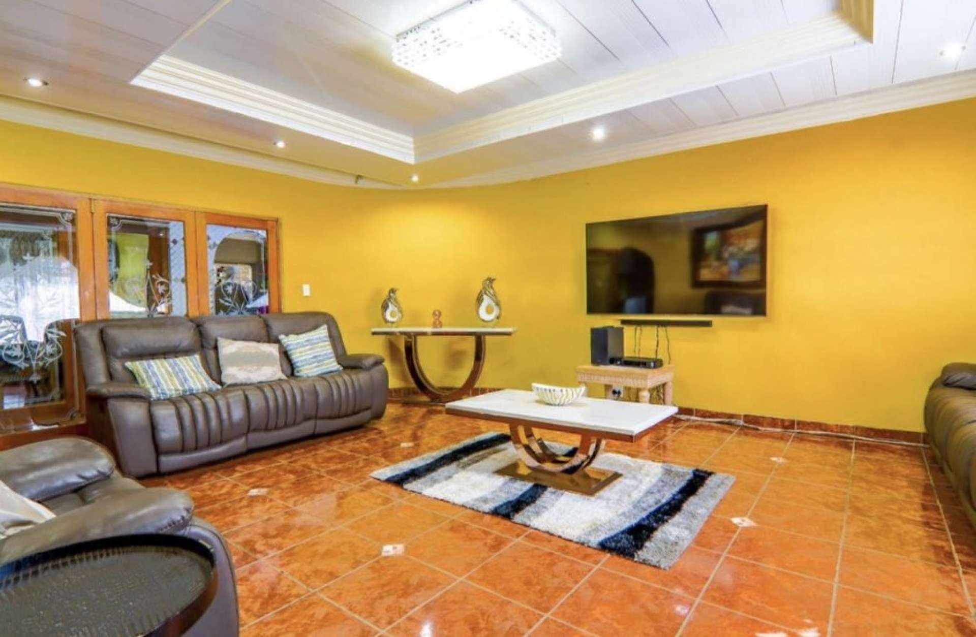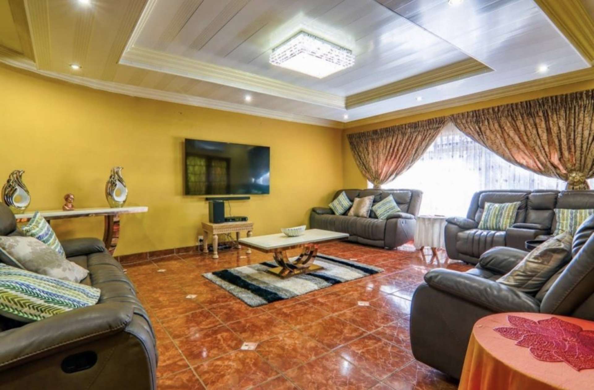The house boasts 3 spacious living areas, 5 well-sized bedrooms (all with built-in cupboards), and 3 bathrooms, including a luxurious main en-suite.