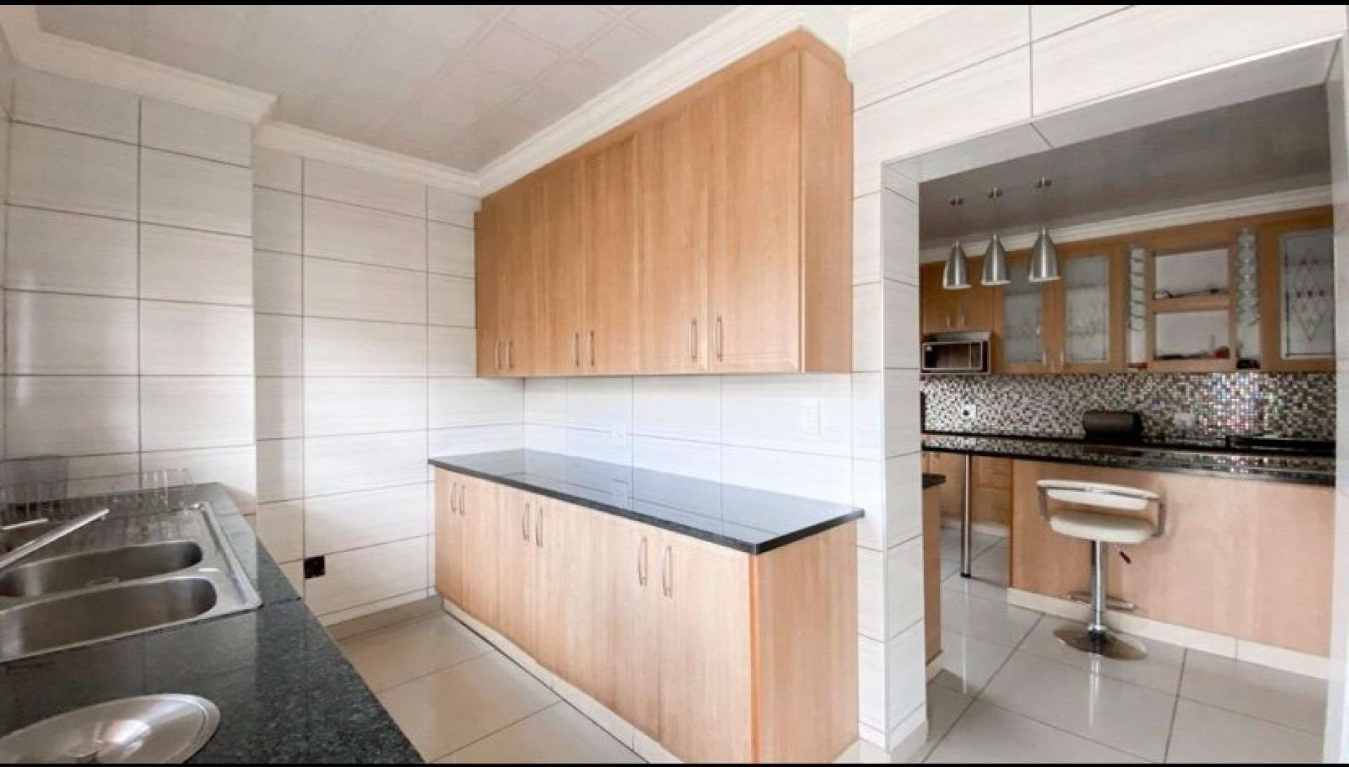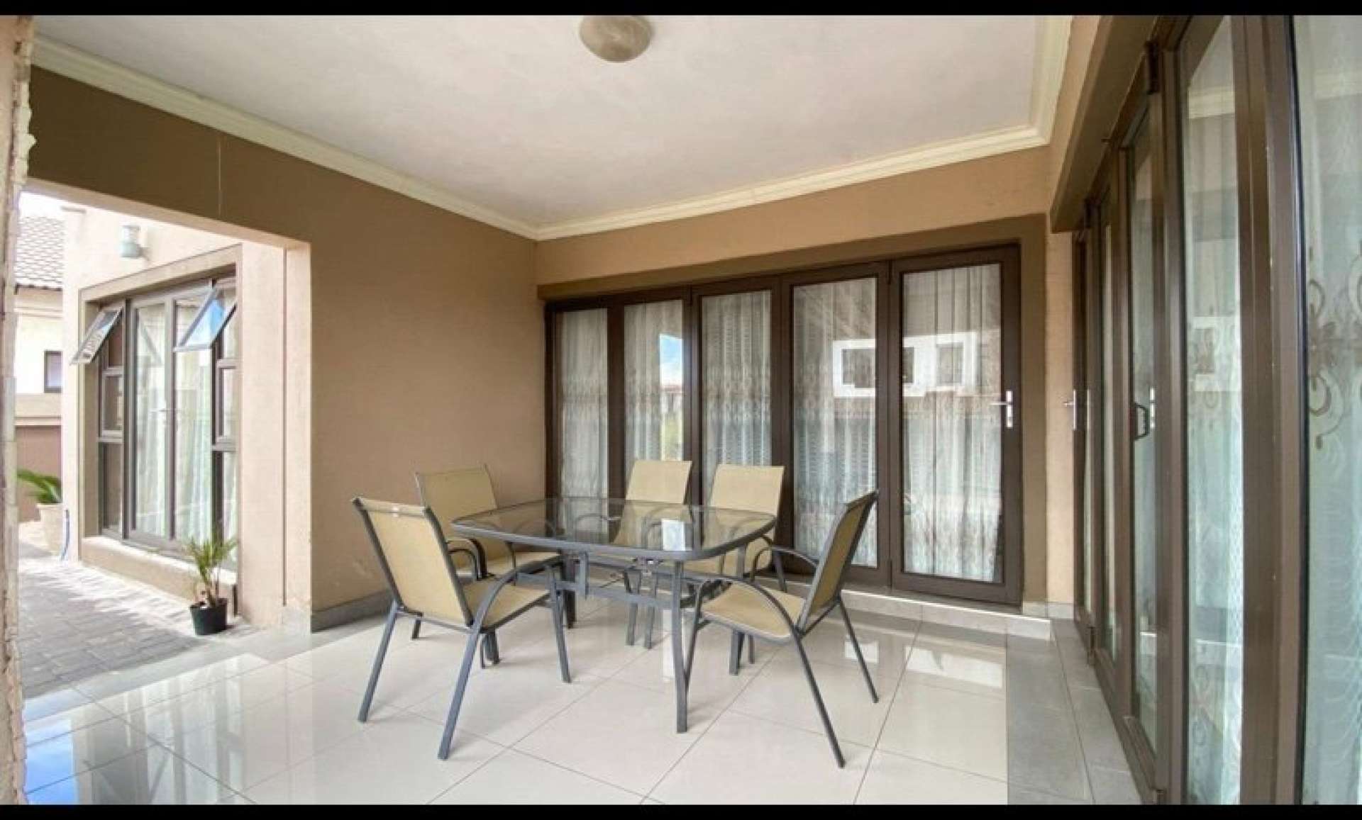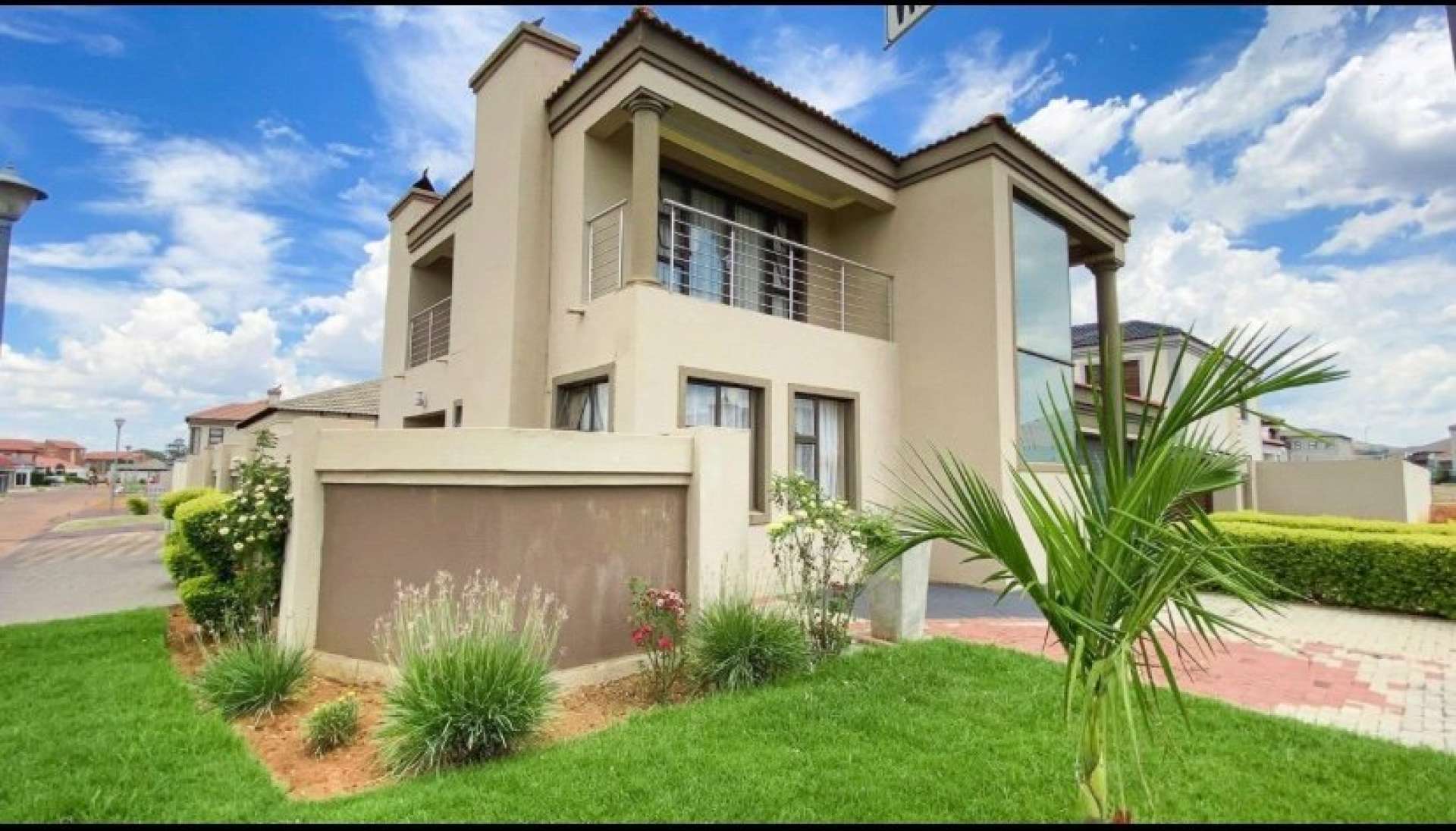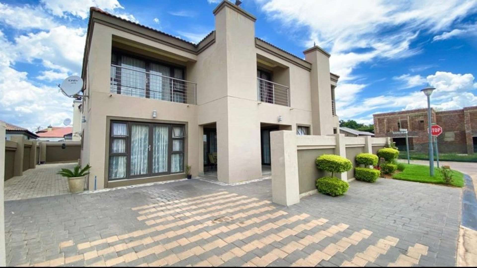 High class finishes throughout with lovely tiles and granite counter tops in the kitchen with gas stove, Patio/braai area, bedrooms has a patios, air conditioner, pyjama lounge and double garages. It has a secluded position in an estate where there is NO throughway traffic or excessive noise.