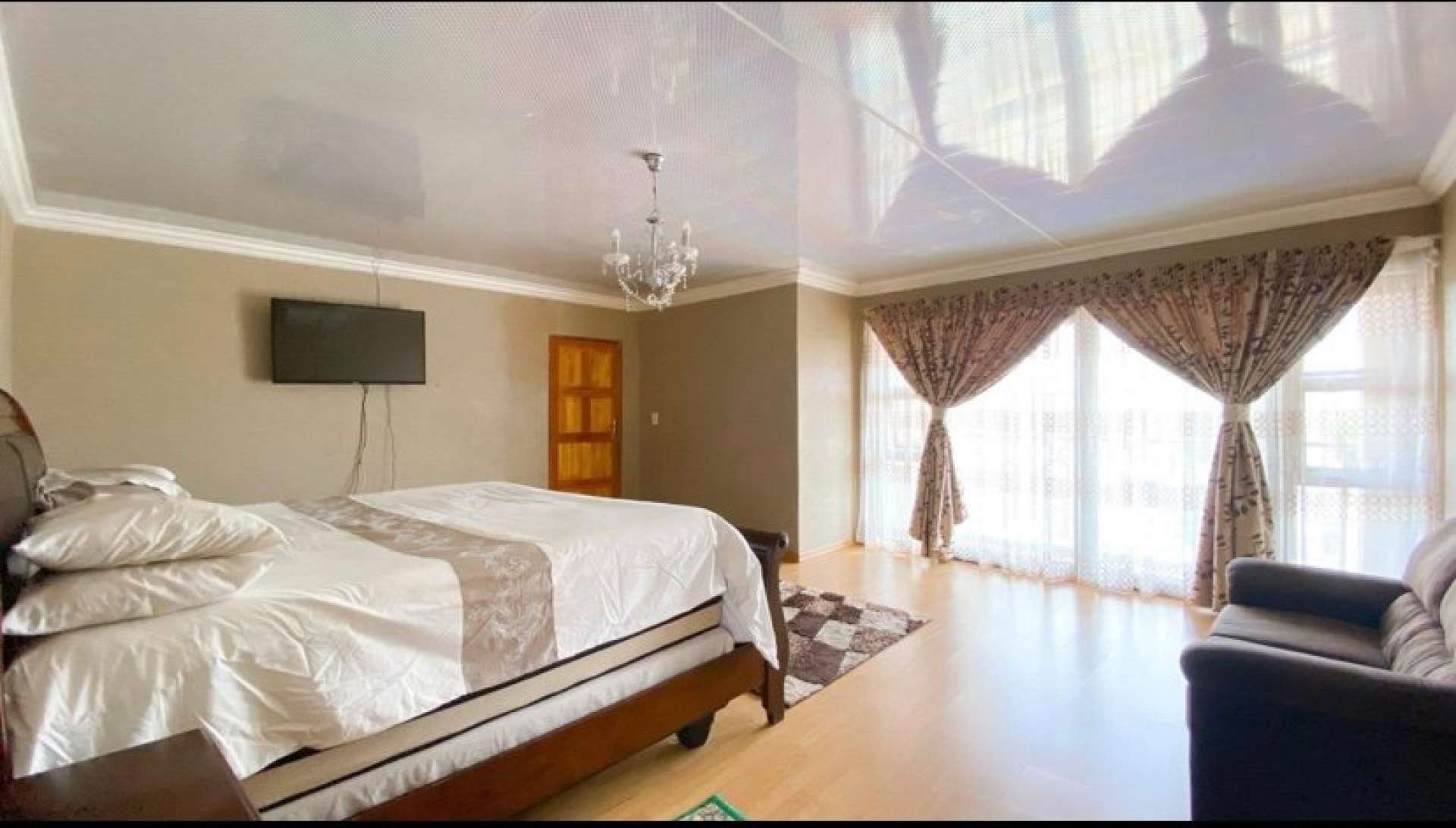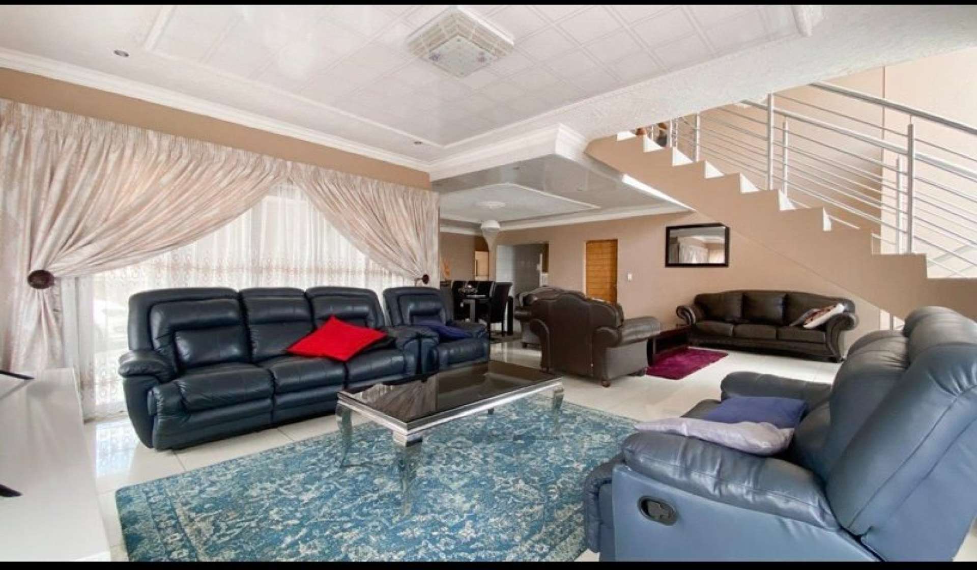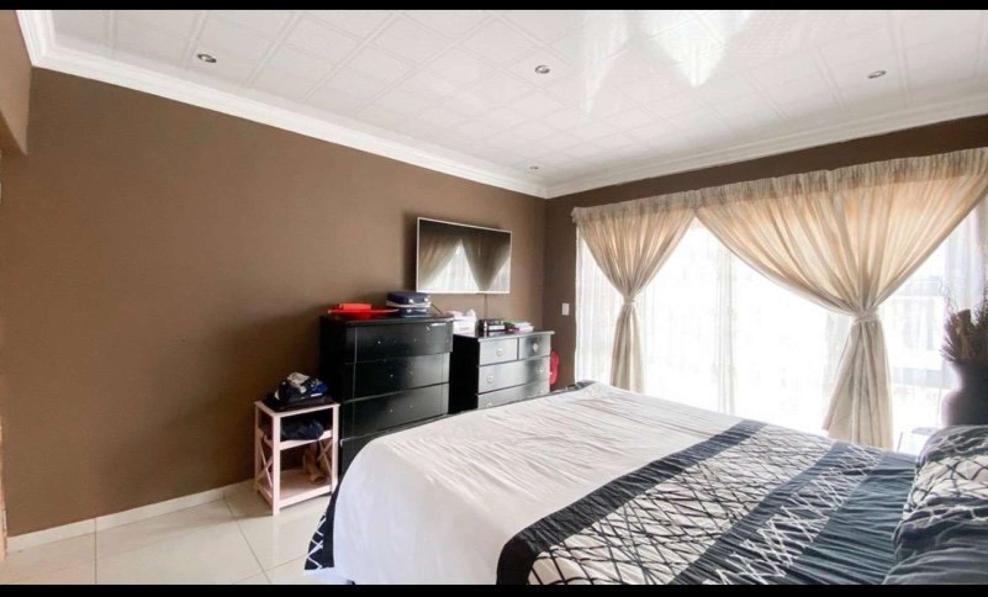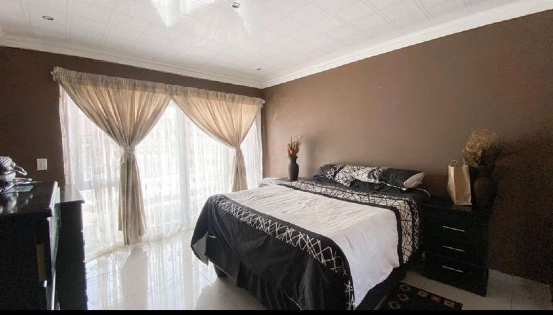 High class finishes throughout with lovely tiles and granite counter tops in the kitchen with gas stove, Patio/braai area, bedrooms has a patios, air conditioner, pyjama lounge and double garages. It has a secluded position in an estate where there is NO throughway traffic or excessive noise.