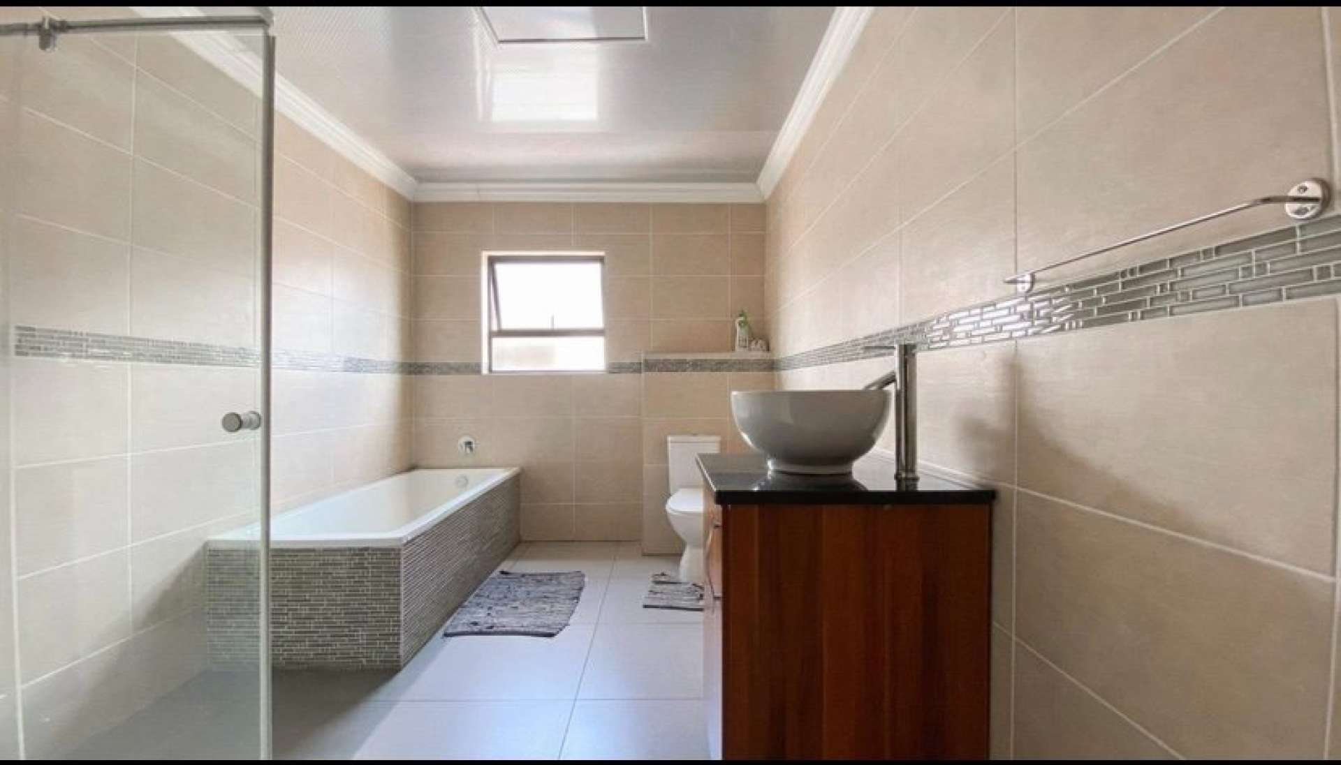 This house is fitted with beautiful finishes. It offers a lovely open plan living area, modern kitchen, 4 spacious bedrooms (with built-in cupboards), 3.5 bathrooms, main bedroom and guest bedroom has an en-suite.