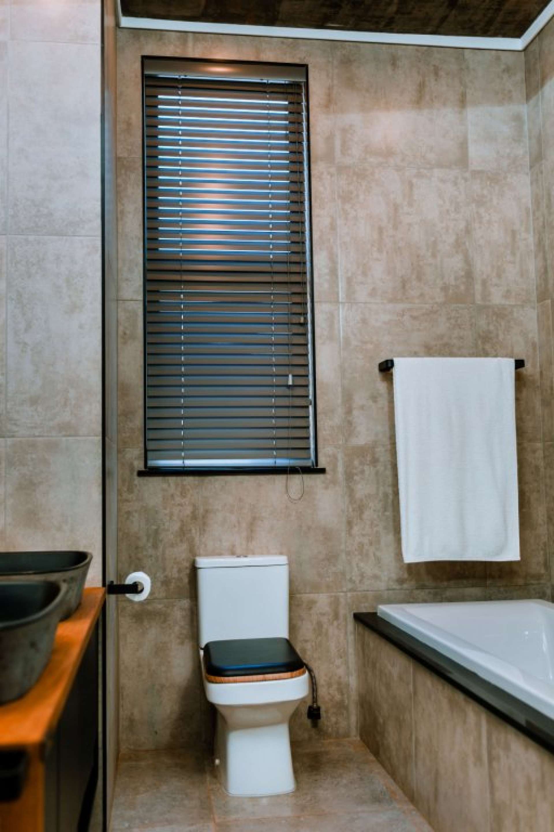 • The design of all taps, sanitary ware, accessories and basins are finished in neutral matt black