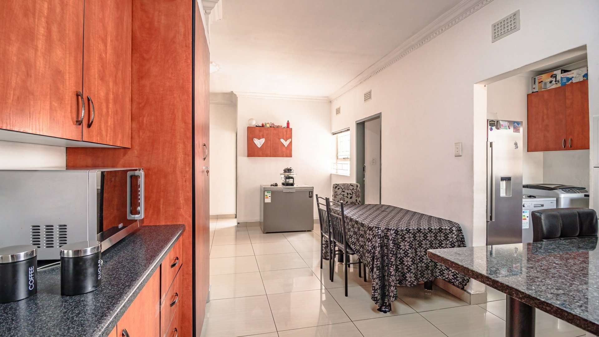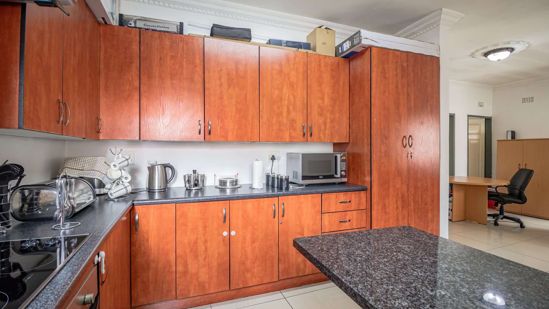 This home offers three well-sized bedrooms, two modern bathrooms, a stylish kitchen with granite countertops, and a separate scullery.