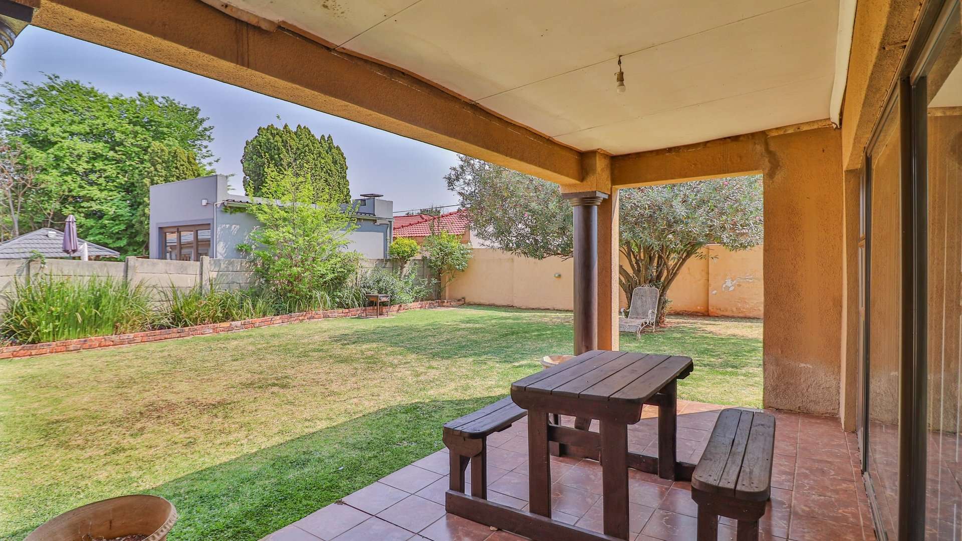 Patio and well-sized garden, ideal for outdoor entertaining or family relaxation