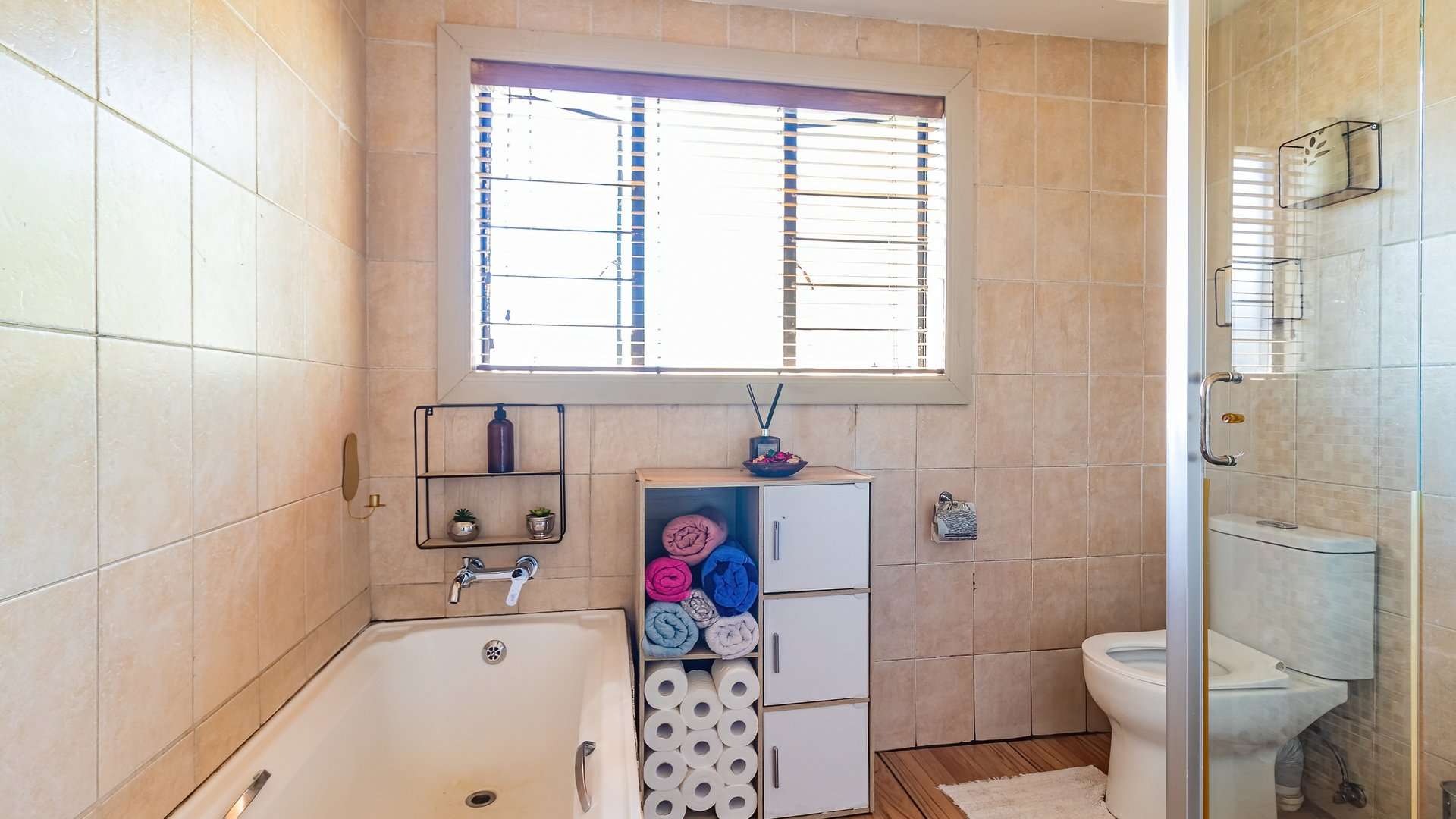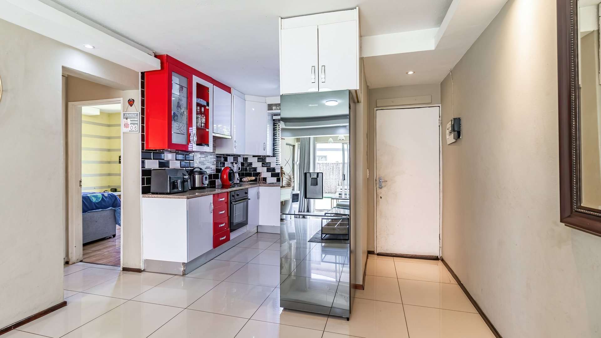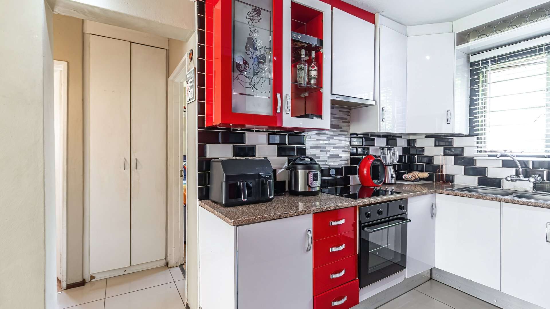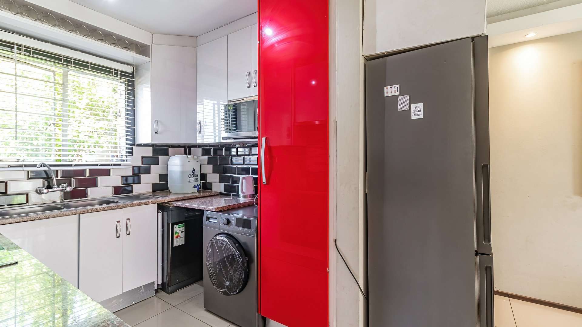 - A lockable tinted aluminium sliding door, adding privacy, security, and style