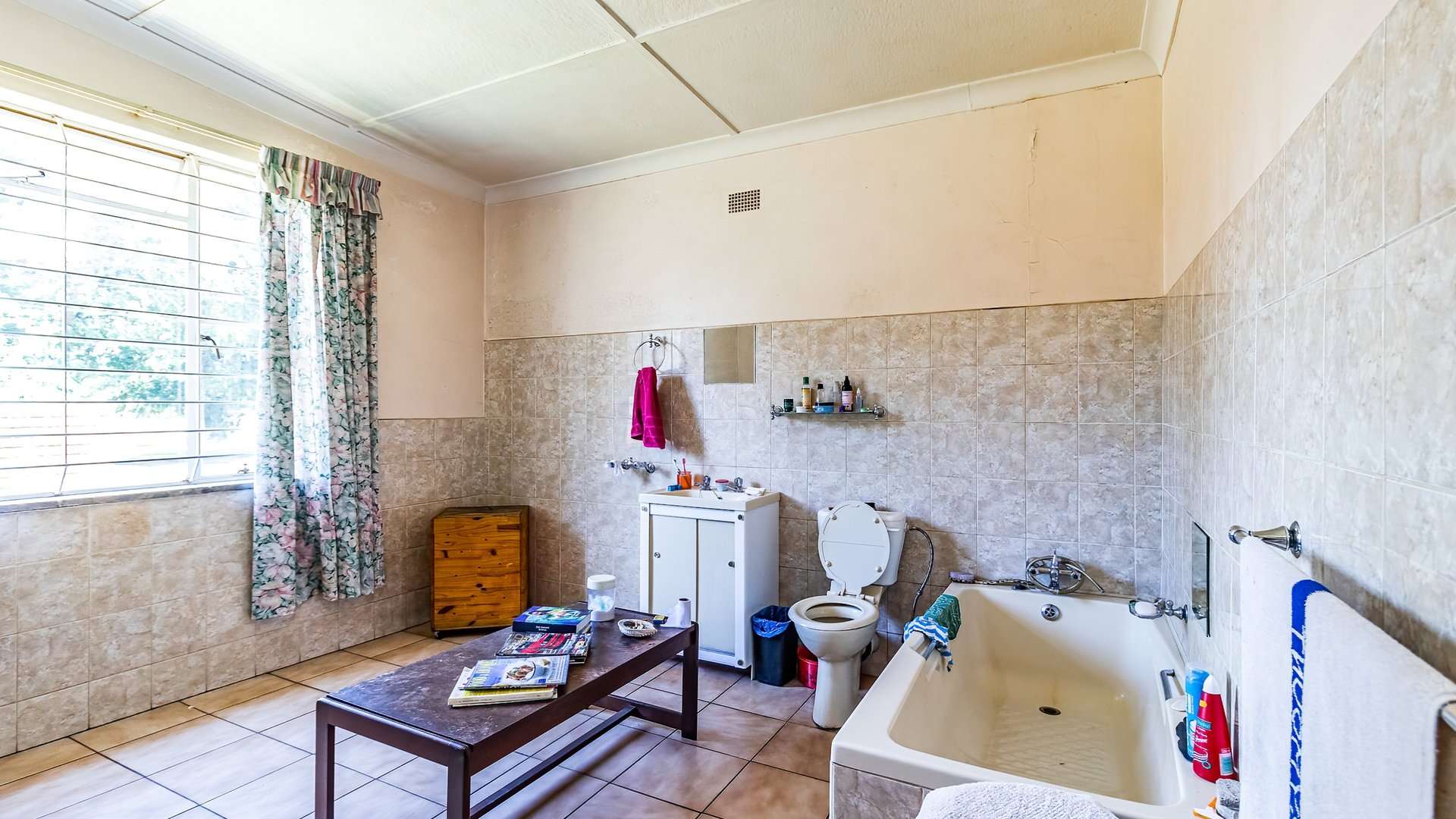 1 large, tiled bathroom (with potential for a second bathroom to be completed)