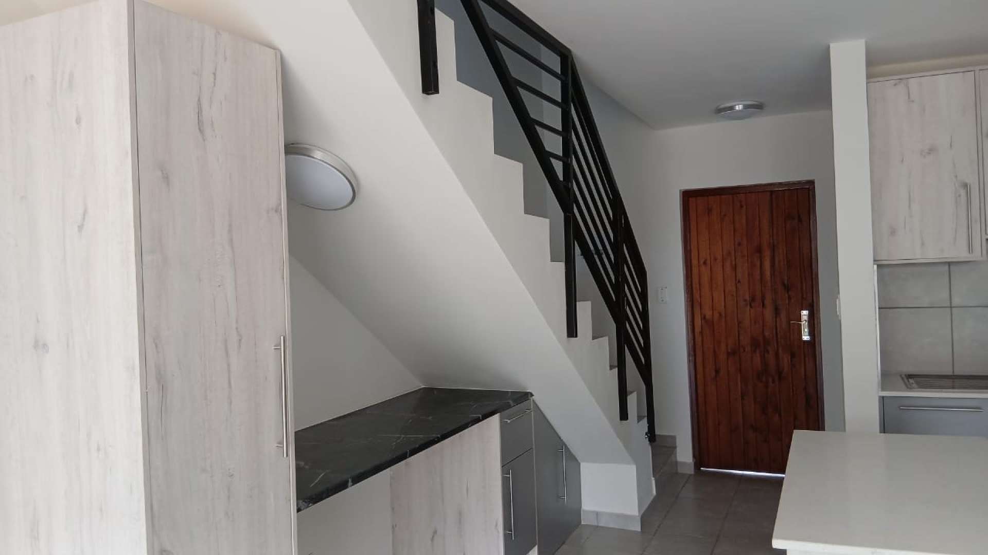 Upstairs, you'll find two spacious bedrooms, including a main bedroom with an en-suite bathroom. Both bedrooms come with generous built-in cupboards, and the home is finished with elegant, low-maintenance tiled flooring throughout.