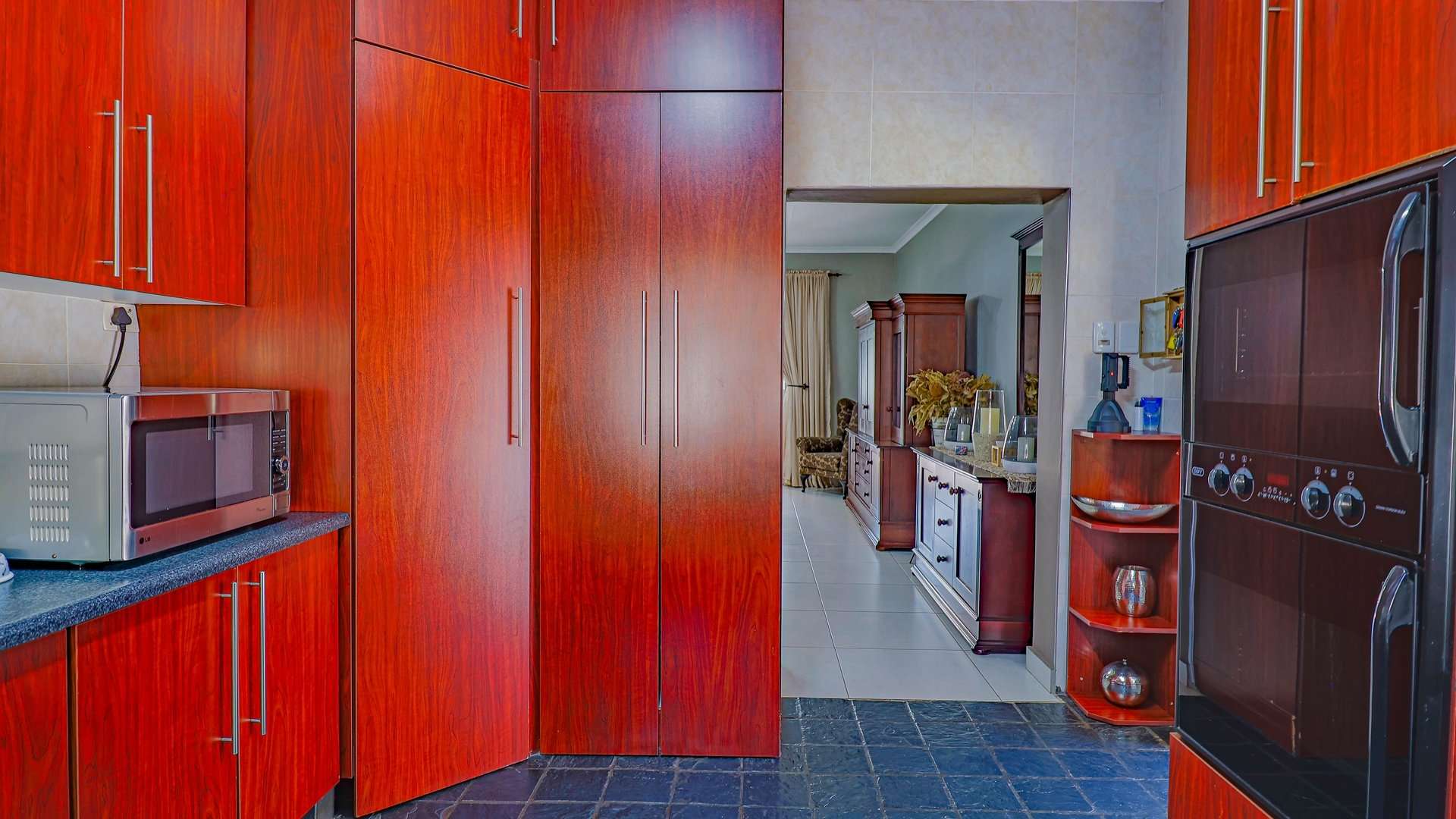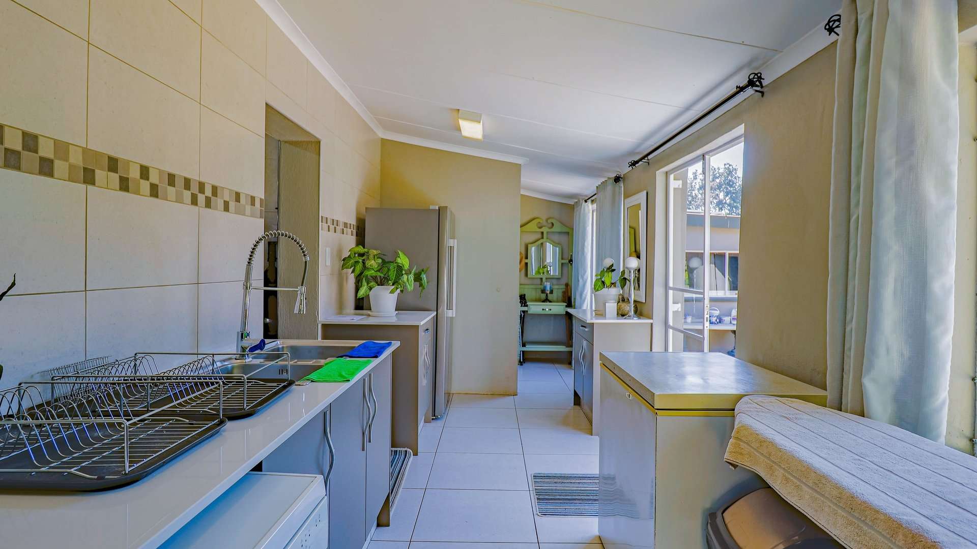 A well-equipped kitchen featuring a pantry, scullery, and laundry area