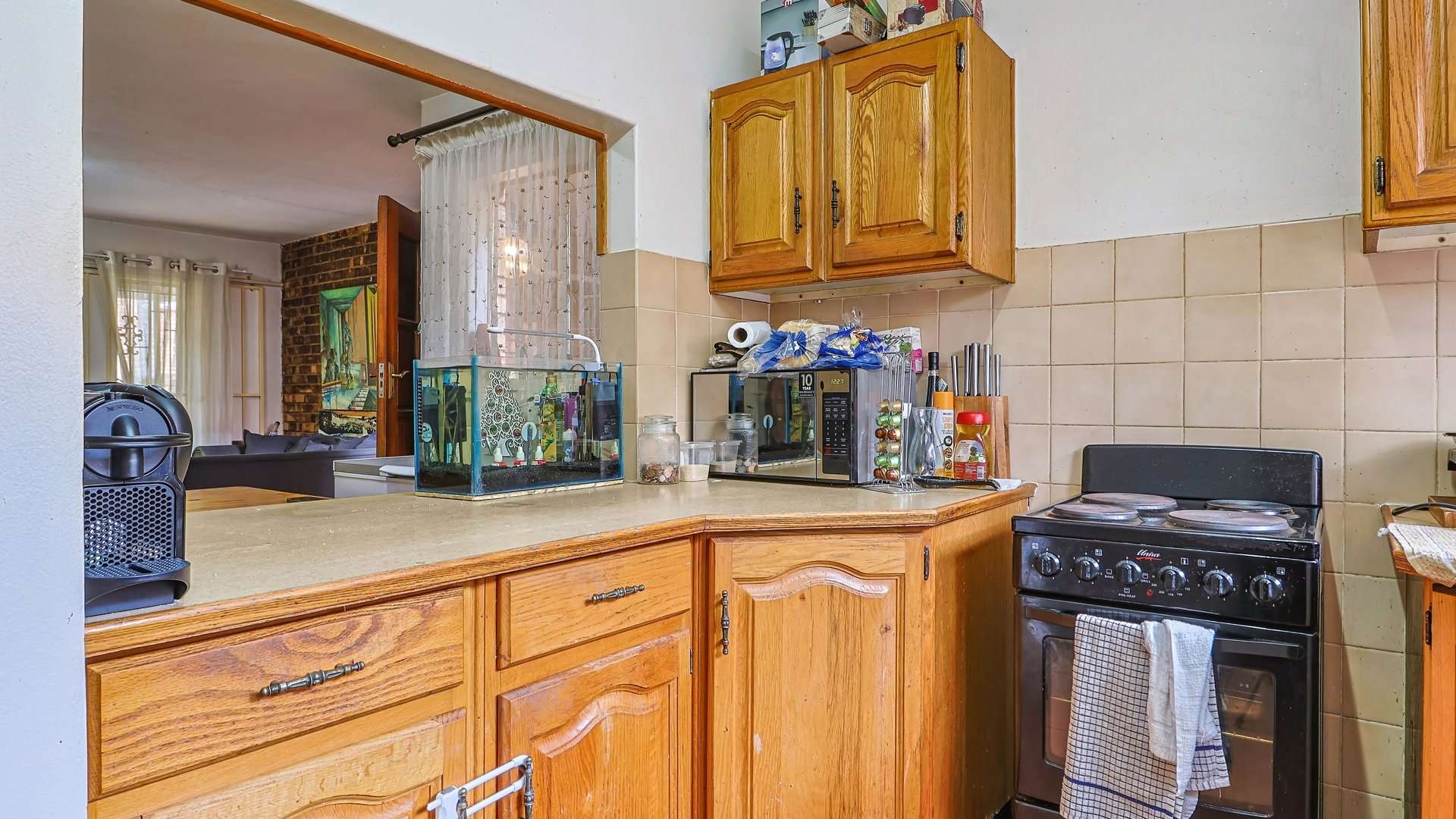 The open-plan kitchen flows seamlessly into the living area, creating a welcoming and functional space.