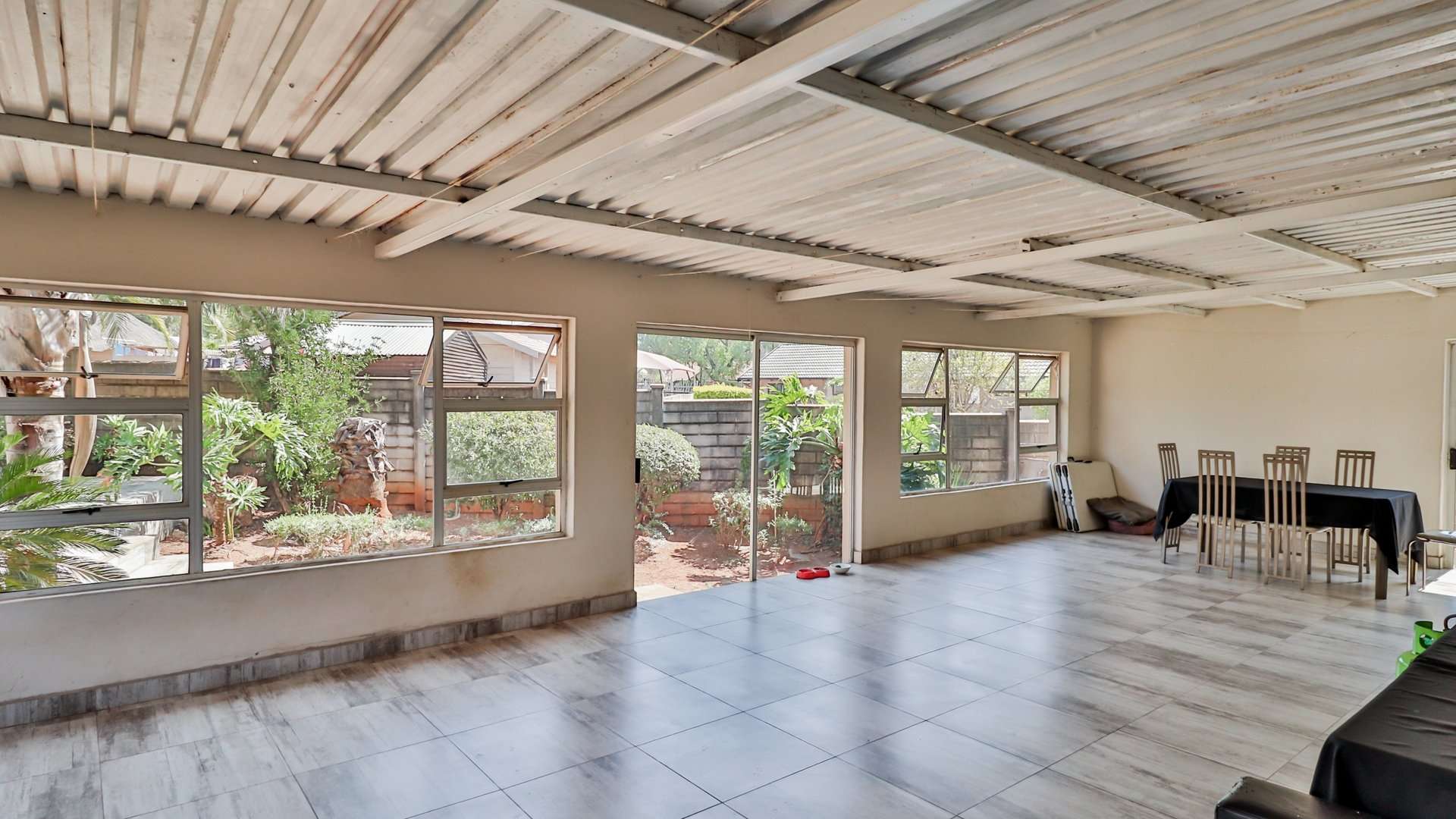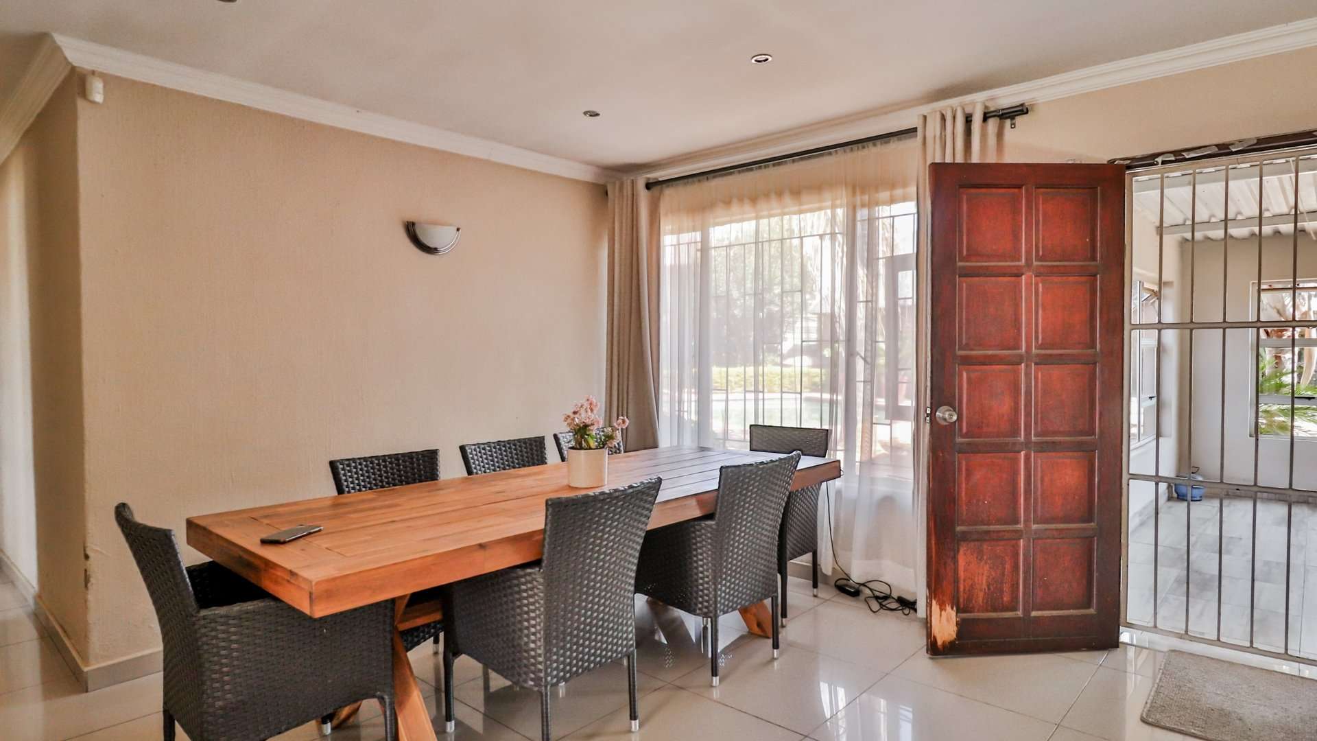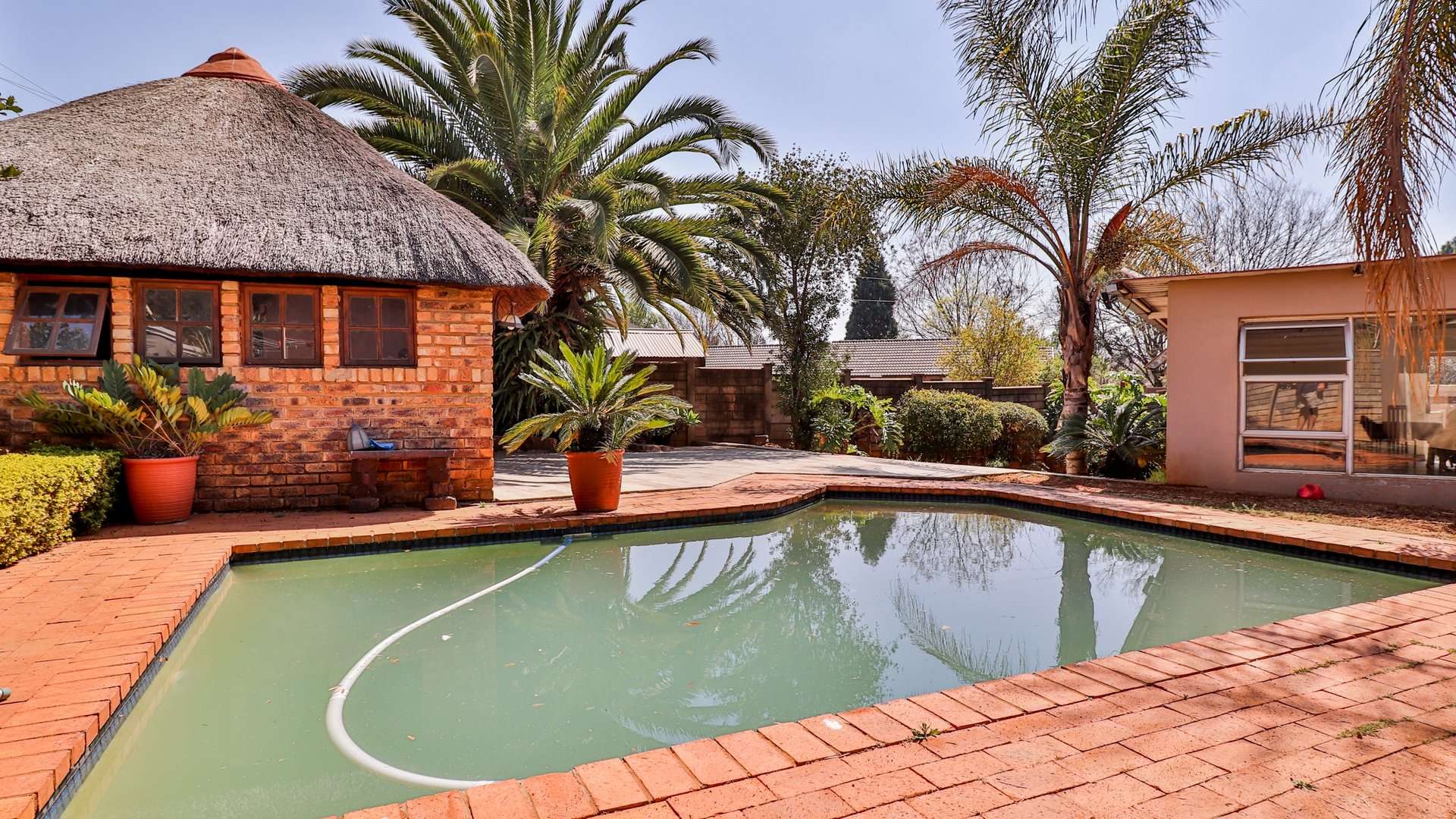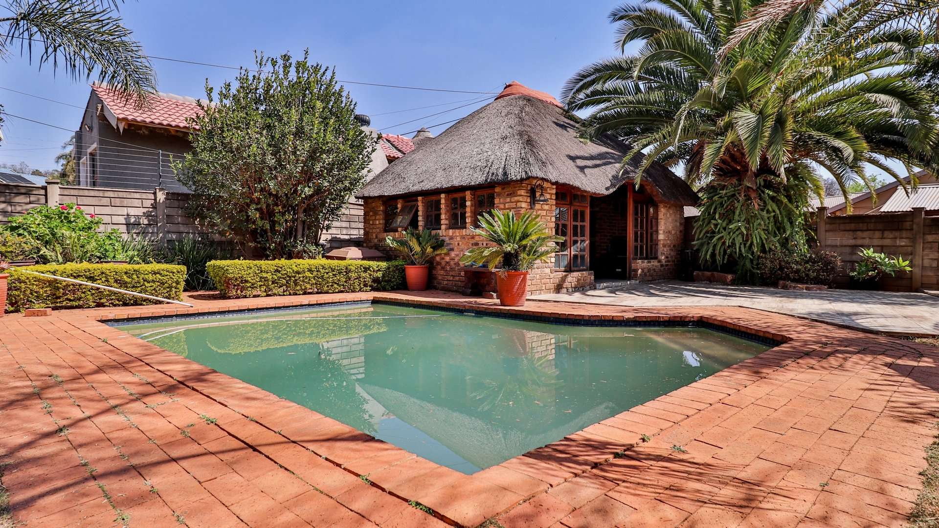 One of the main highlights of this property is the beautifully manicured garden, complete with a sparkling pool, and a Lapa that has a built-in braai.