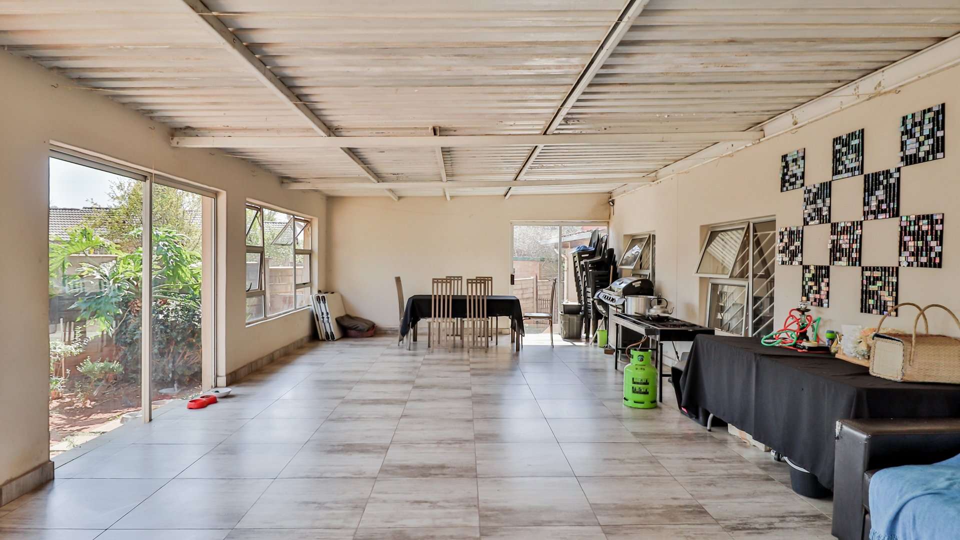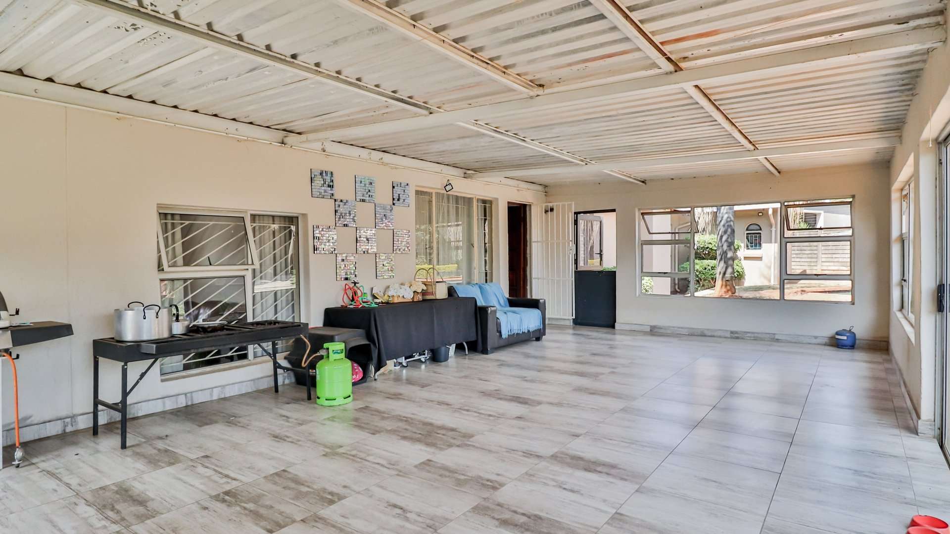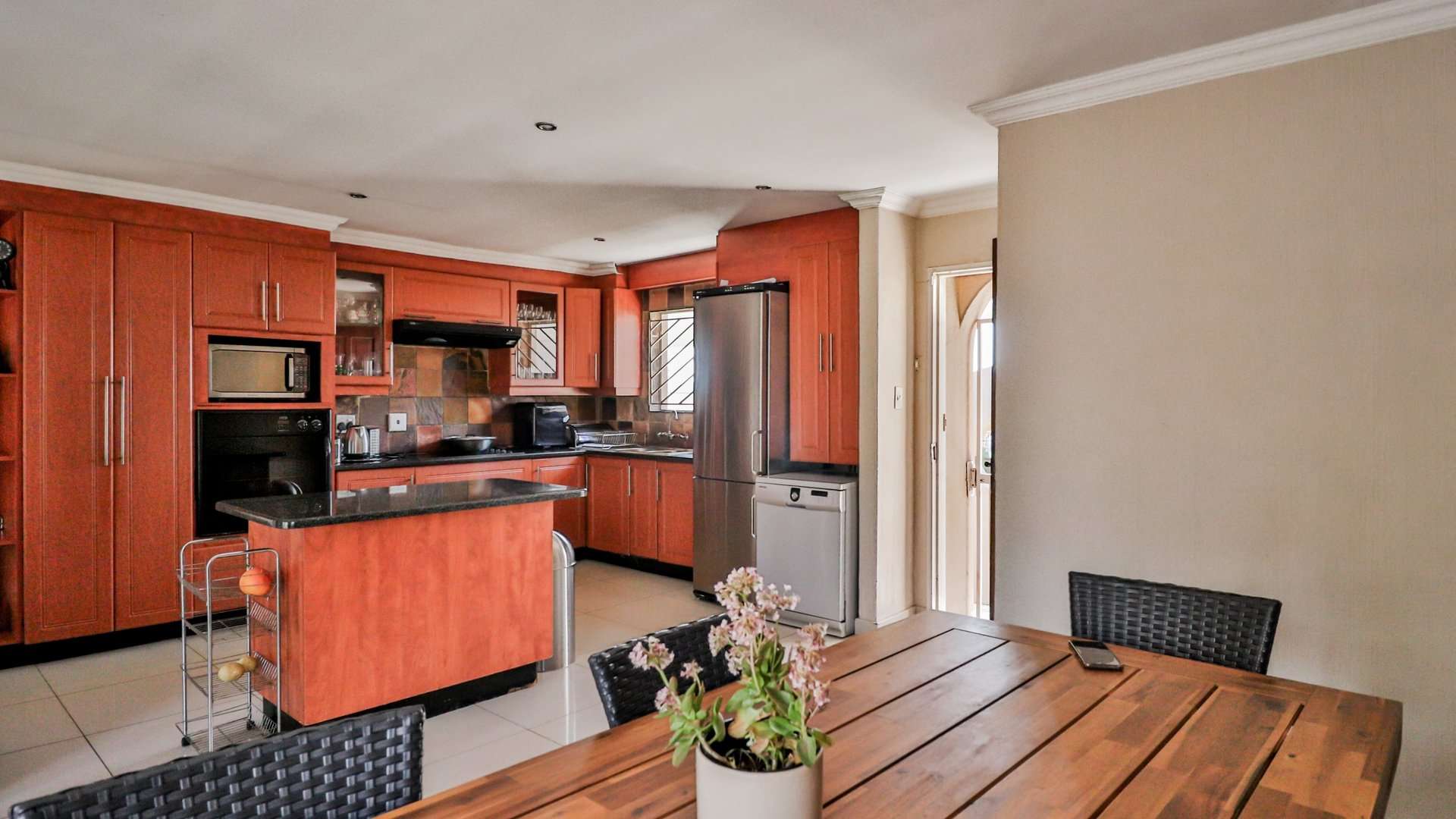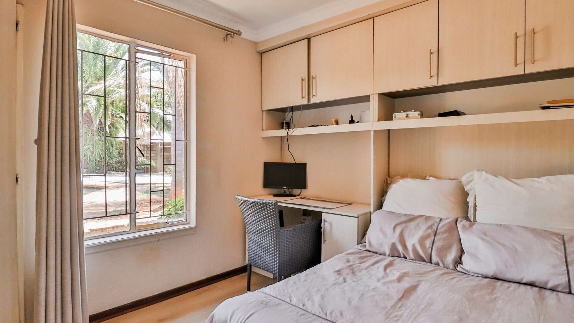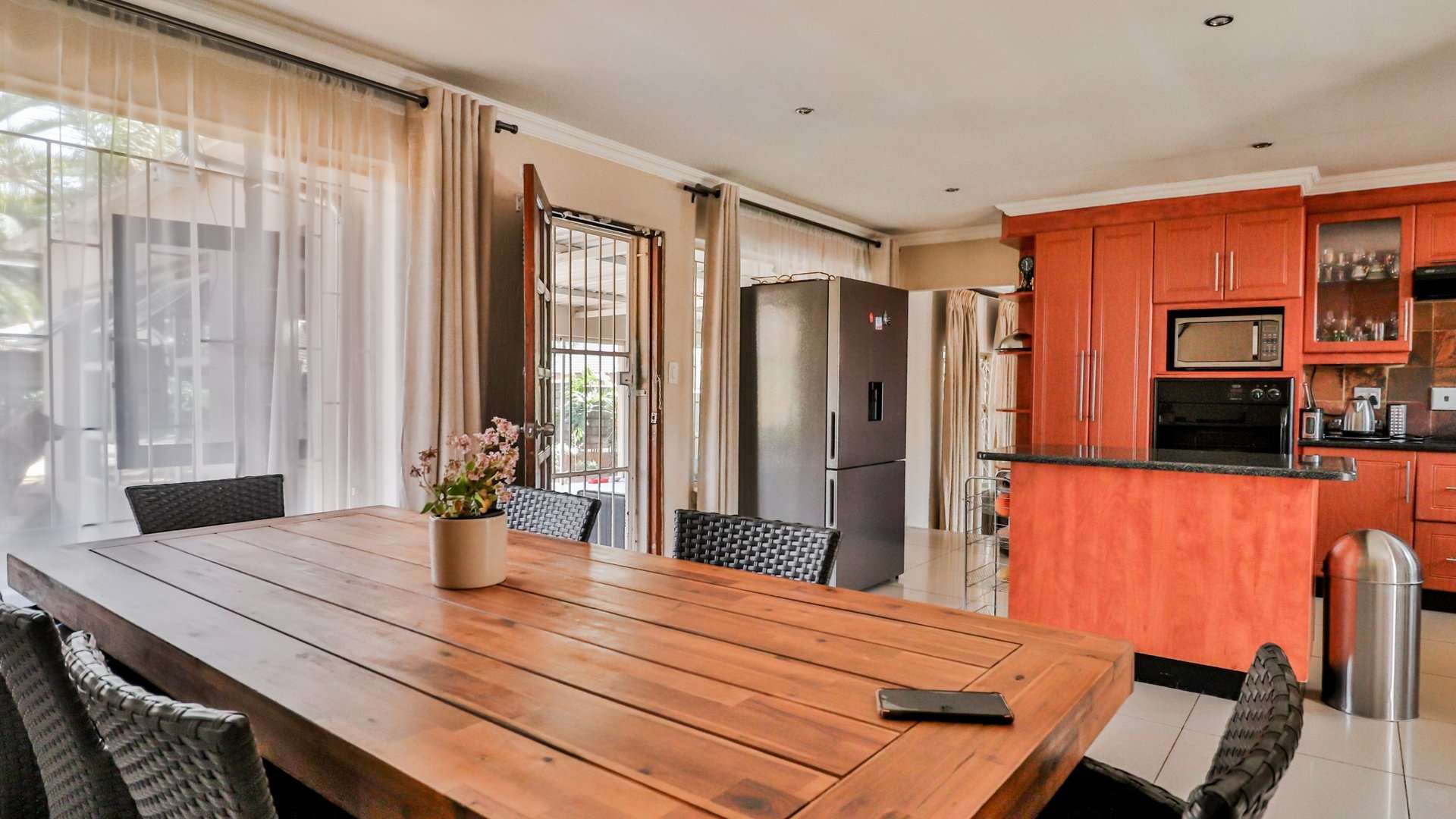 One of the main highlights of this property is the beautifully manicured garden, complete with a sparkling pool, and a Lapa that has a built-in braai.