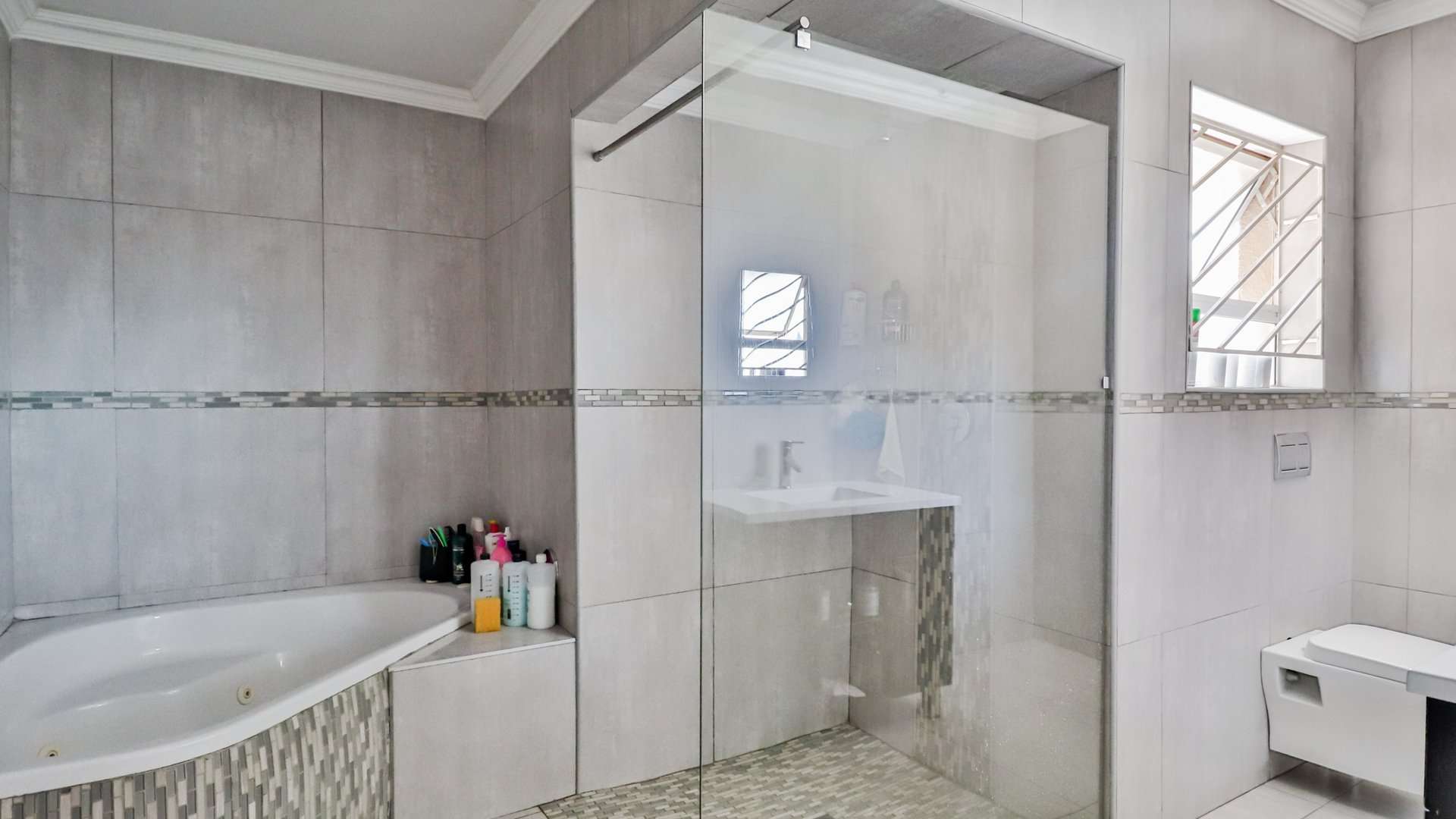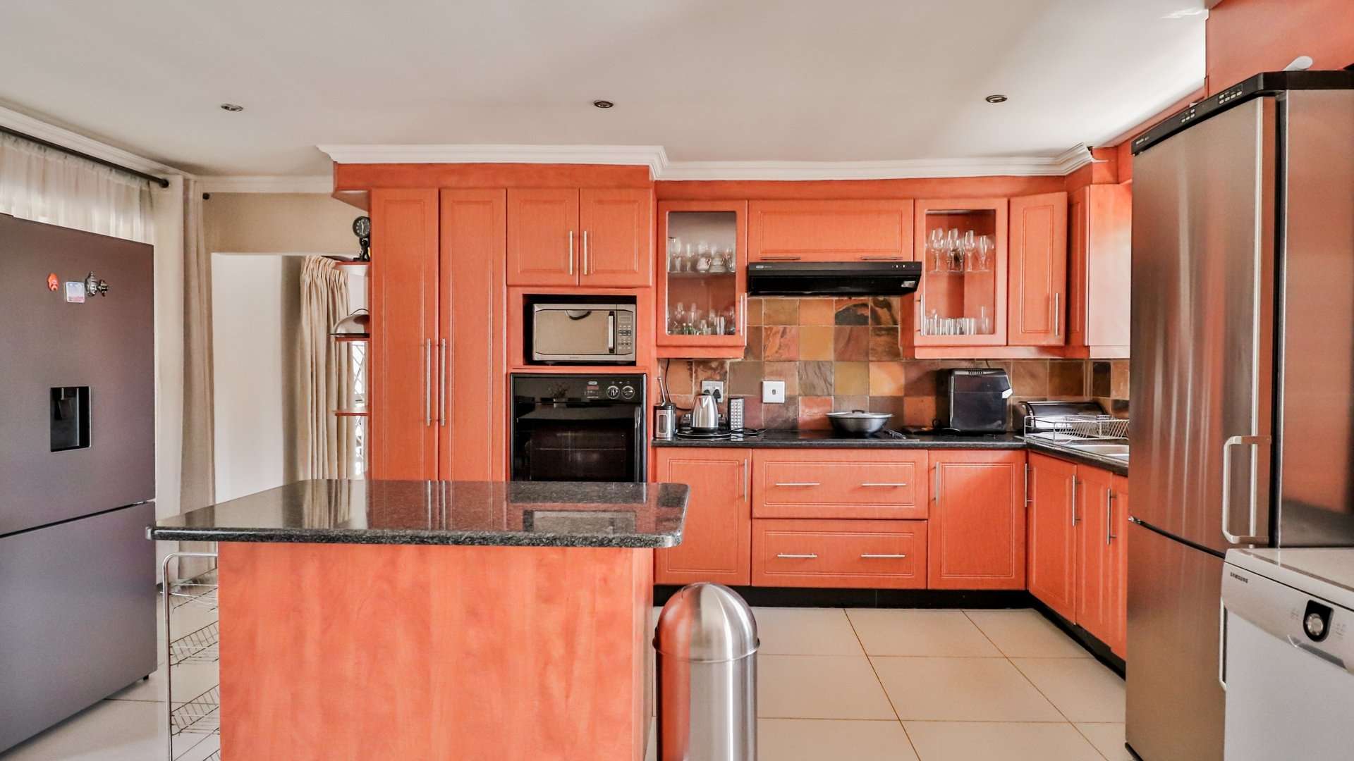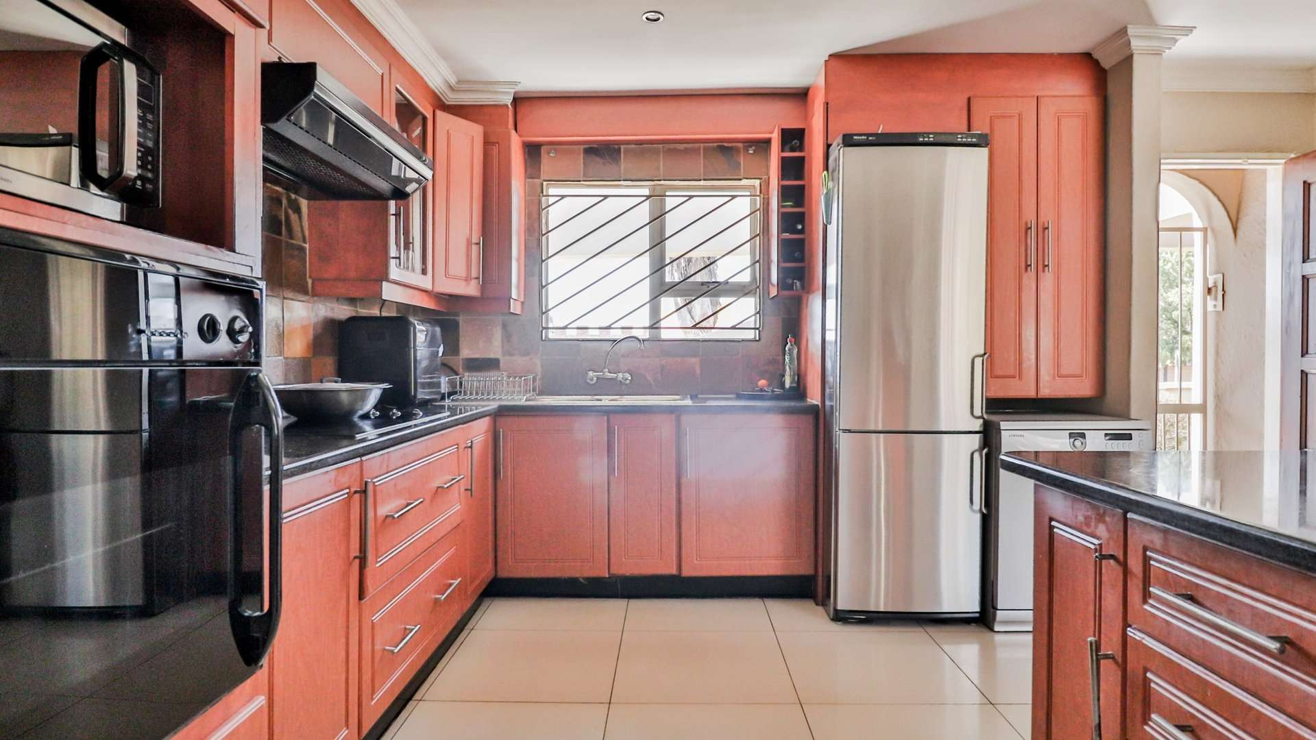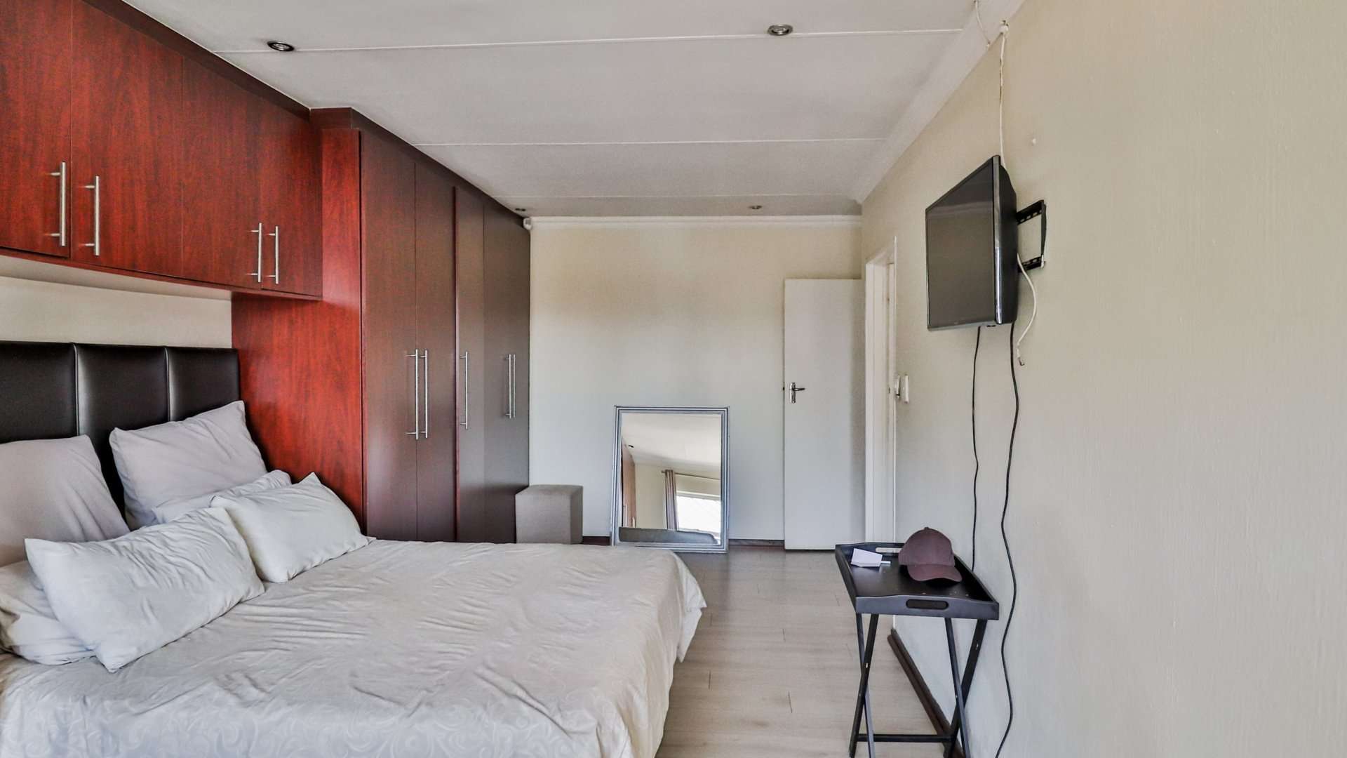 One of the main highlights of this property is the beautifully manicured garden, complete with a sparkling pool, and a Lapa that has a built-in braai.