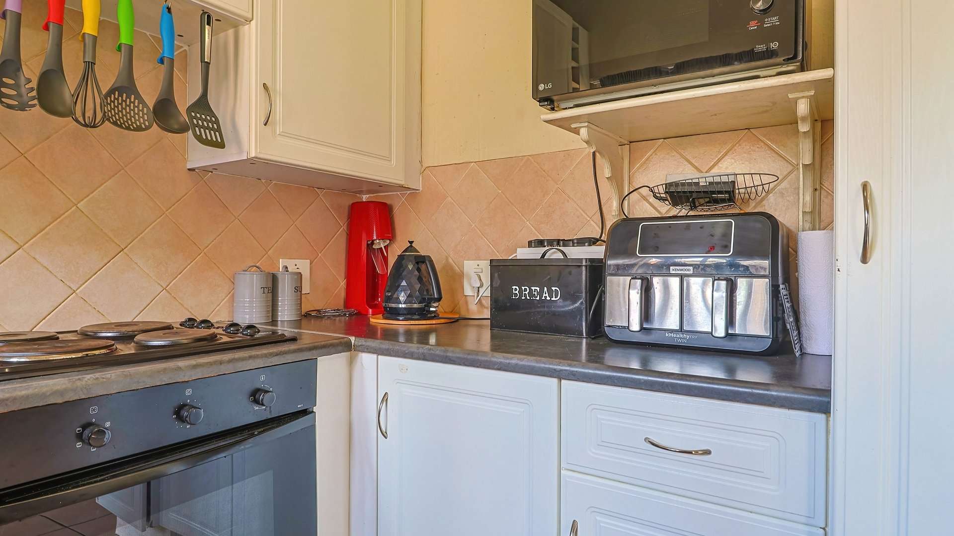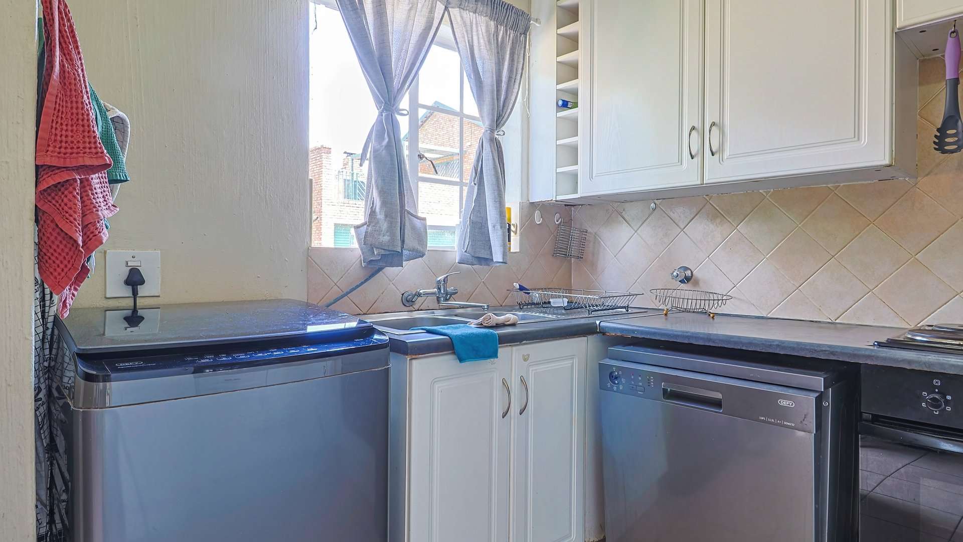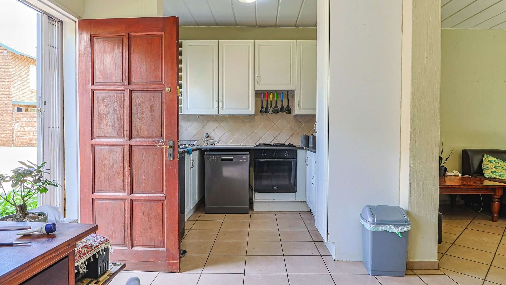 The long-tiled hallway and sliding doors enhance light and ventilation, while the kitchen’s layout makes meal prep a breeze with gas or electric cooking options.