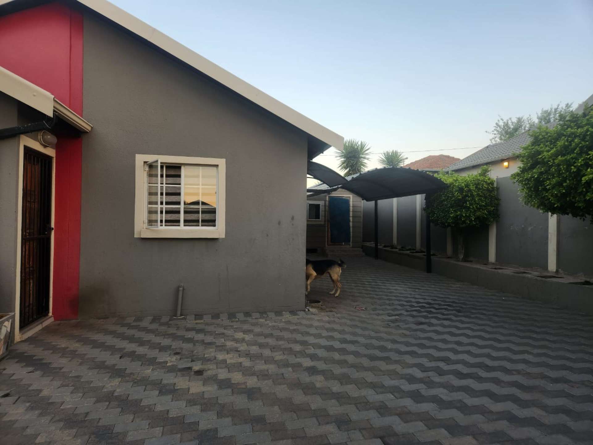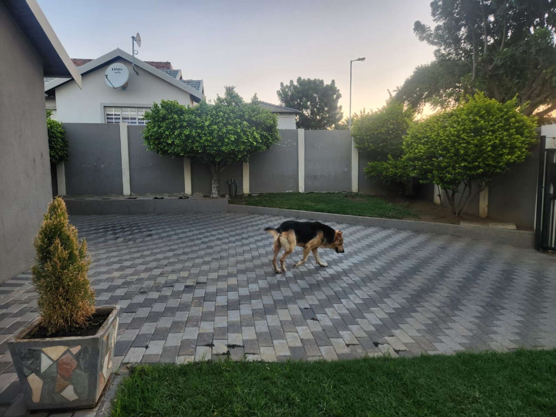 Walled and paved yard.