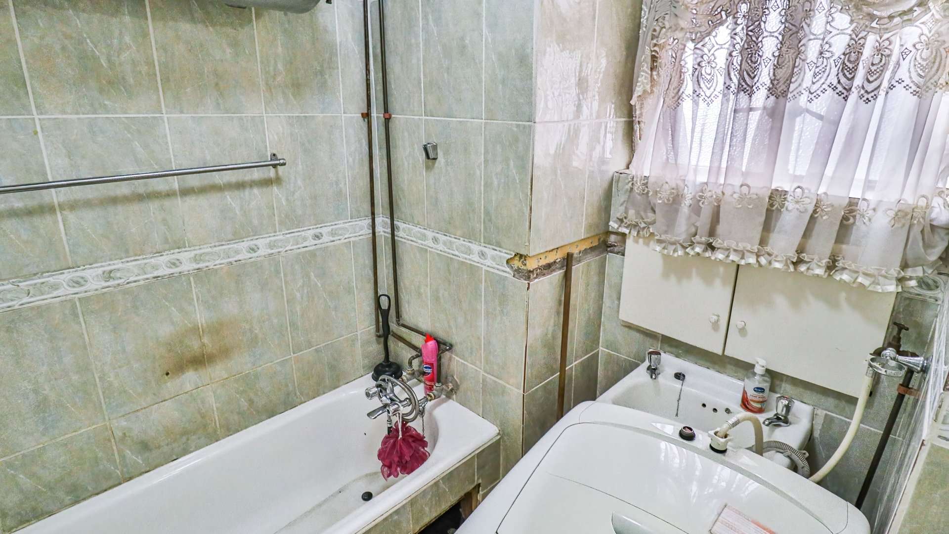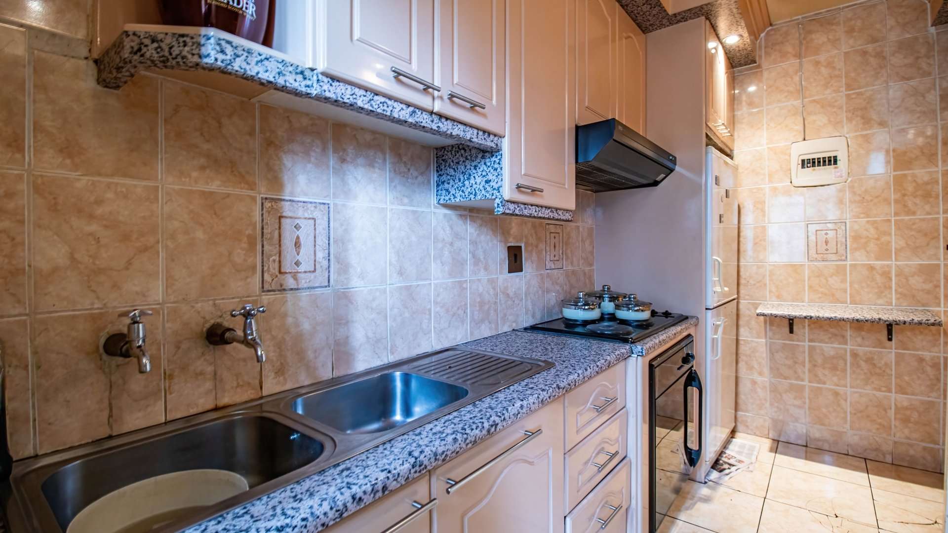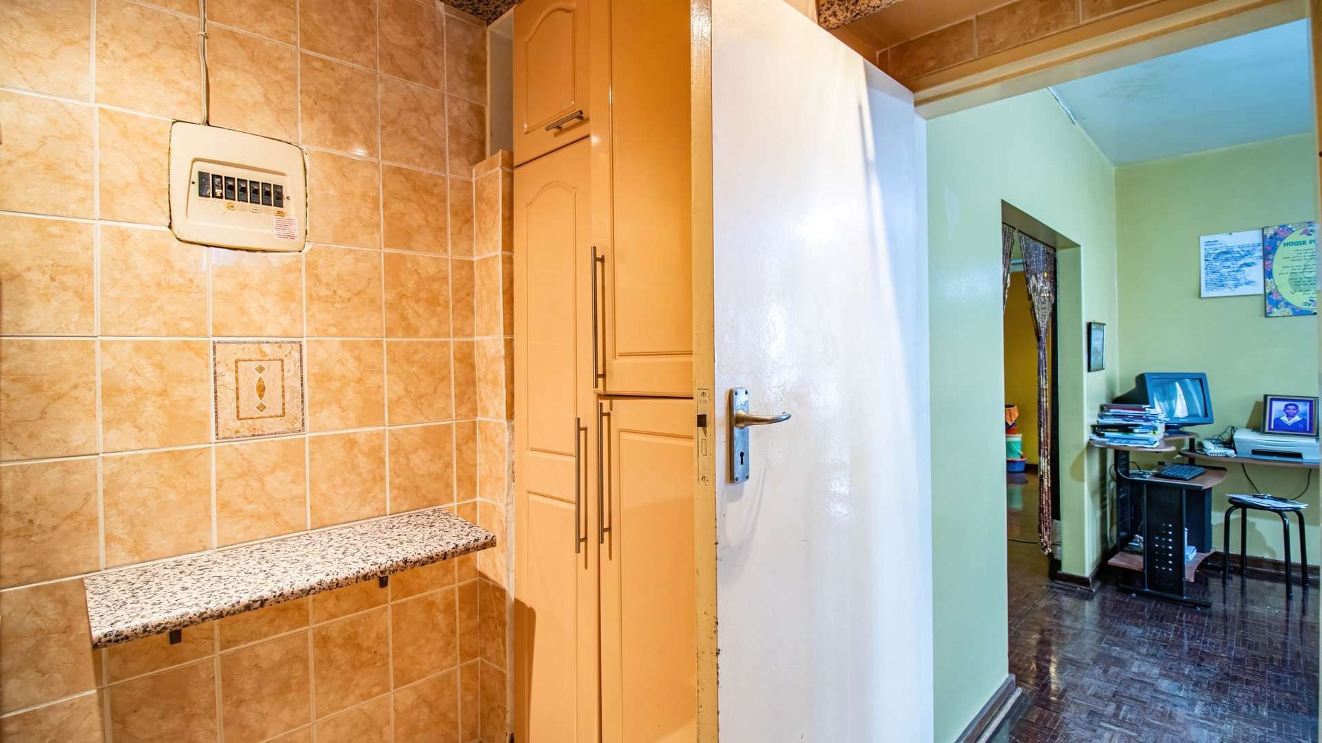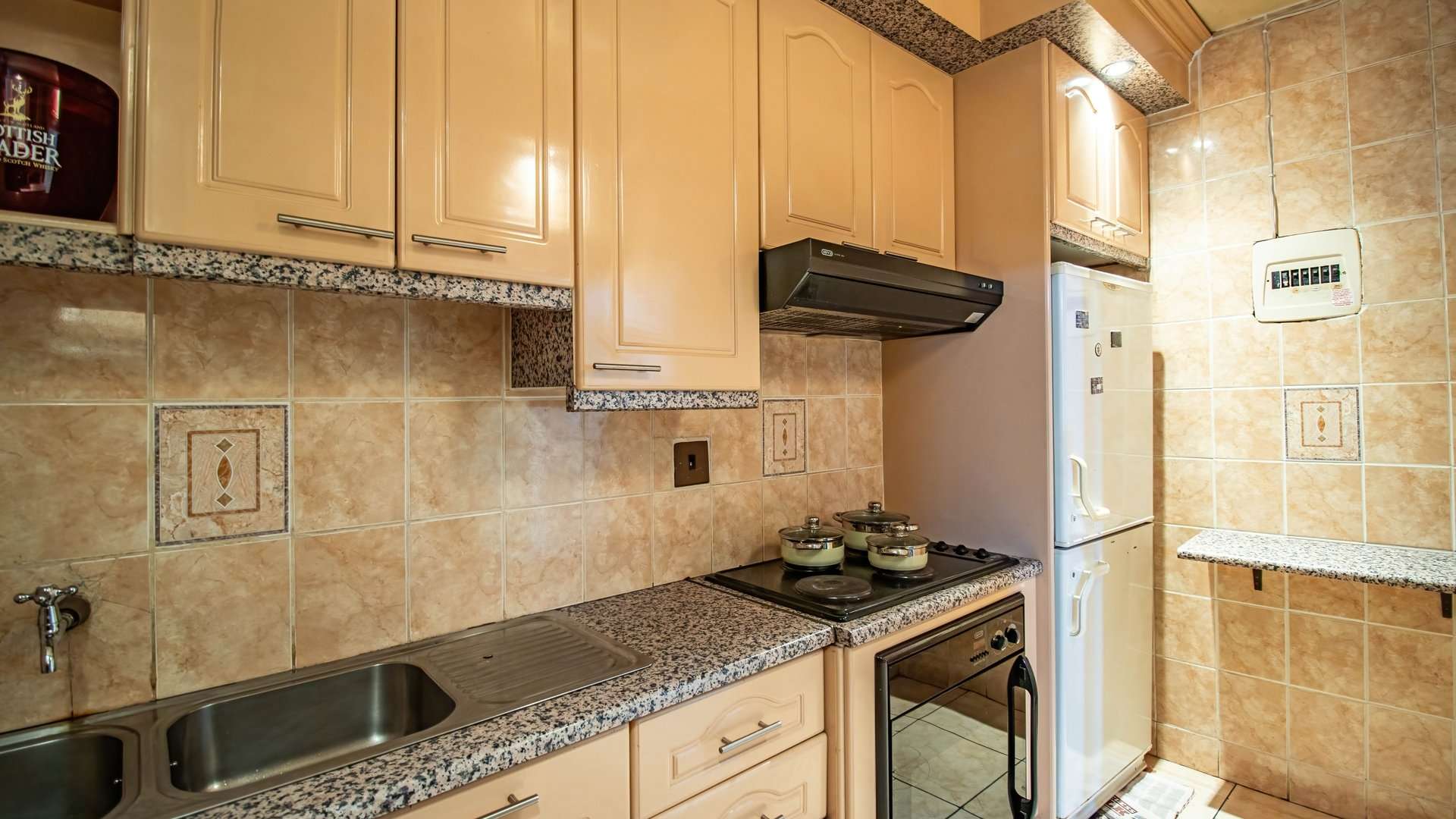 It offers two generous bedrooms with built-in cupboards, a neat and practical kitchen, a bathroom with a bathtub and basin, plus a separate toilet for added convenience.