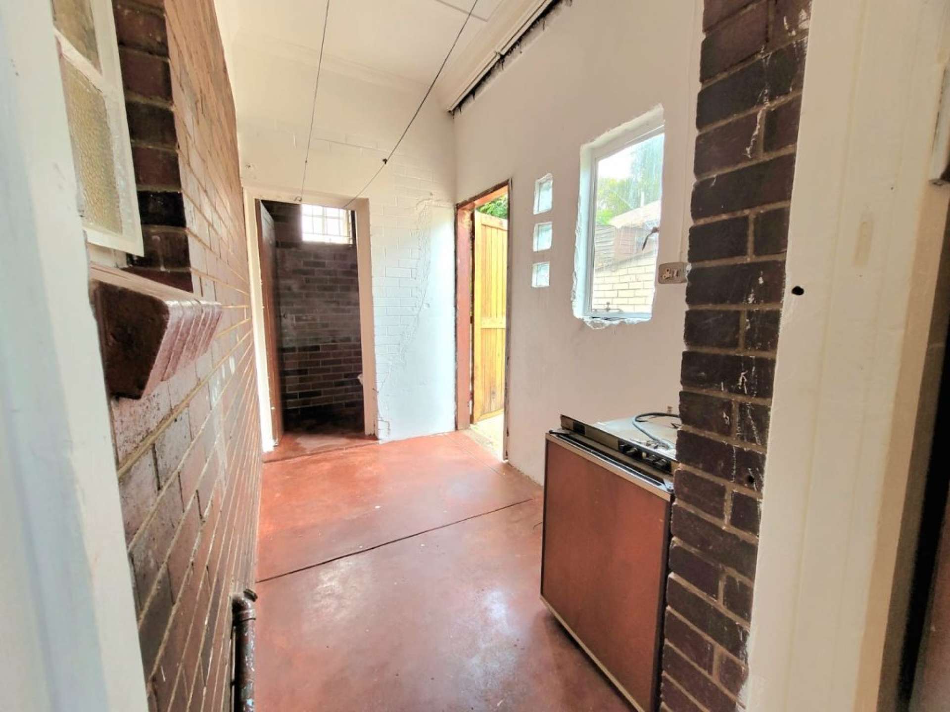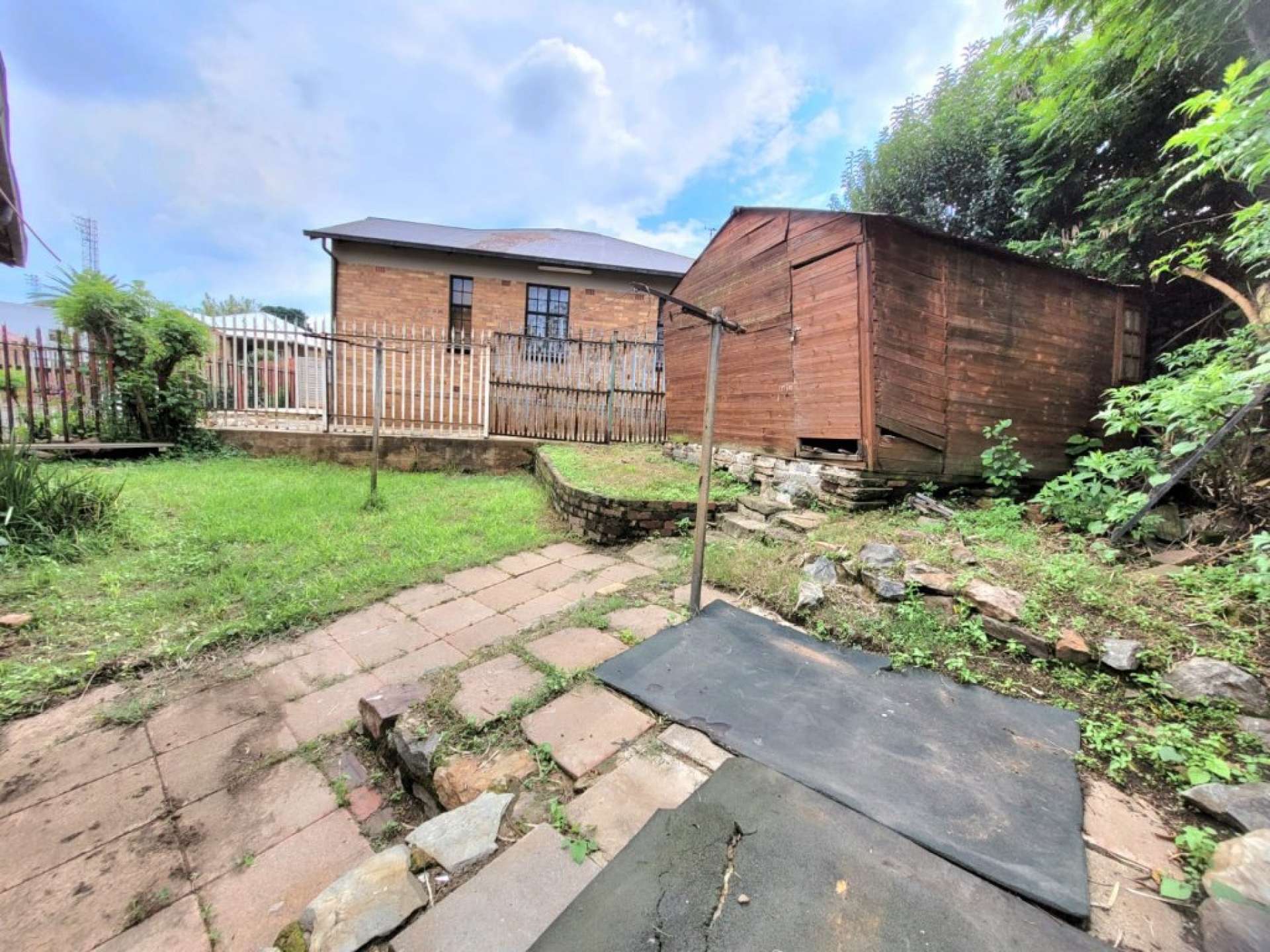 A laundry area leads out to the backyard, which also offers a storage room and a Wendy house.