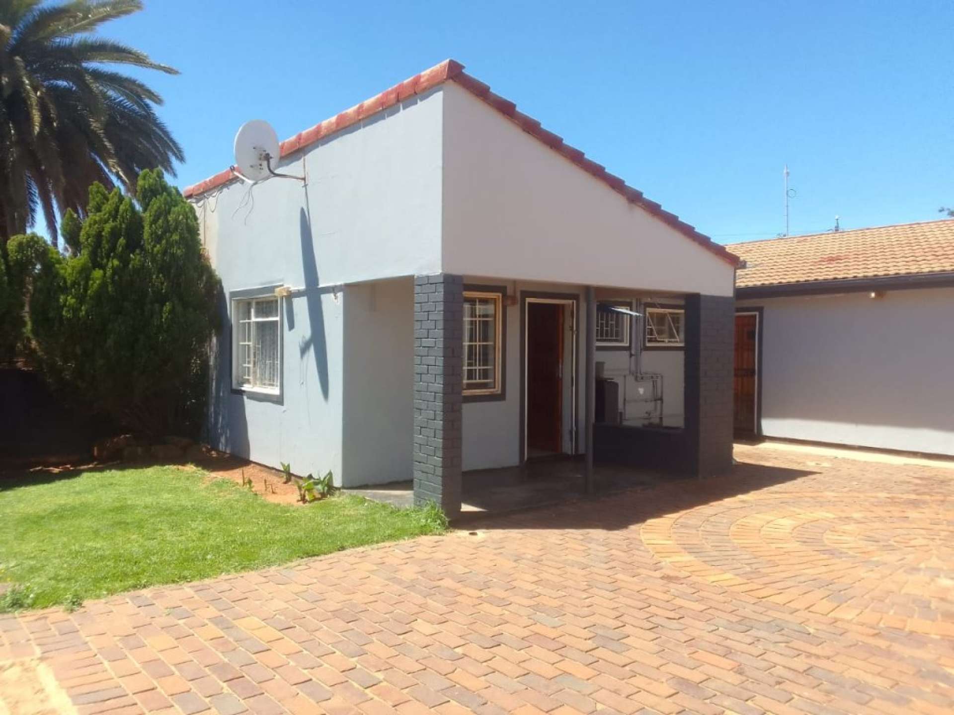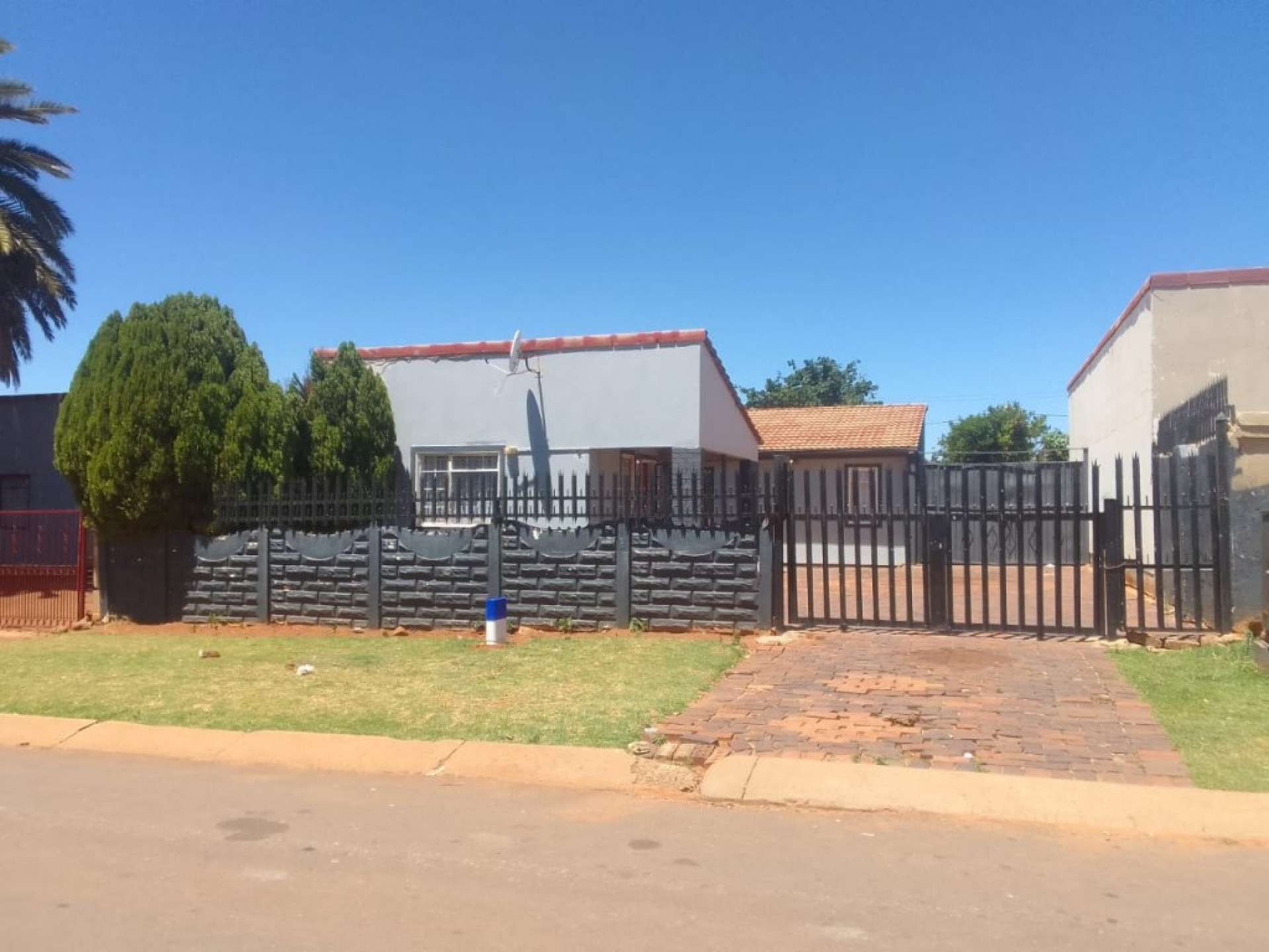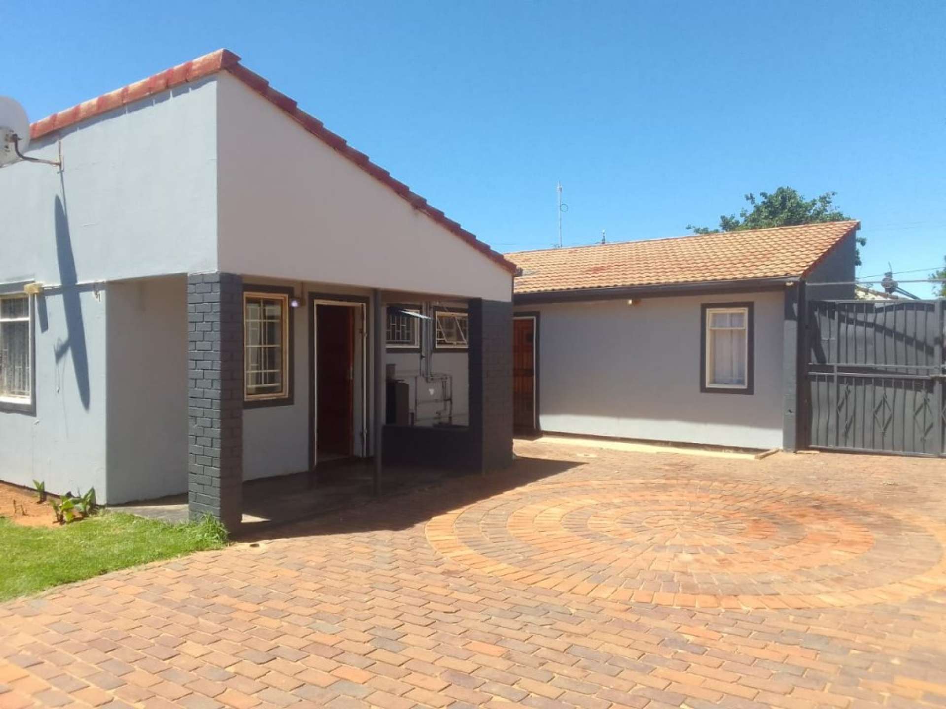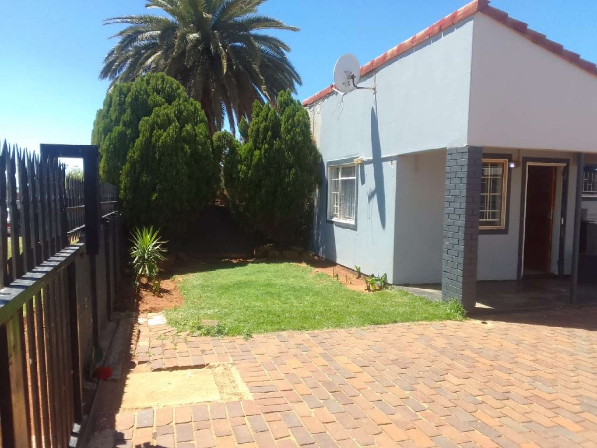 The front yard is fully paved and spacious, making it great for entertaining.
