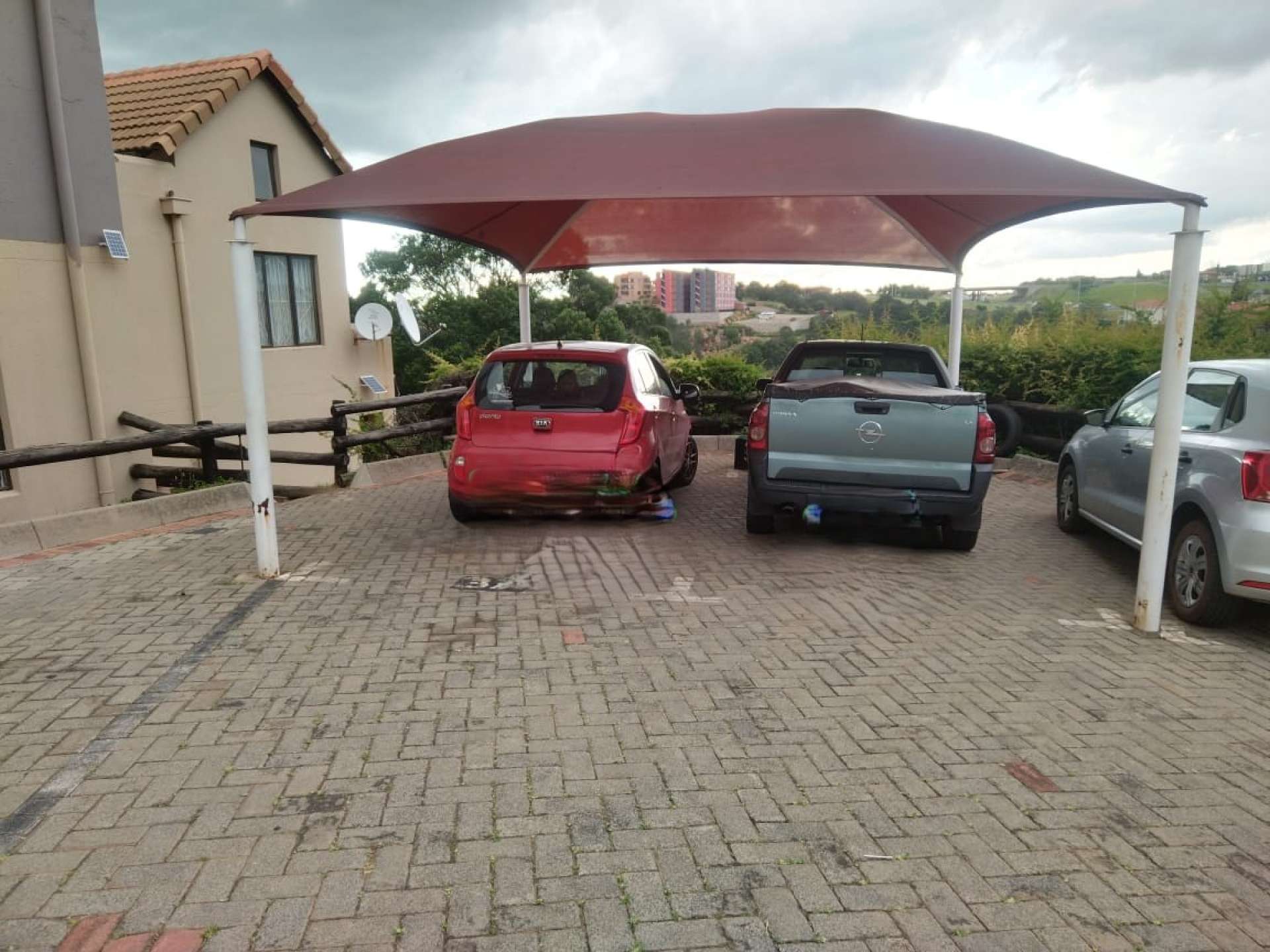 The townhouse includes a dedicated carport, and residents can enjoy access to a communal swimming pool within the secure complex.