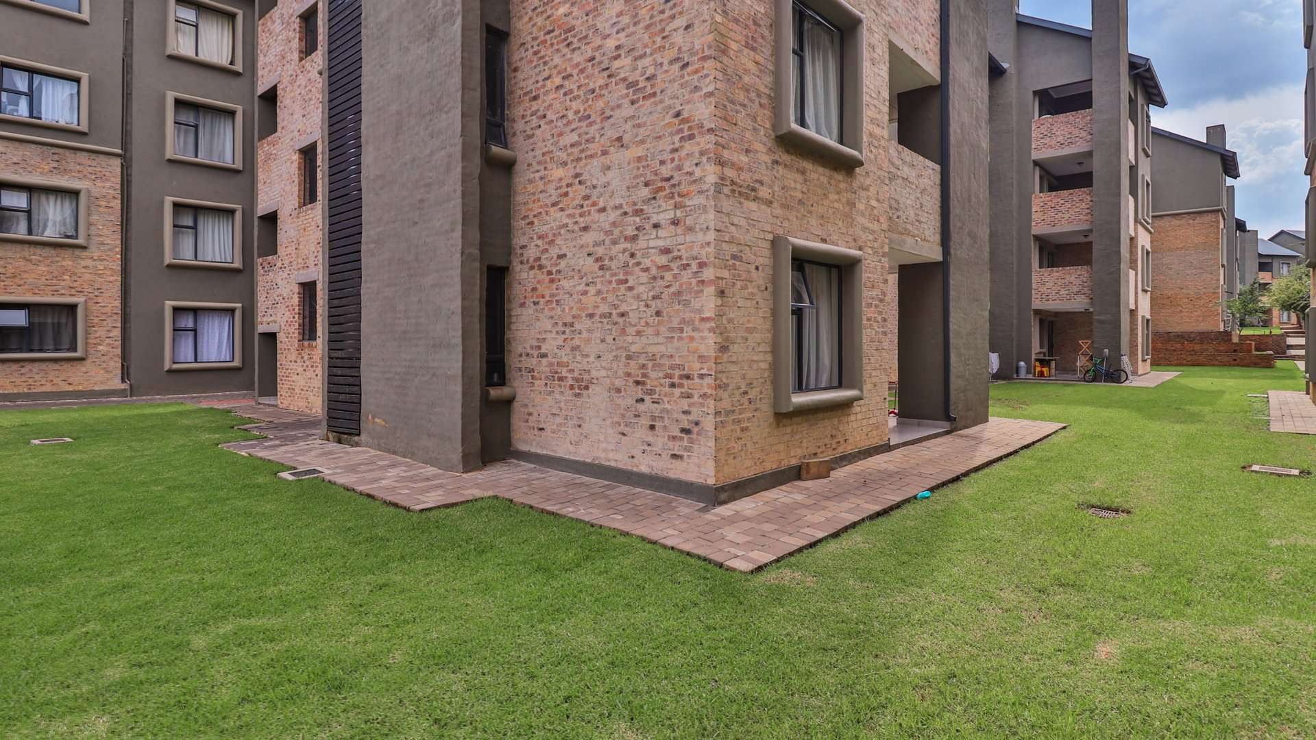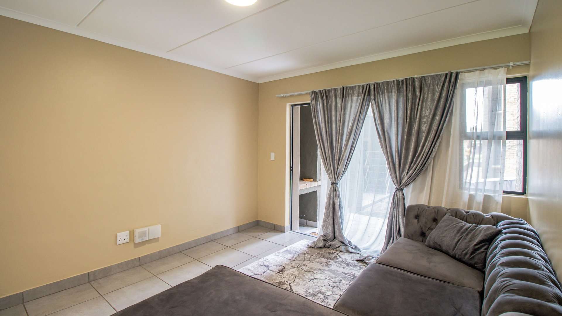 The apartment also features a braai facility on the patio, perfect for entertaining, and residents have access to a communal pool within the estate.