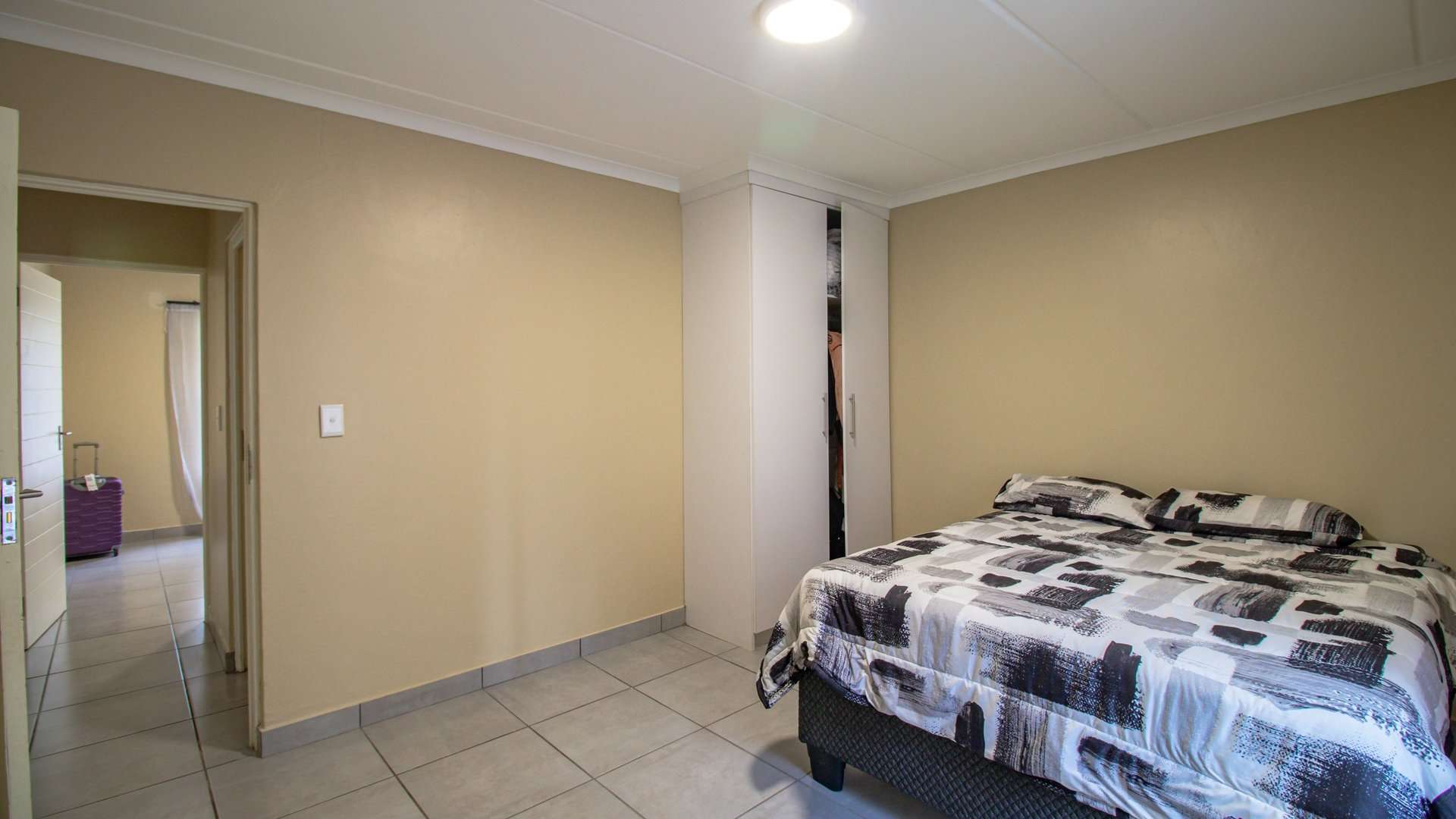 This spacious 2-bedroom apartment is available for sale in the secure Noah's Village estate, located on Dahlia Street, Pomona, Kempton Park.
