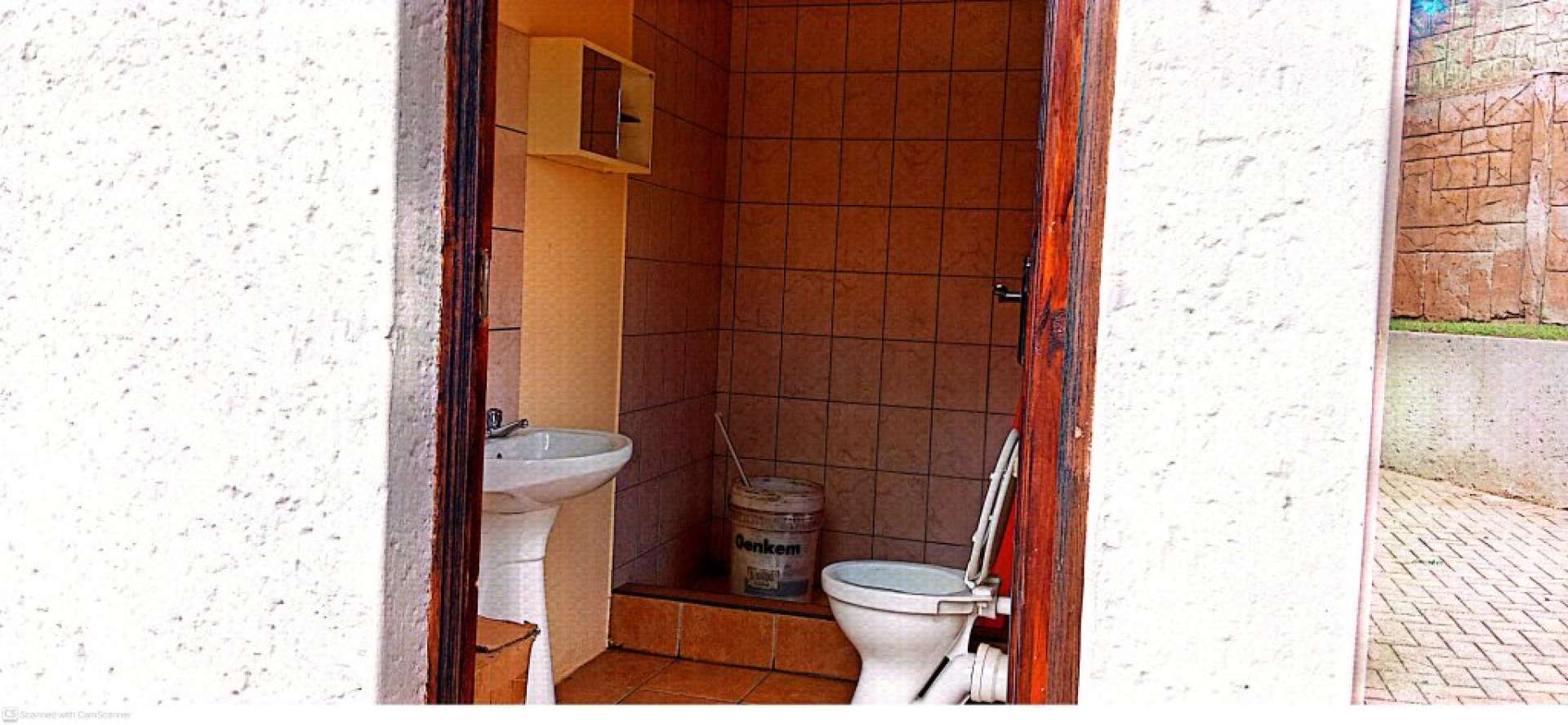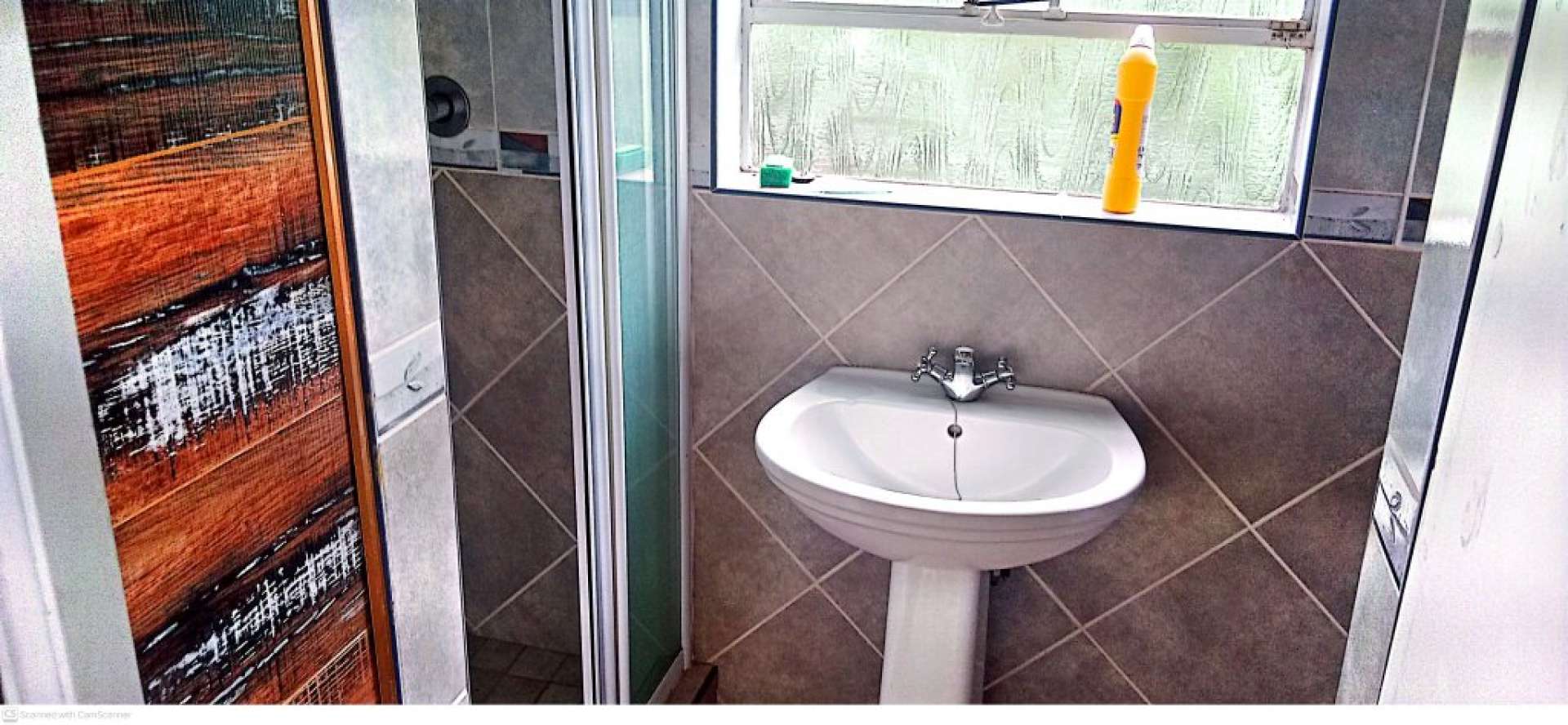 * Outside bathroom with shower