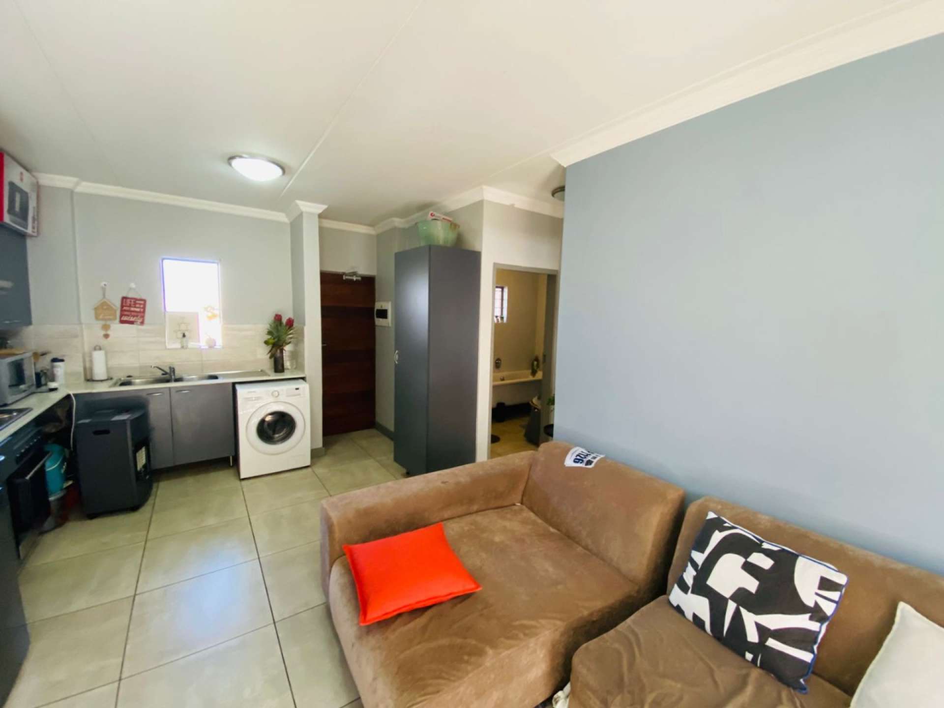 This stylish unit boasts tiled floors in the living areas and kitchen, with warm laminate flooring in the bedroom for a cozy touch.