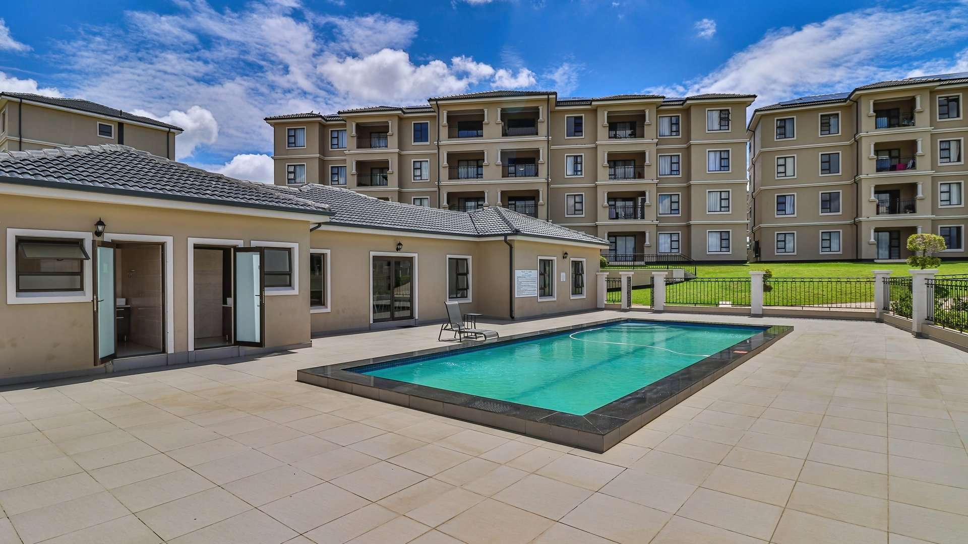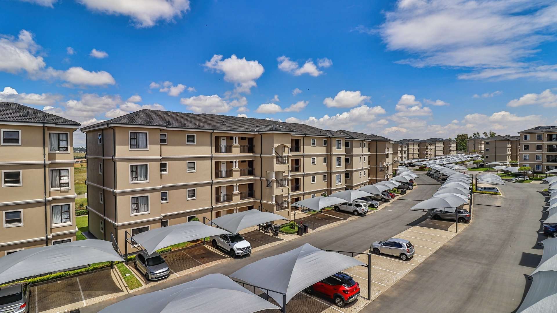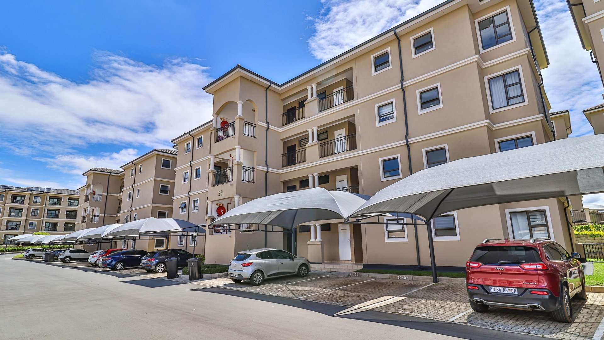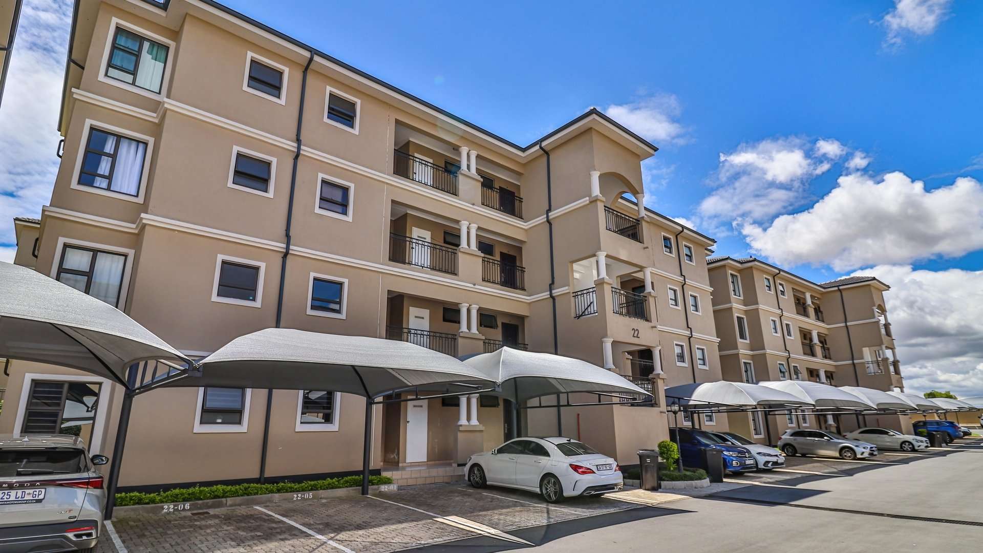 The property includes two covered carports as well as ample visitor parking. Residents can enjoy clubhouse facilities that include a swimming pool and braai area.