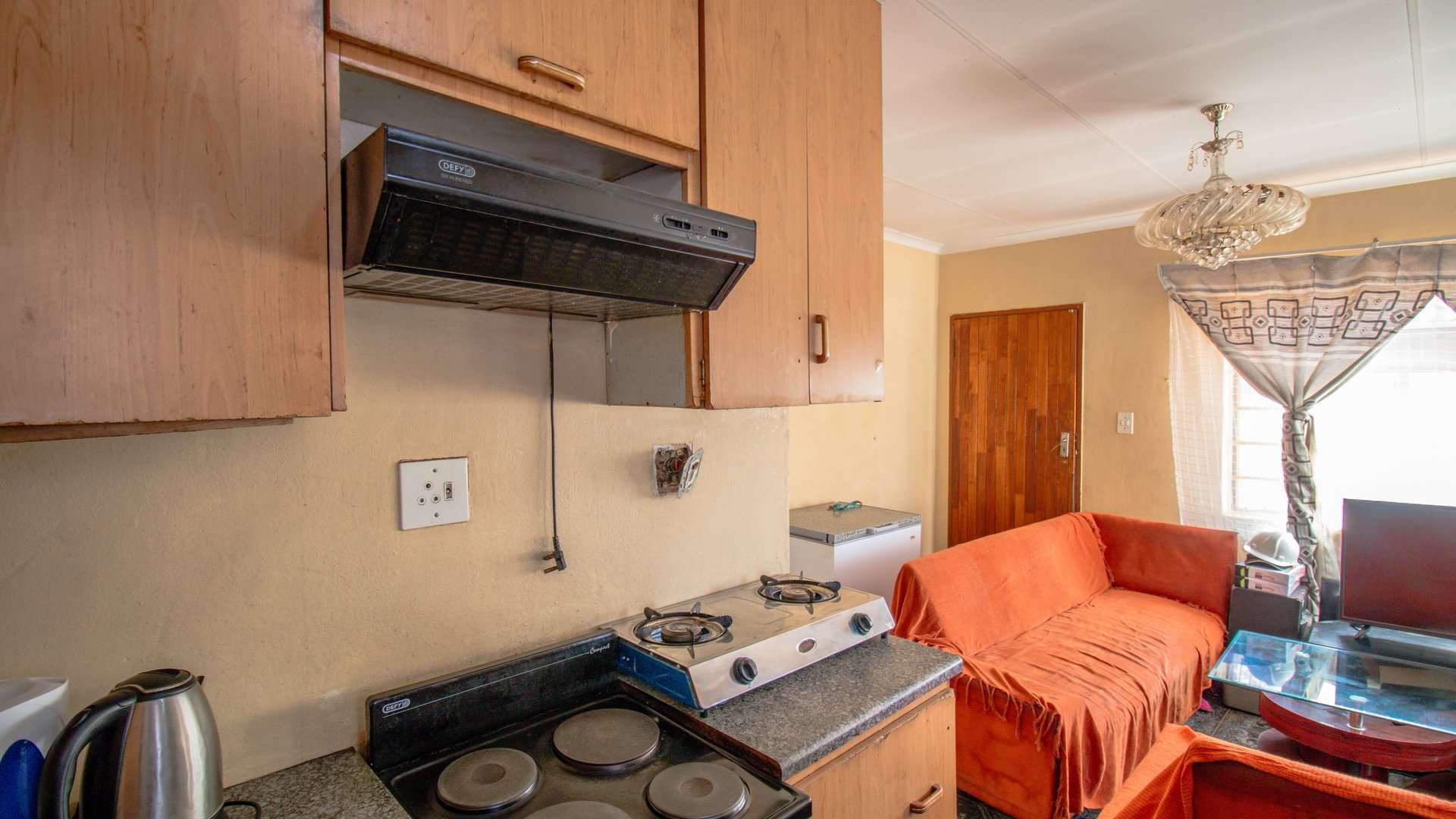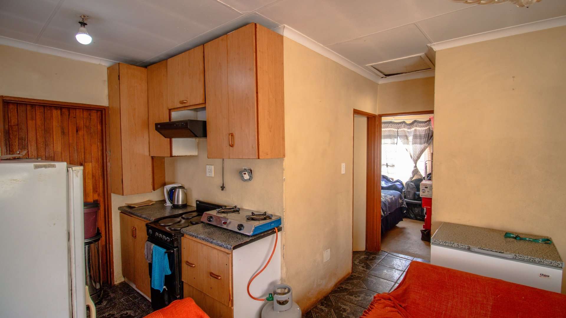 This elegant house offers two spacious bedrooms, a cozy living room perfect for relaxed evenings, and a kitchen equipped with built-in cupboards, a four-plate electric stove, and a sink—everything you need to prepare warm, family meals.