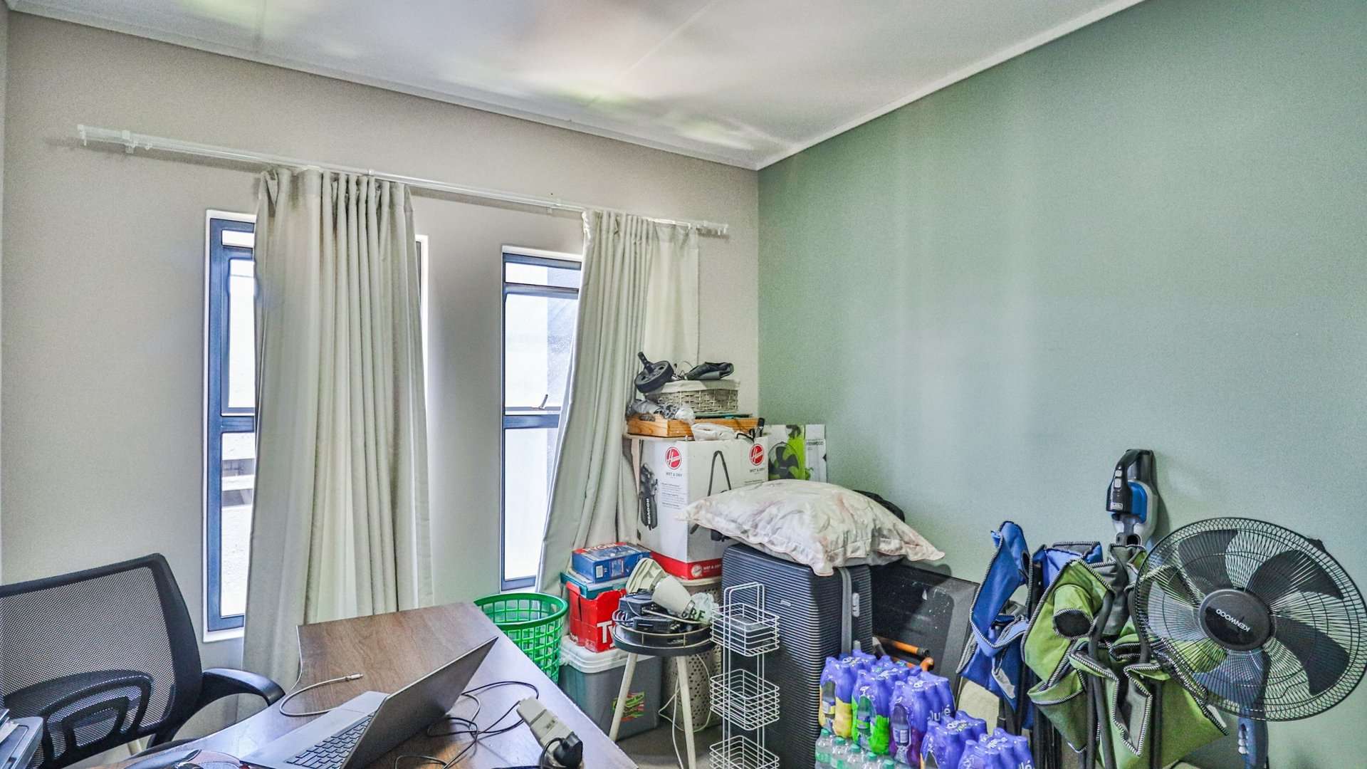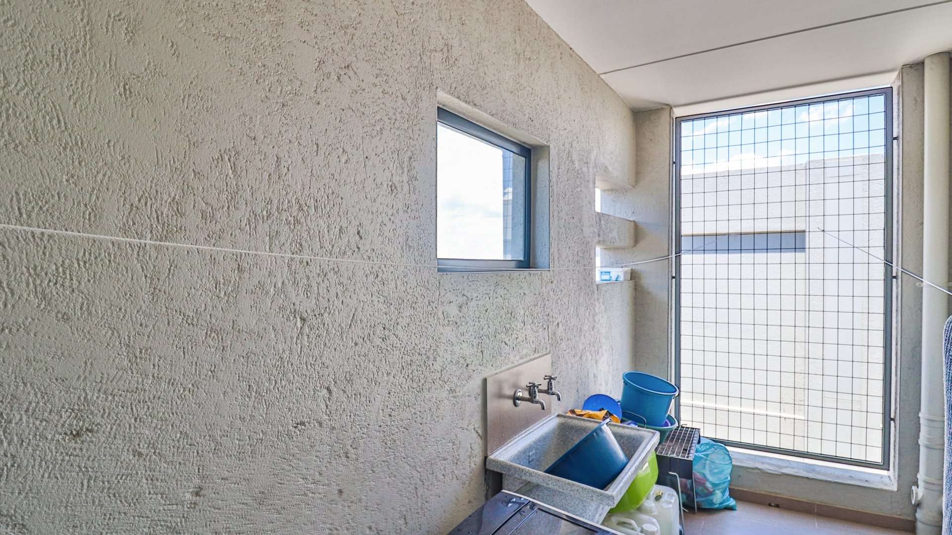 A second spacious bedroom and a modern bathroom complete the private living spaces. For added convenience, the apartment also includes a dedicated storeroom/laundry room.