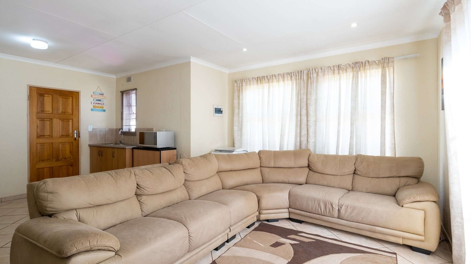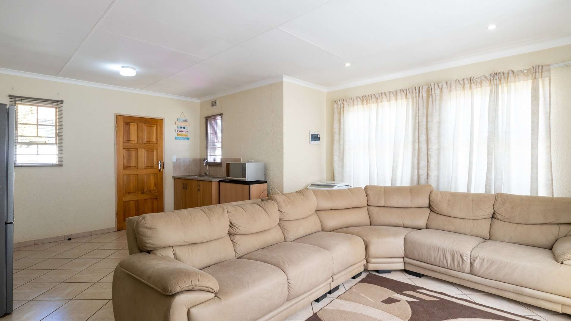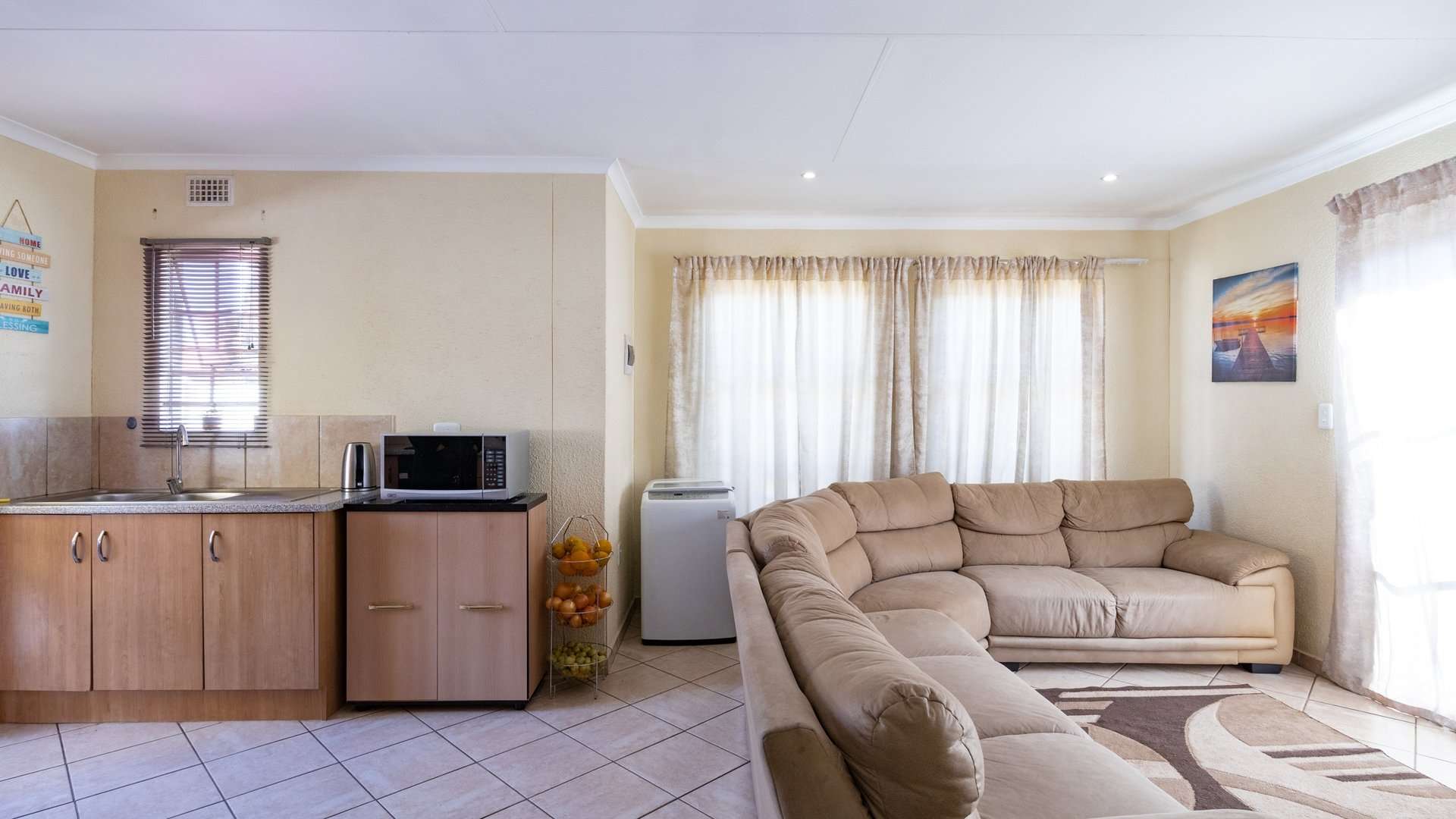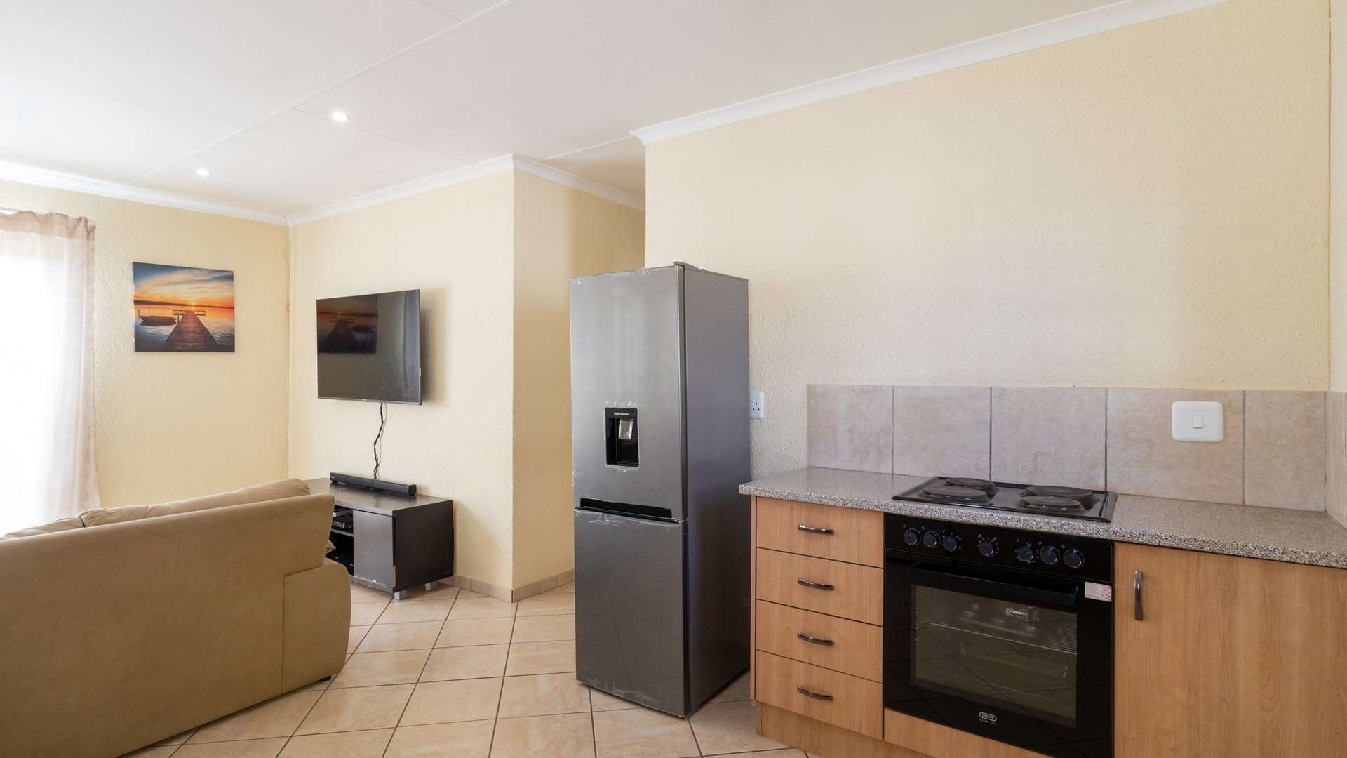 Step into a bright and spacious lounge that flows into a well-appointed kitchen, complete with built-in cupboards—perfect for daily living and easy entertaining.