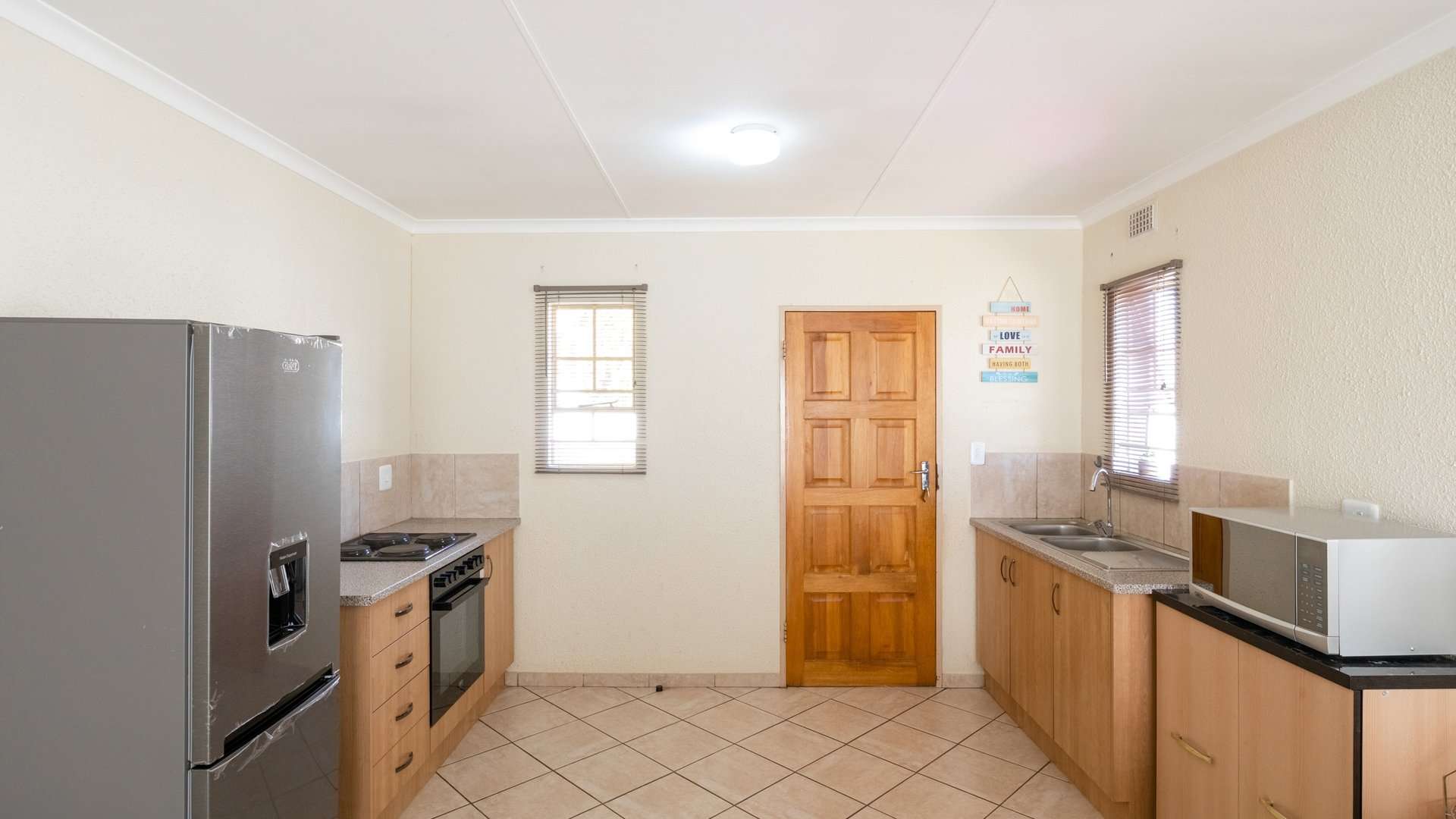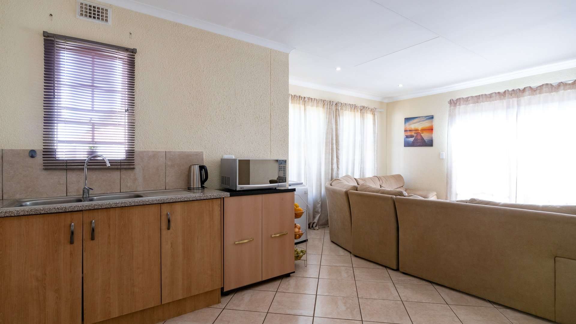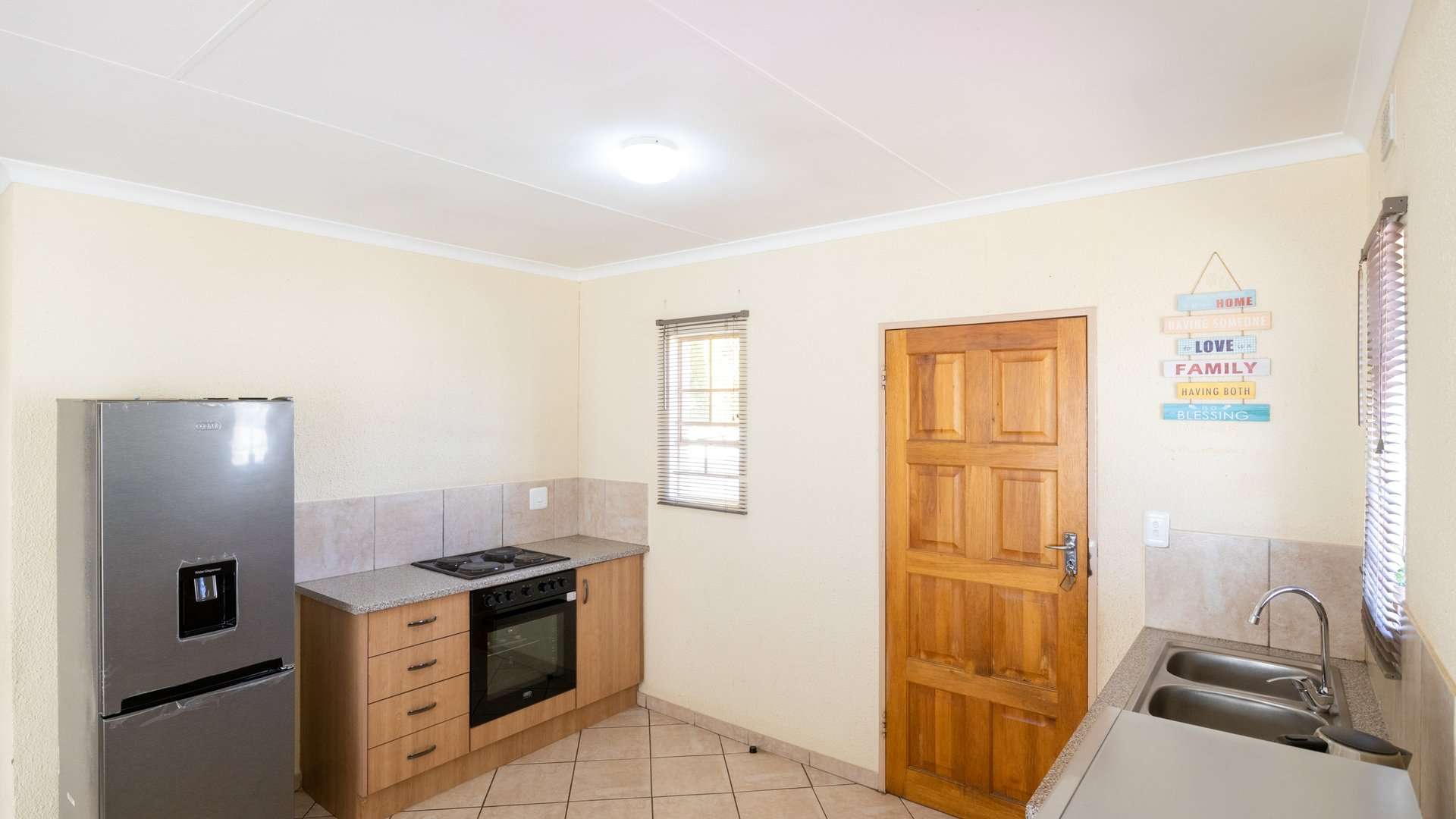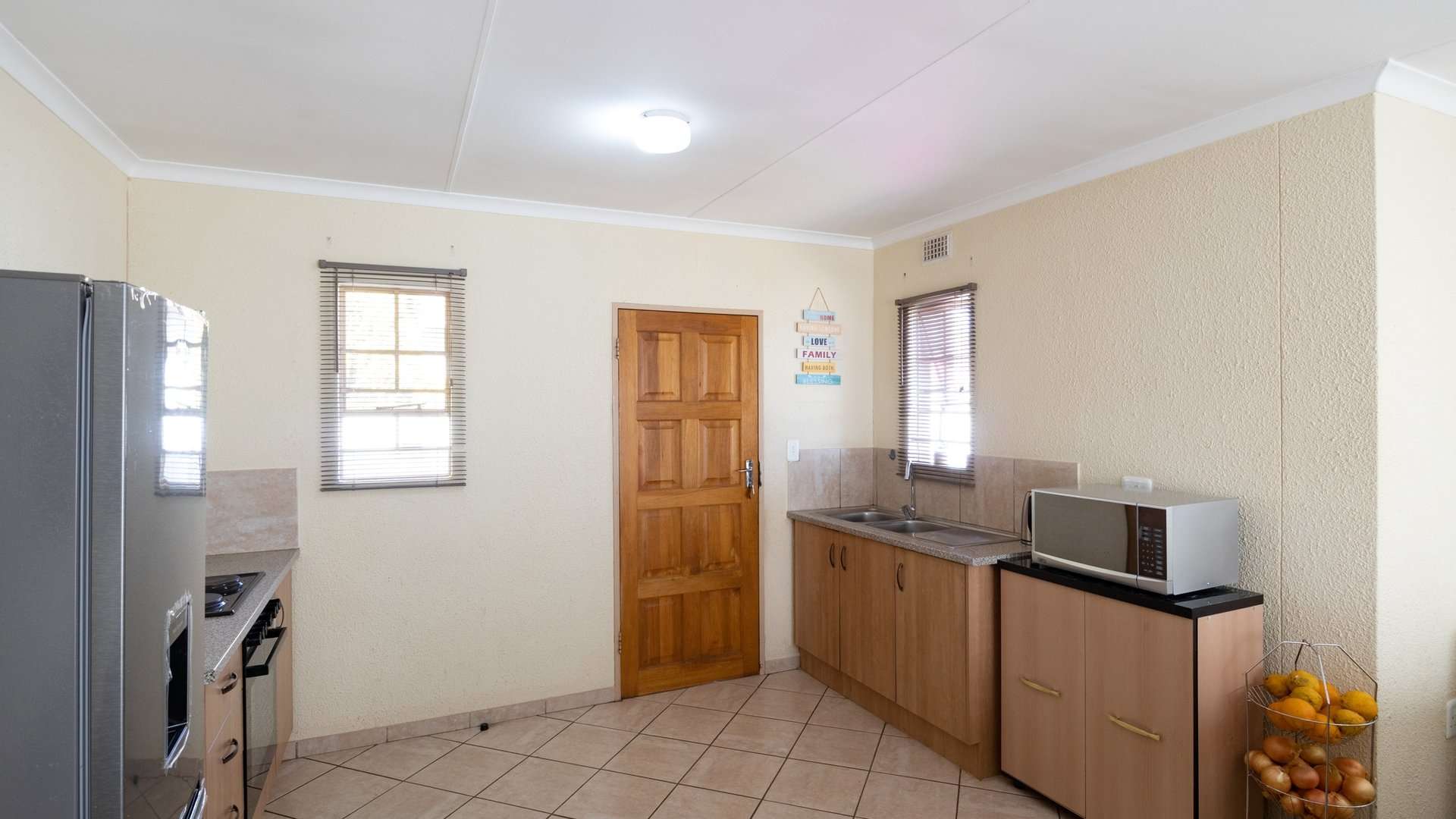 Step into a bright and spacious lounge that flows into a well-appointed kitchen, complete with built-in cupboards—perfect for daily living and easy entertaining.