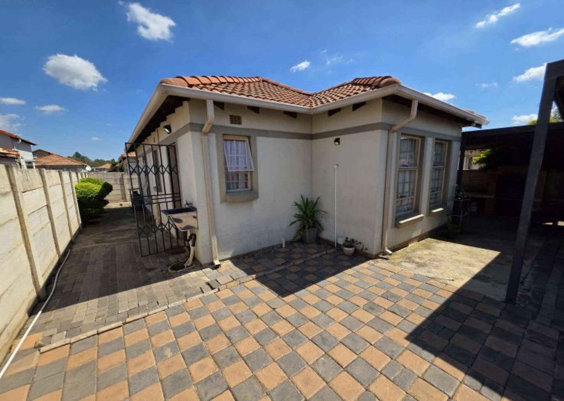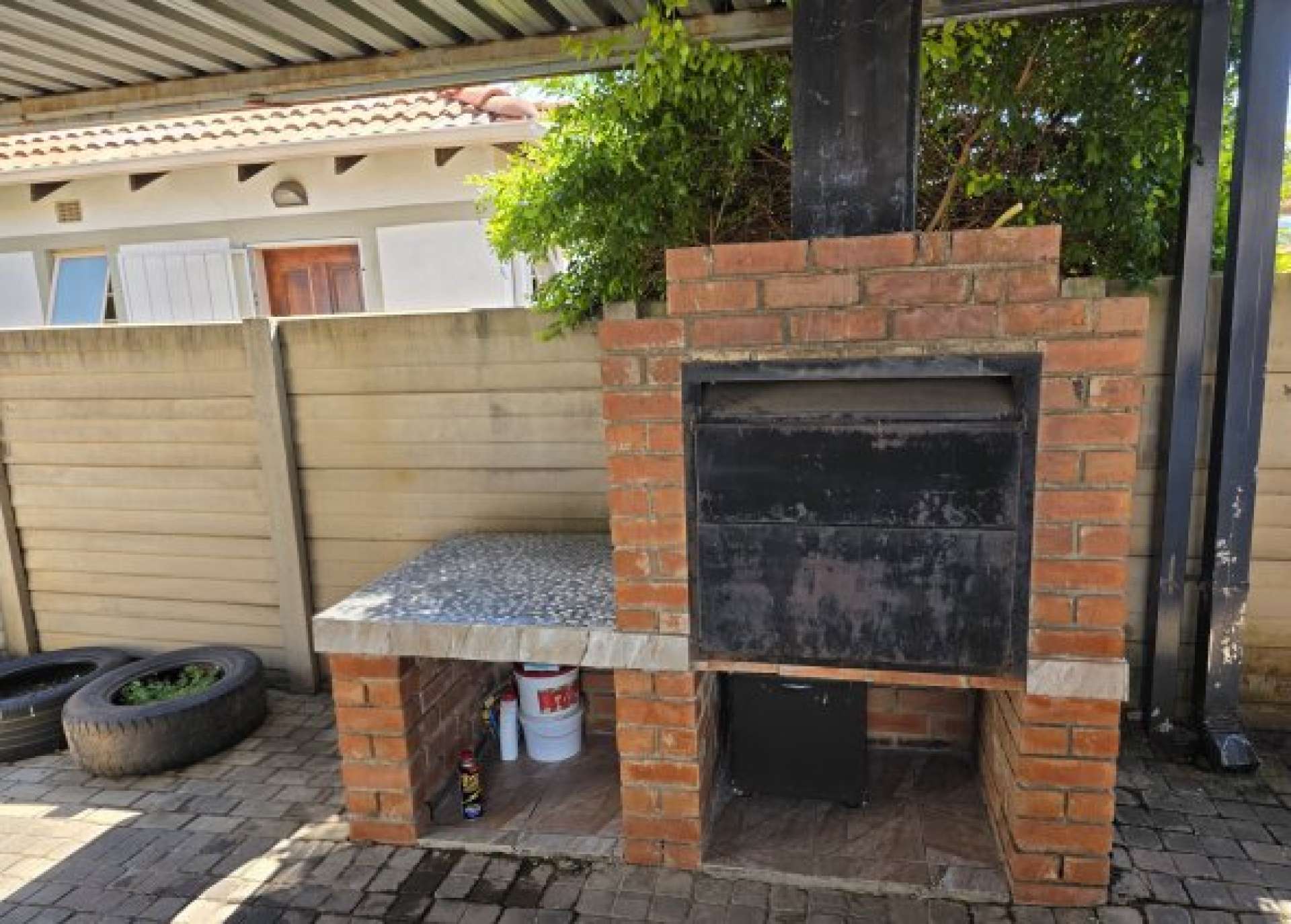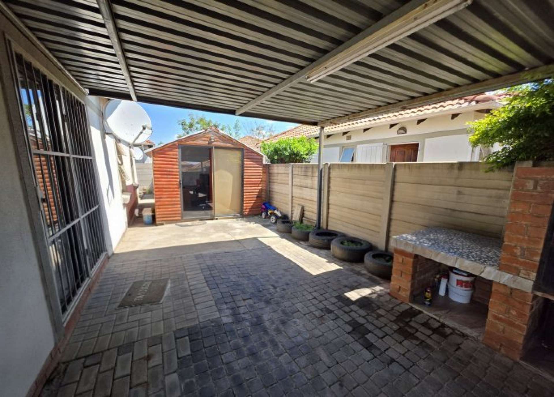 Step outside to a covered patio with a built-in braai, ideal for entertaining guests or relaxing with family.