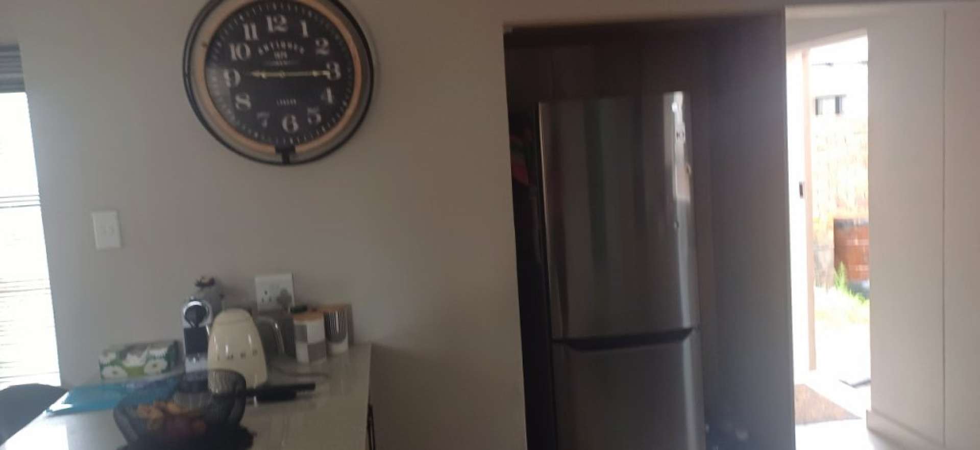 The home boasts a welcoming living area that flows seamlessly into a modern kitchen fitted with stylish units and a separate scullery, ideal for both everyday use and entertaining.