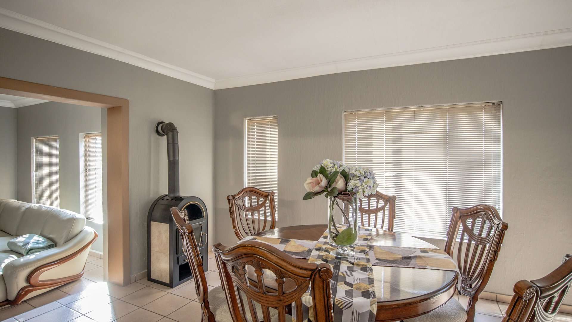 Outdoors, you'll find a large, well-kept garden, a sparkling swimming pool, and a borehole—perfect for enjoying the tranquil surroundings year-round.