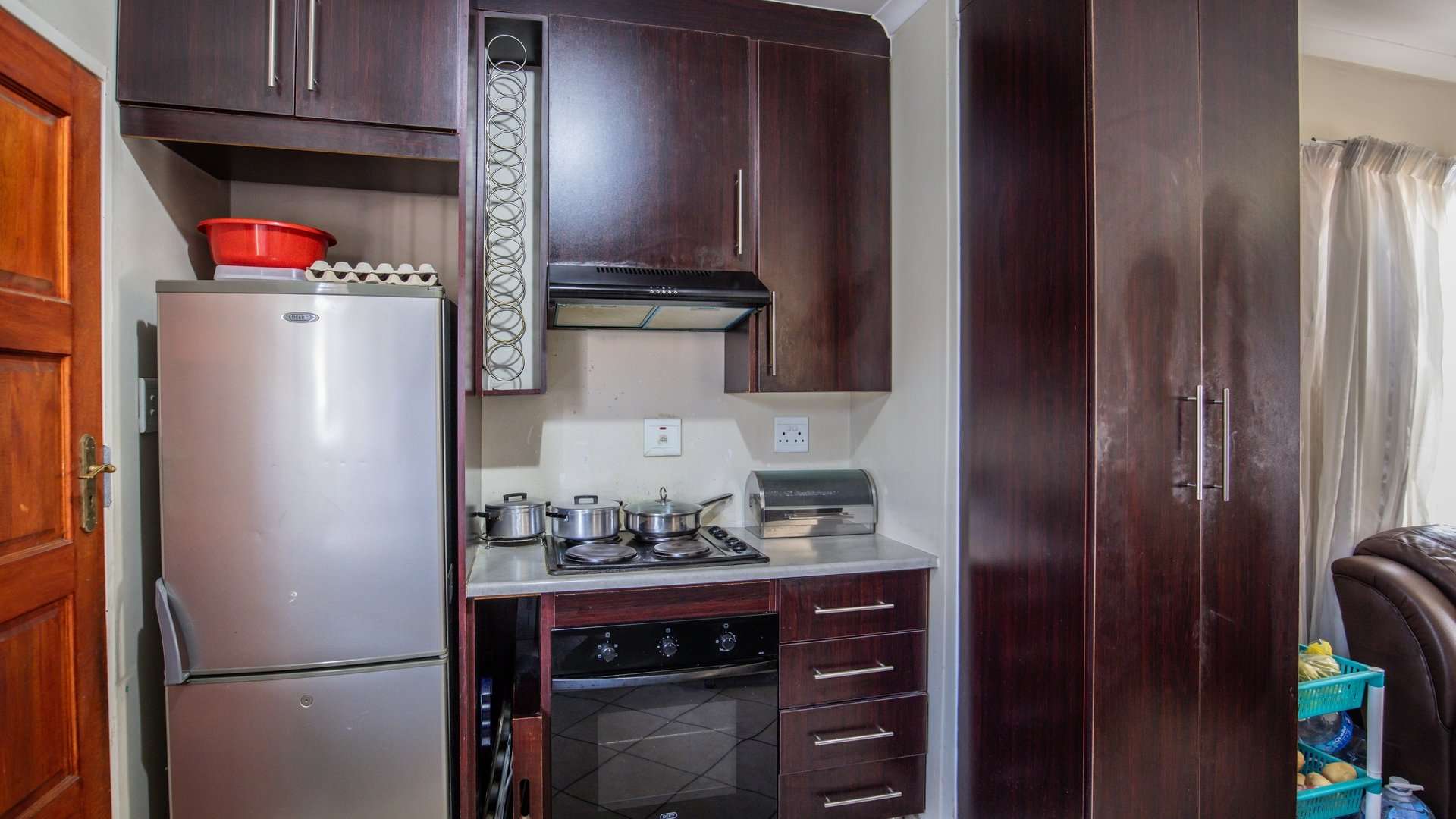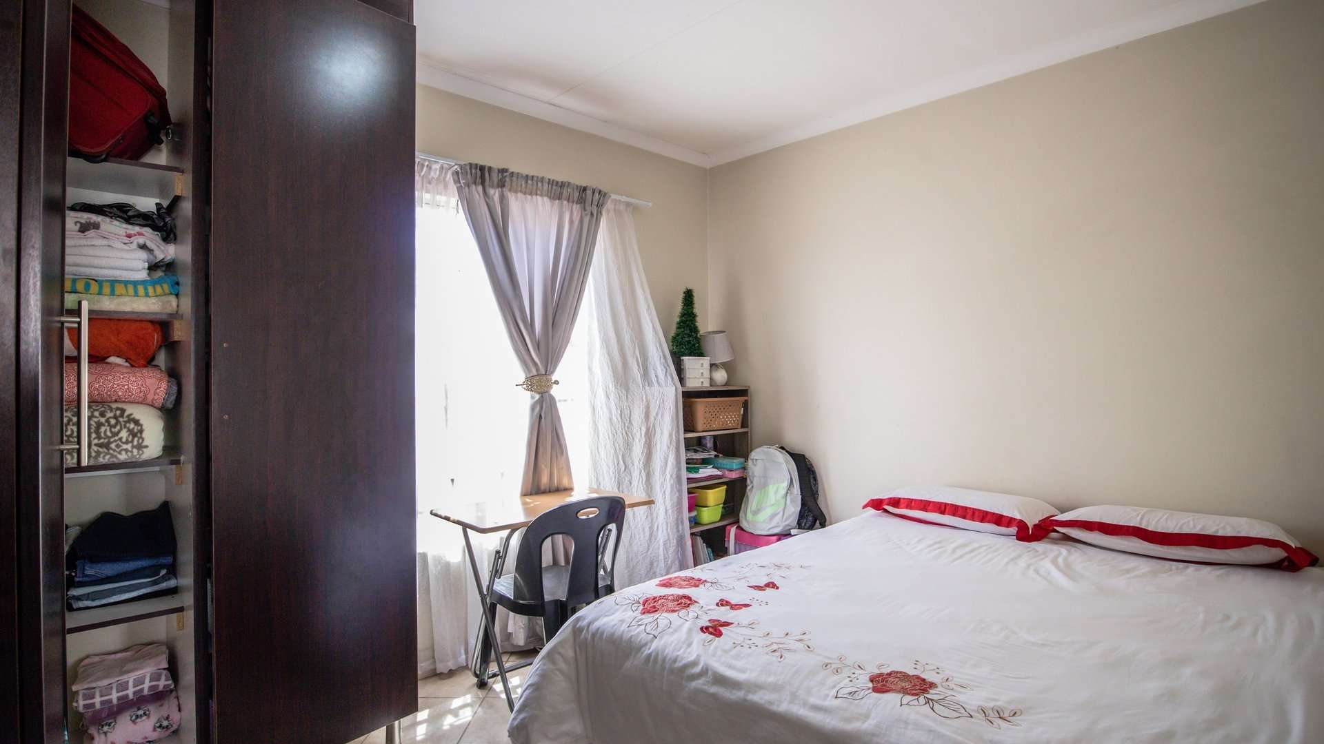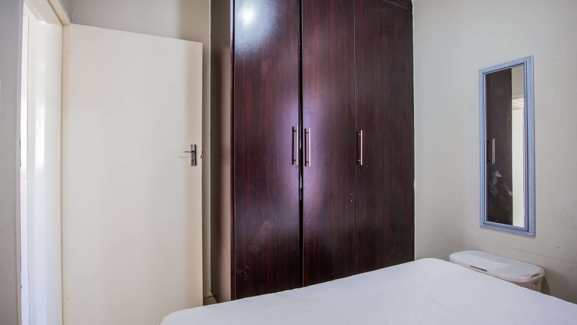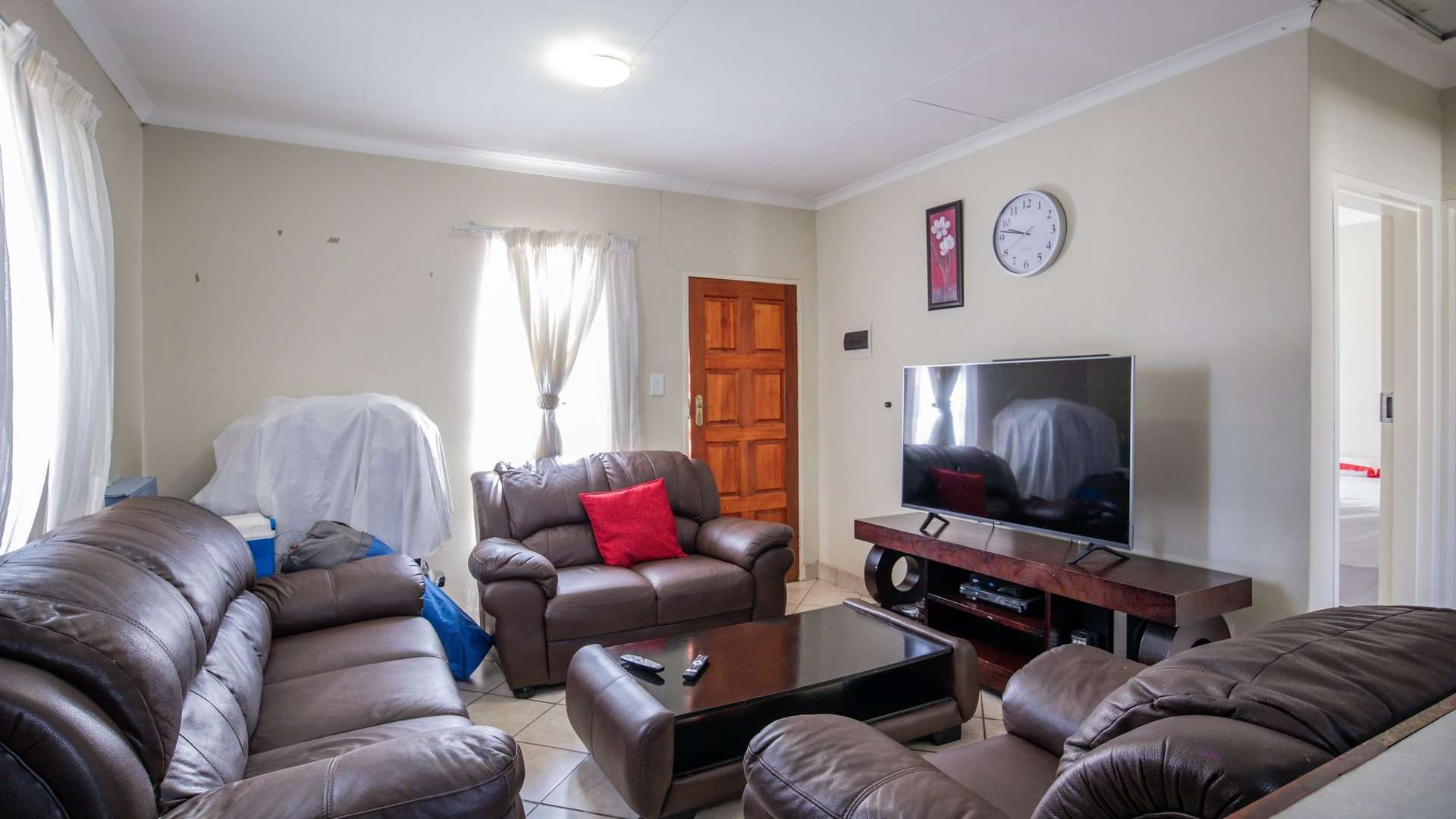 A warm and welcoming lounge creates the perfect setting to relax or entertain guests. Both bedrooms are fitted with built-in cupboards, offering ample space and convenience.