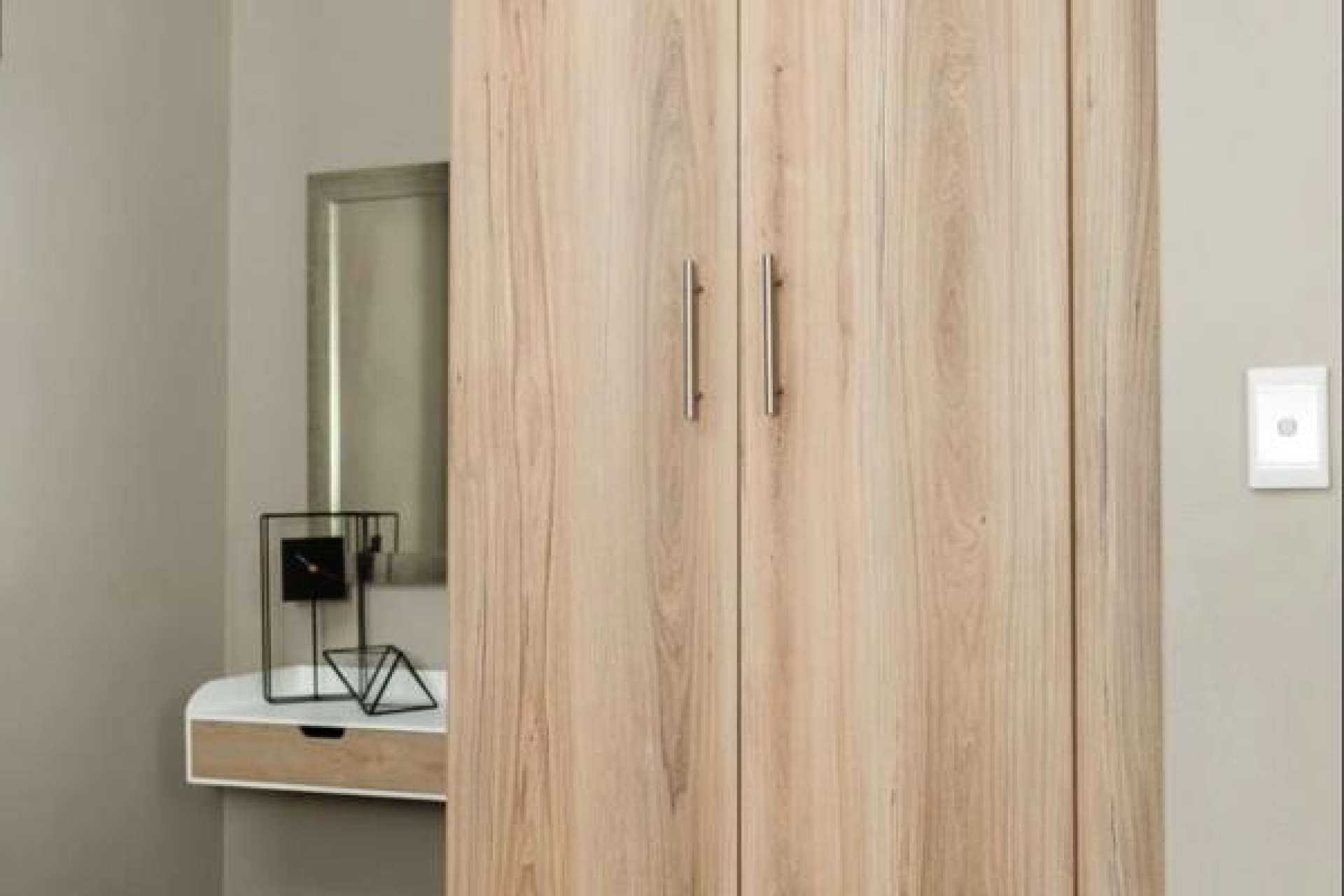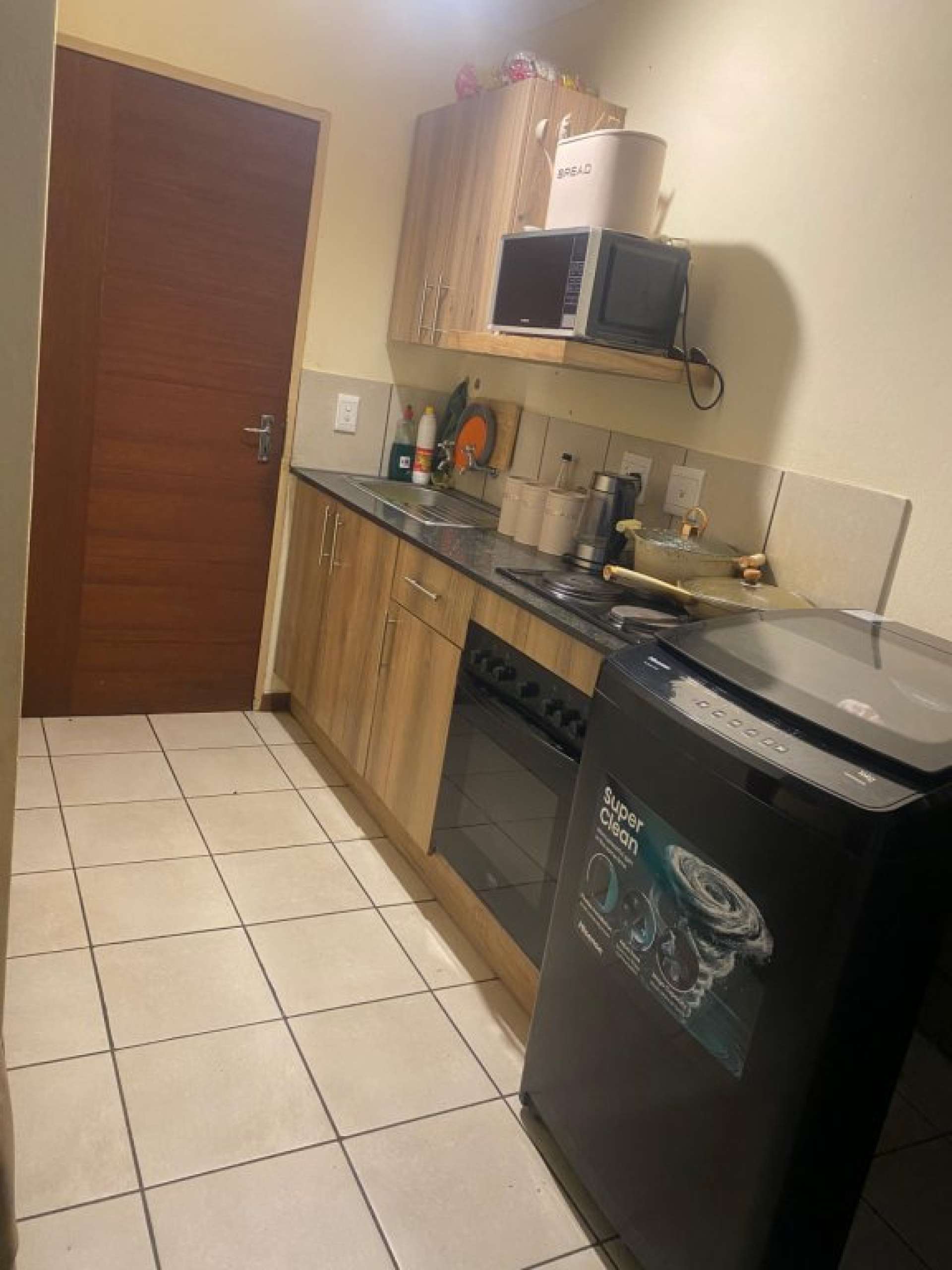 This apartment offers 2 bedrooms, 1 bathroom, a living area and stylish kitchen with built in cupboards and a stove.