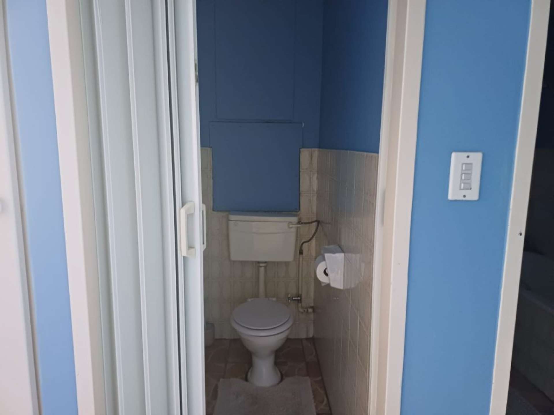 The apartment features a modern kitchen, two well-sized bedrooms, one bathroom with a bath and toilet, as well as a separate guest toilet for added convenience.