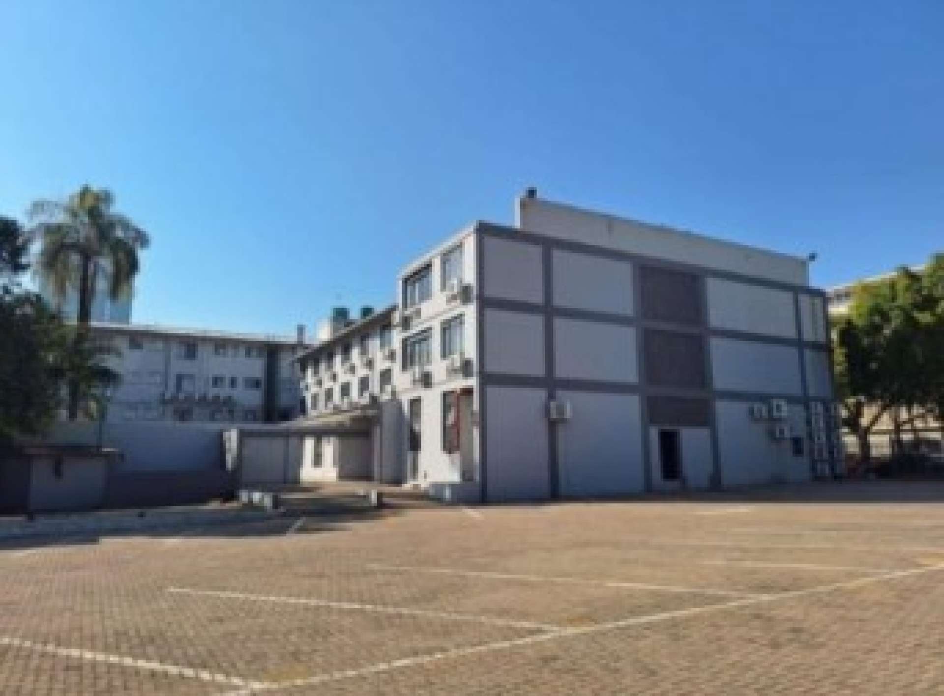 Additional amenities include 18 carport spaces, 50 parking spots, an assembly point, a swimming pool area, a security gate, a boiler tank/hot water pump that supplies the entire building, water storage tanks, an electric fence/wall, and an air conditioner in each room.