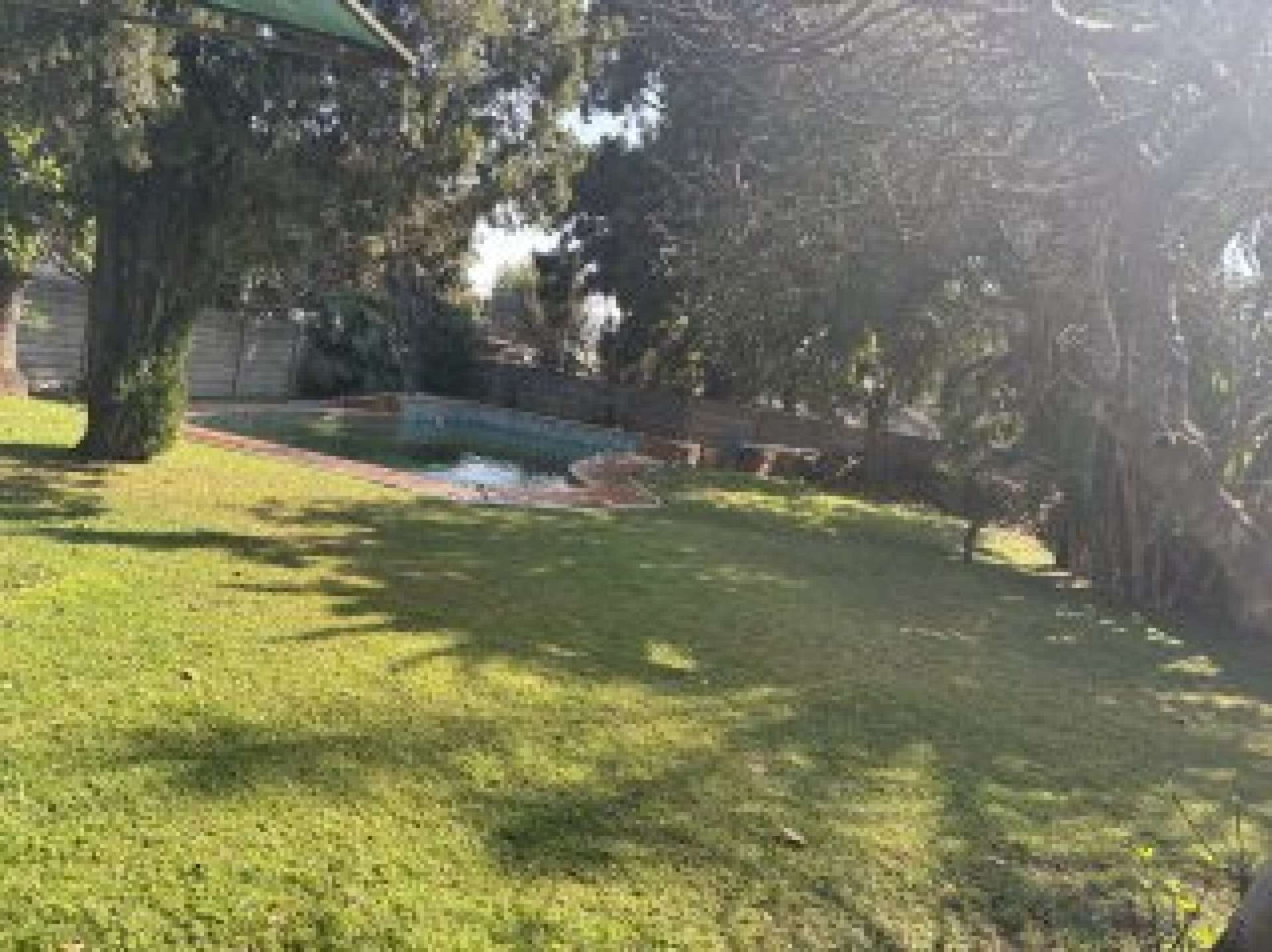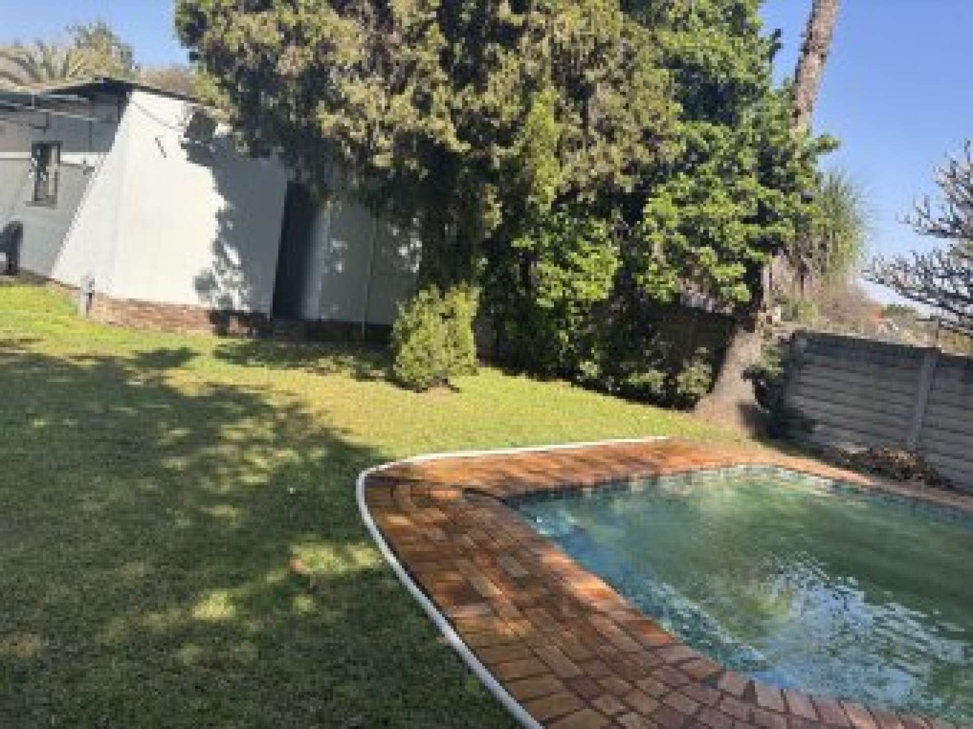 Large garden with a sparkling pool, perfect for summer days