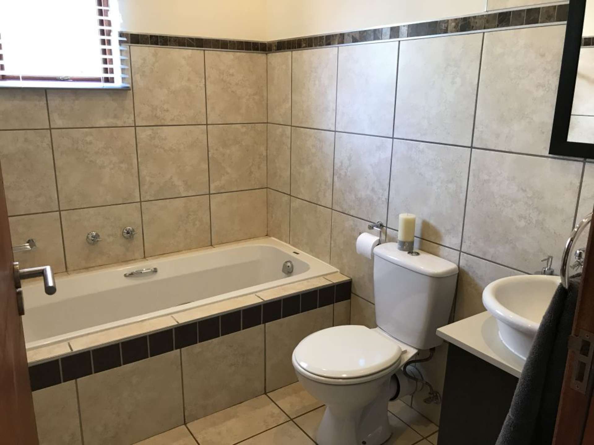 There is also a communal swimming pool and a braai area, ideal for those private functions and birthday parties. There is also a small lake with lots of fish, ducks and rabbits roaming around and a large garden area for those who like to take strolls or jog without having to go outside the complex.